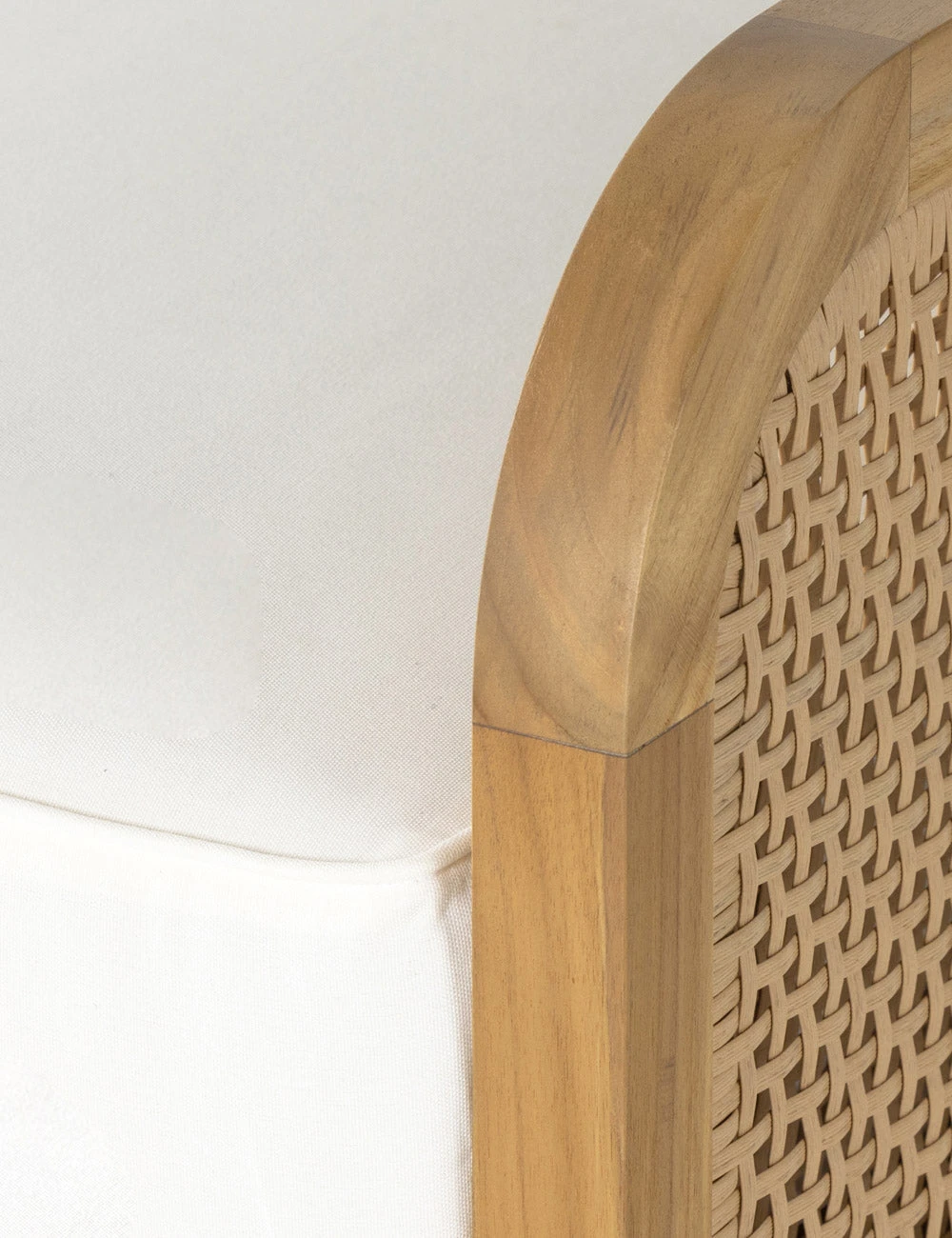 Inspire a space that feels elevated yet timelessly casual with this versatile indoor/outdoor collection. A rounded teak frame with all-weather wicker paneling and performance upholstered cushions offers the Anson sofa a breezy charm. Bring couch seating to your patio or pool house with this laid-back design.