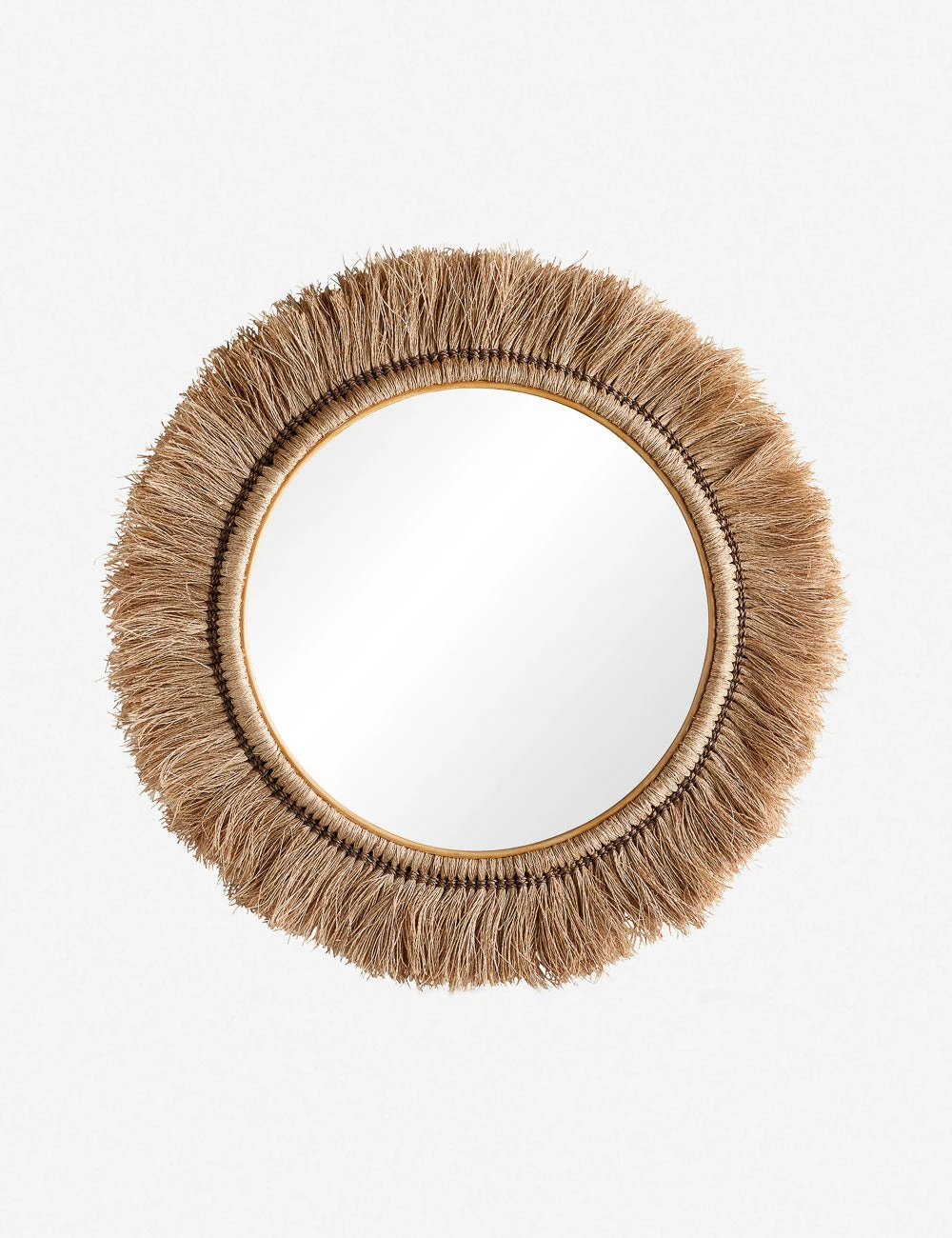 A brush-style frame made from natural abacá fibers brings abundant organic texture to this round wall mirror. We love this decorative mirror’s artisanal character, whether your look is laid-back and coastal or moody and eclectic.