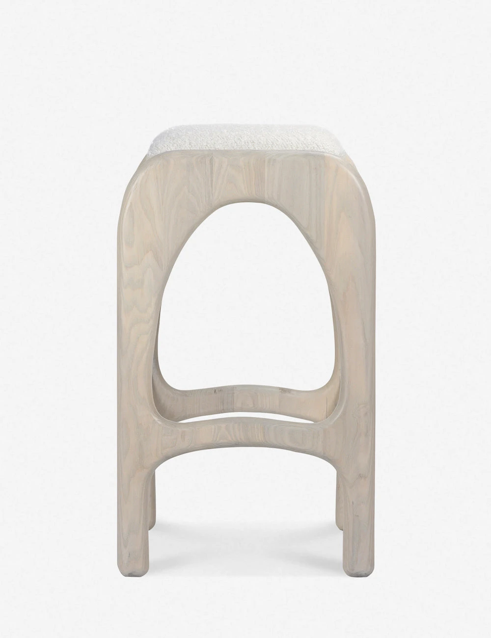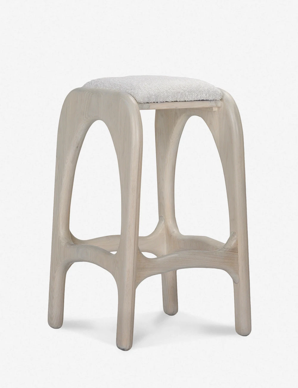 Architectural lines and rounded edges offer this ash stool a soft, rustic appeal. Textural upholstery offers an inviting touch to this versatile seat, whether styled as a bar stool or floated in a dynamic space.