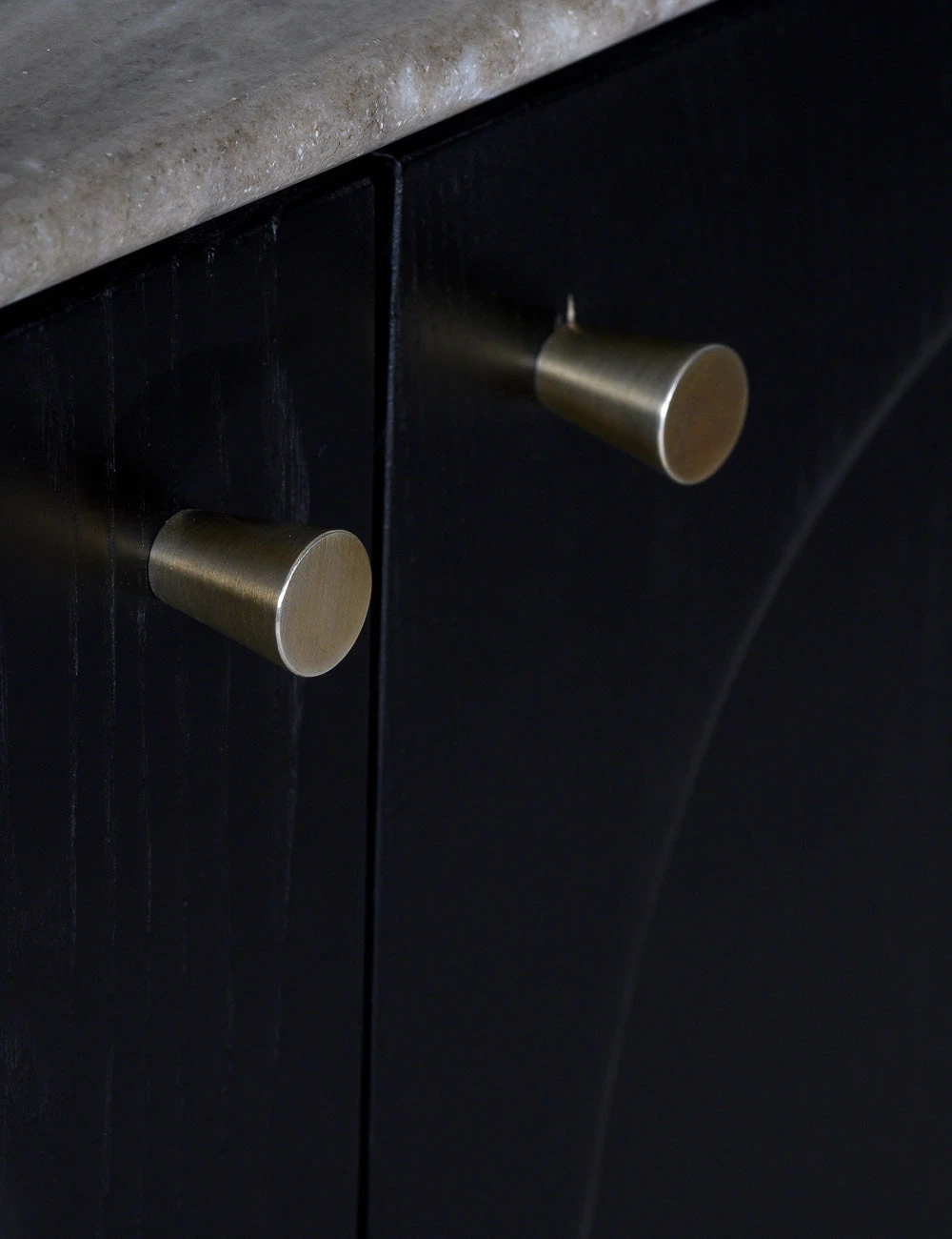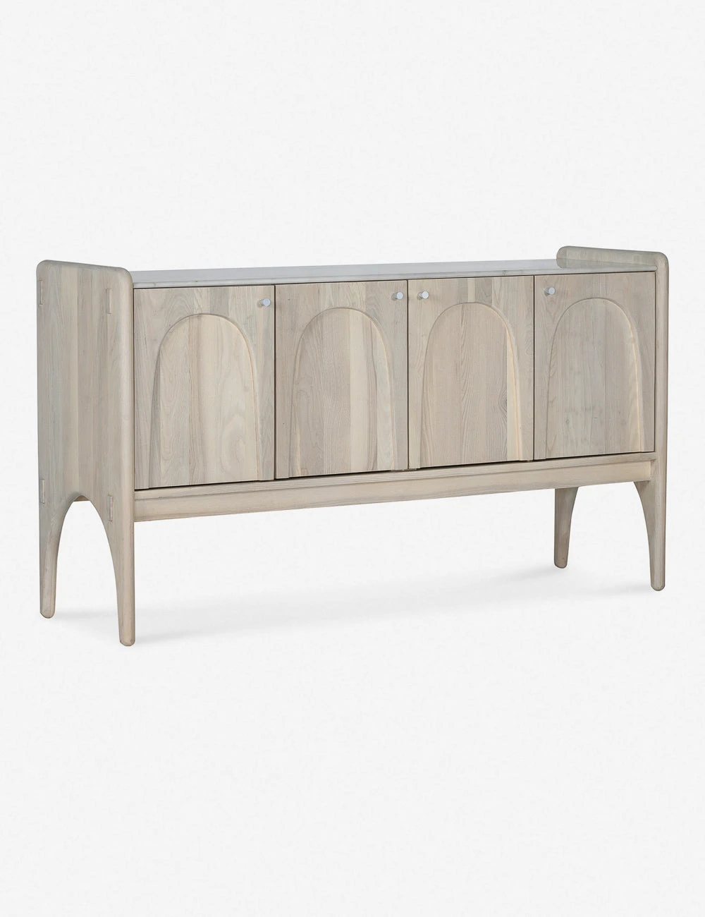 Architectural lines and rounded edges offer this ash wood sideboard a soft, rustic appeal. With its artisan-inspired joinery and polished top, this cabinet sideboard provides mixed-material appeal and spacious storage for a well-balanced transitional look, whether styled in your dining room or living space.