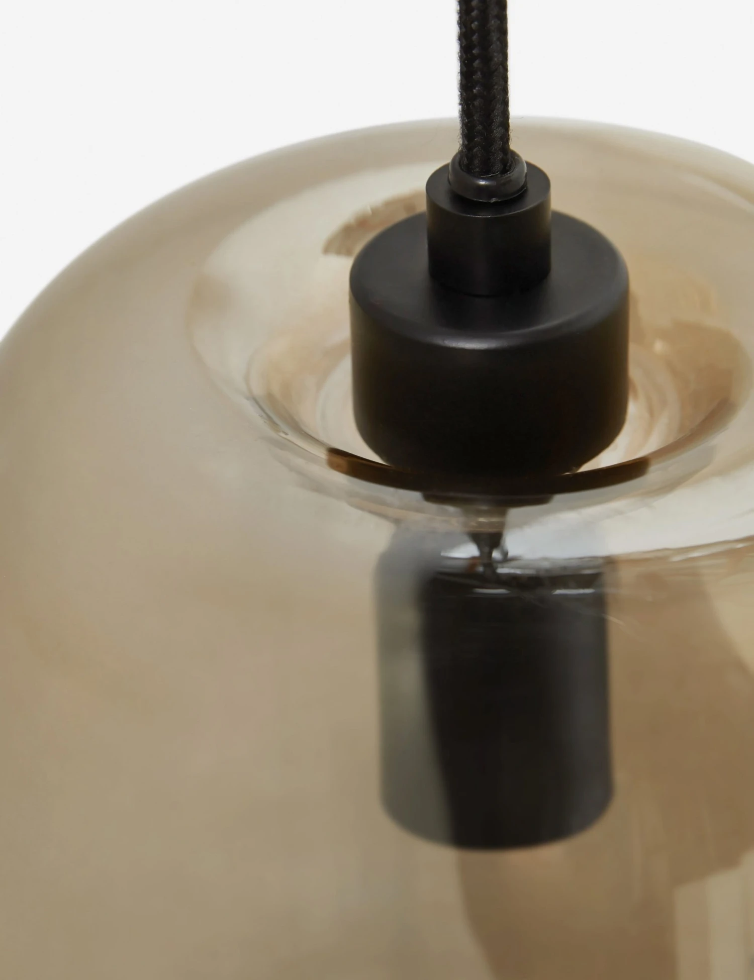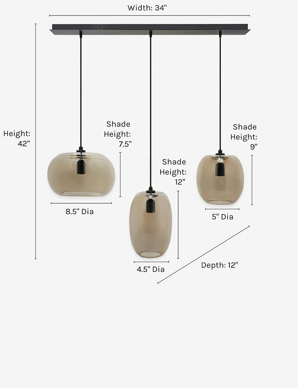Our Astor Chandelier is overhead lighting that helps you create the perfect ambiance for hosting a dinner party or get together. With three staggered glass pendants in a smoked, gold finish and matte black metal accents, this polished ceiling light fixture produces a warm, ambient glow in your dining room or living room.