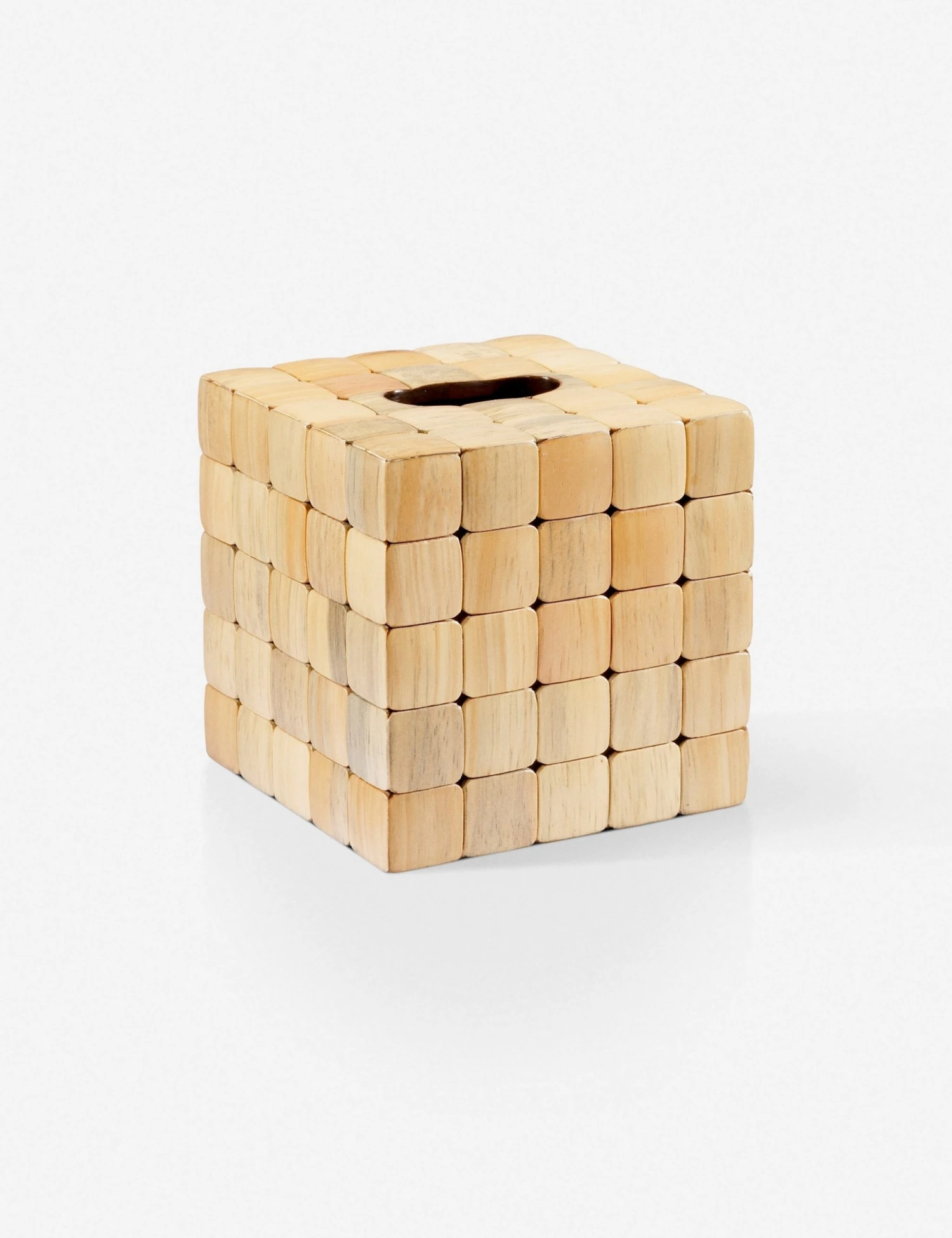 A modern take on organic style, this pine wood tissue box cover keeps your bathroom counter organized in style. Constructed with rounded square pieces, this storage piece adds a touch of texture to your space.
