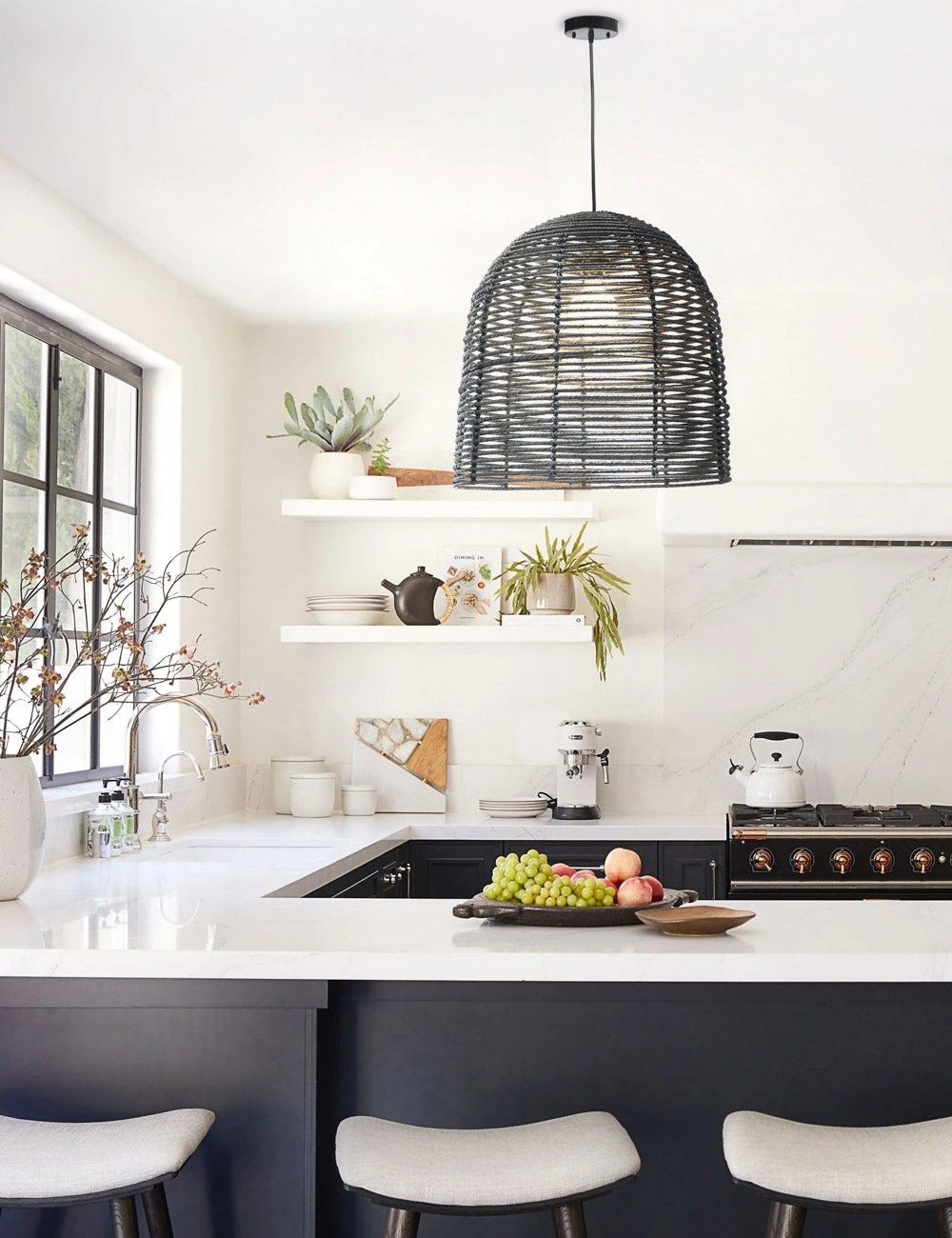 Featuring an airy, open-weave design and textural jute detailing, this Beehive pendant light is a fresh and laid-back piece for your living room or above a kitchen island. Make sure to style this basket pendant overhead ceiling lighting in a tonal, minimalist space or with a layered mix of textural accents.