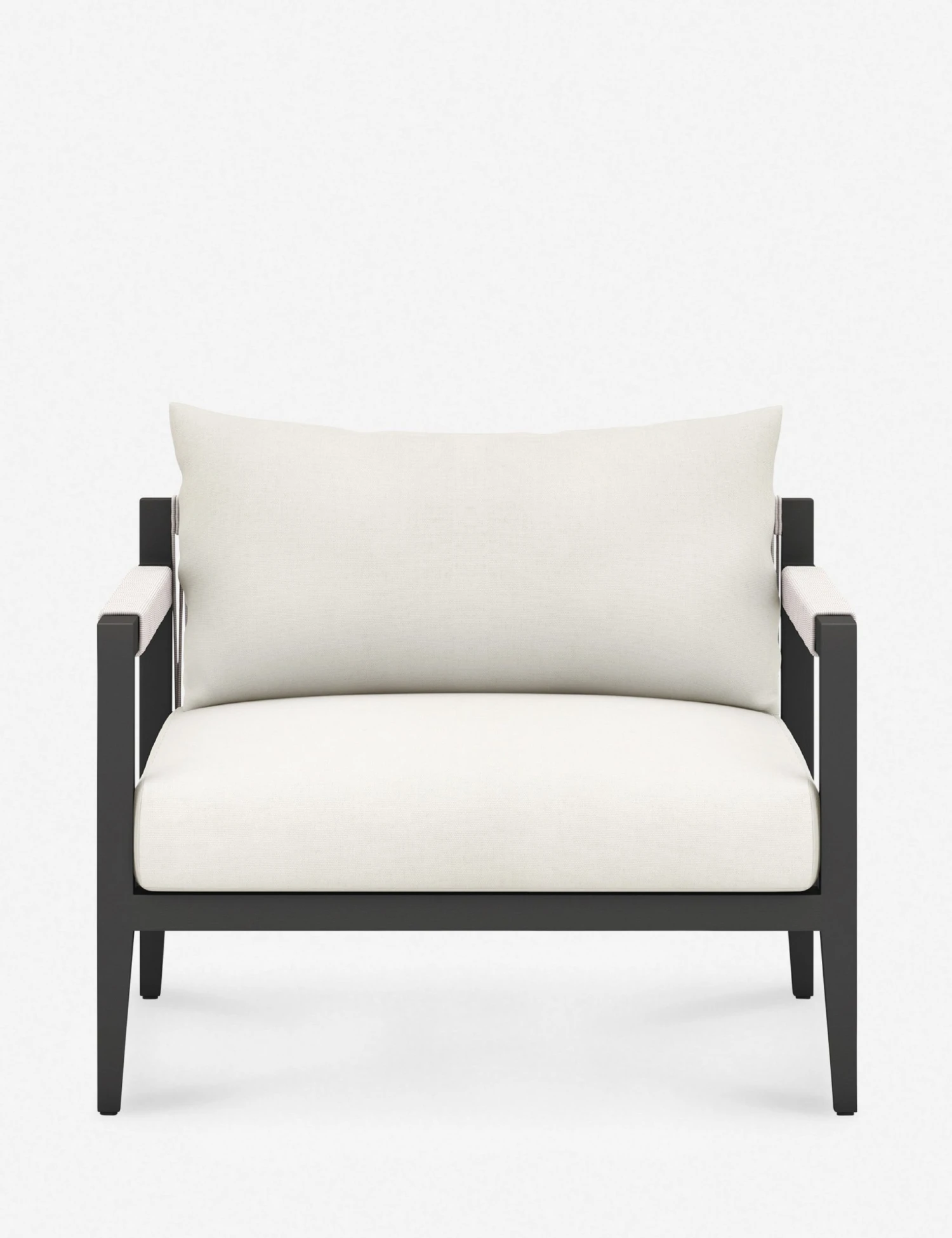 A slim, linear frame is complemented by plush cushions and woven detailing in this accent chair. The performance fabric upholstery is durable, fade-resistant, and easy to clean. We love the idea of using this occasional chair to relax poolside, on your terrace, or even in your sunroom.