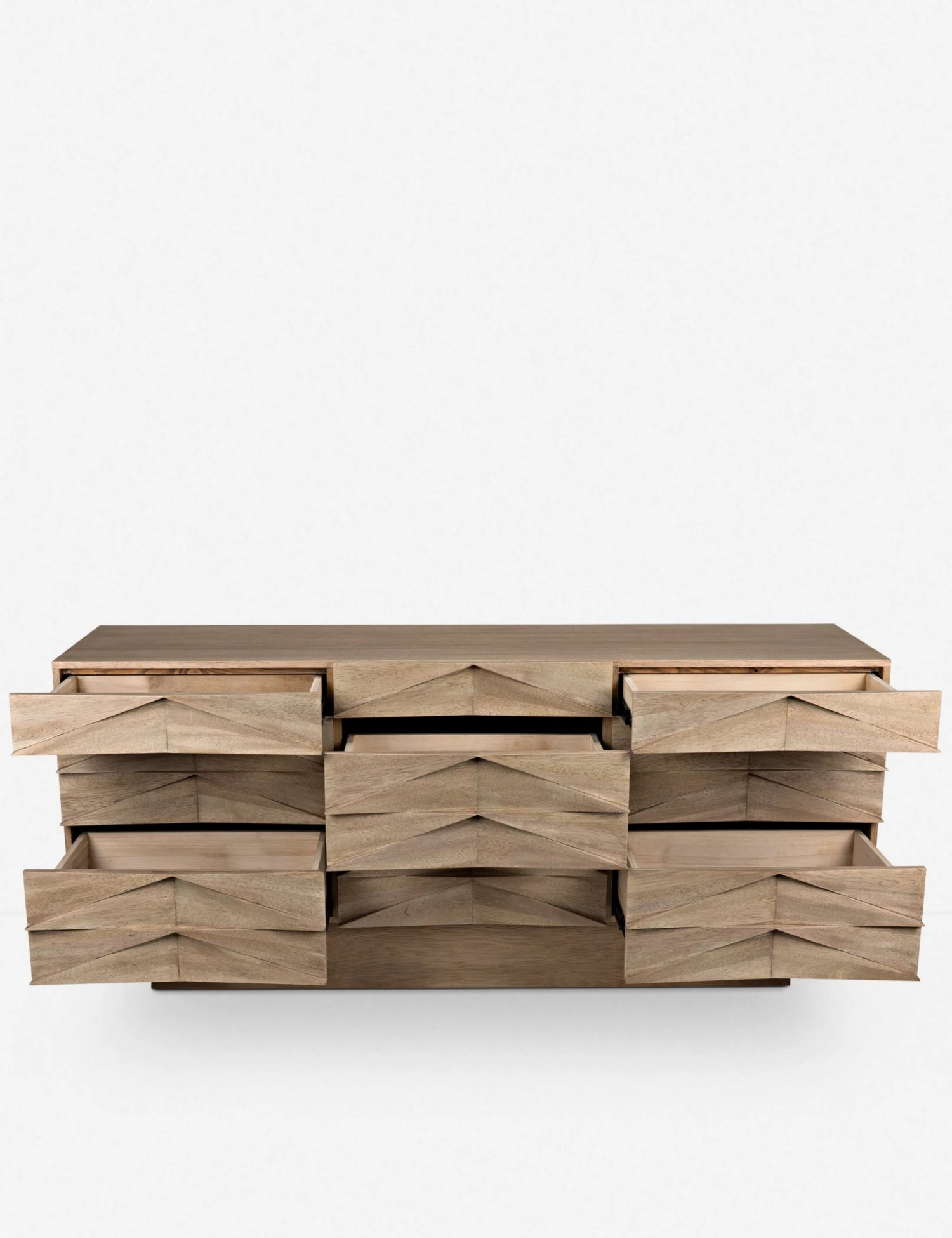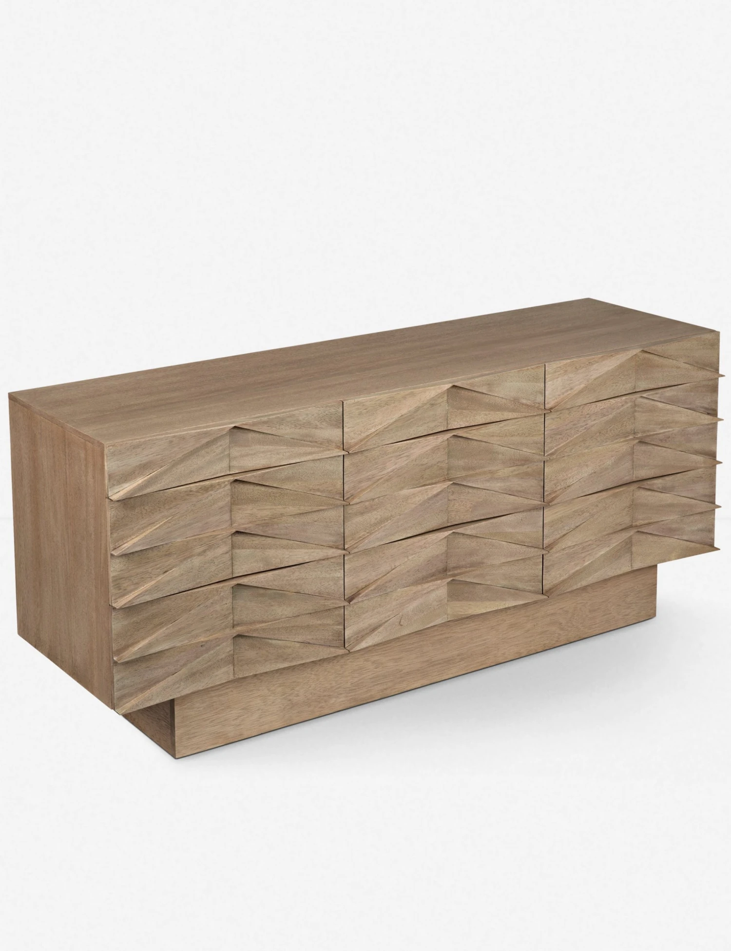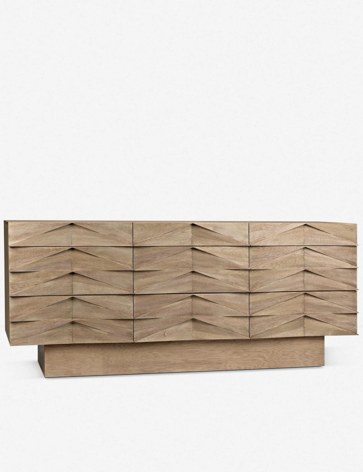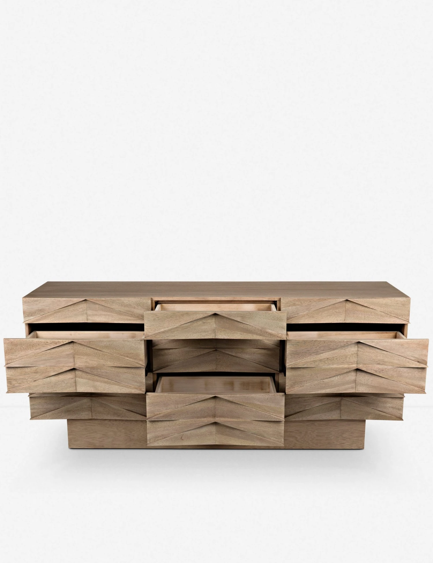 Give your contemporary space a little more dimension with this wooden dresser. Clever beveling results in an abstract chevron pattern on the front, while plenty of drawer space makes for a stylish storage solution for your bedroom.