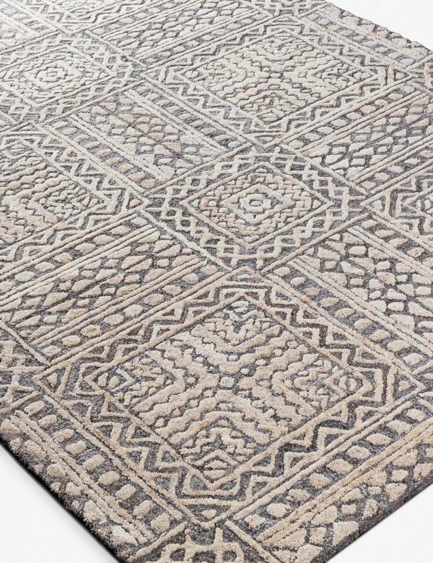 Woven with global-inspired patterns throughout, this living room rug adds dimension to your space with a high-low pile. Boasting a cozy texture and neutral tones, this area rug is an instant favorite for its versatility and timeless style.