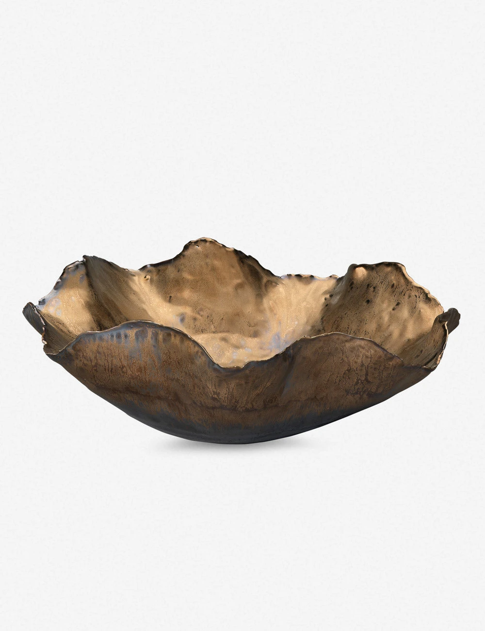 The raw edges of this delicately shaped bowl offer organic appeal with a touch of drama. This small decorative bowl can style as a catchall on your vanity or entryway table for an elevated touch.