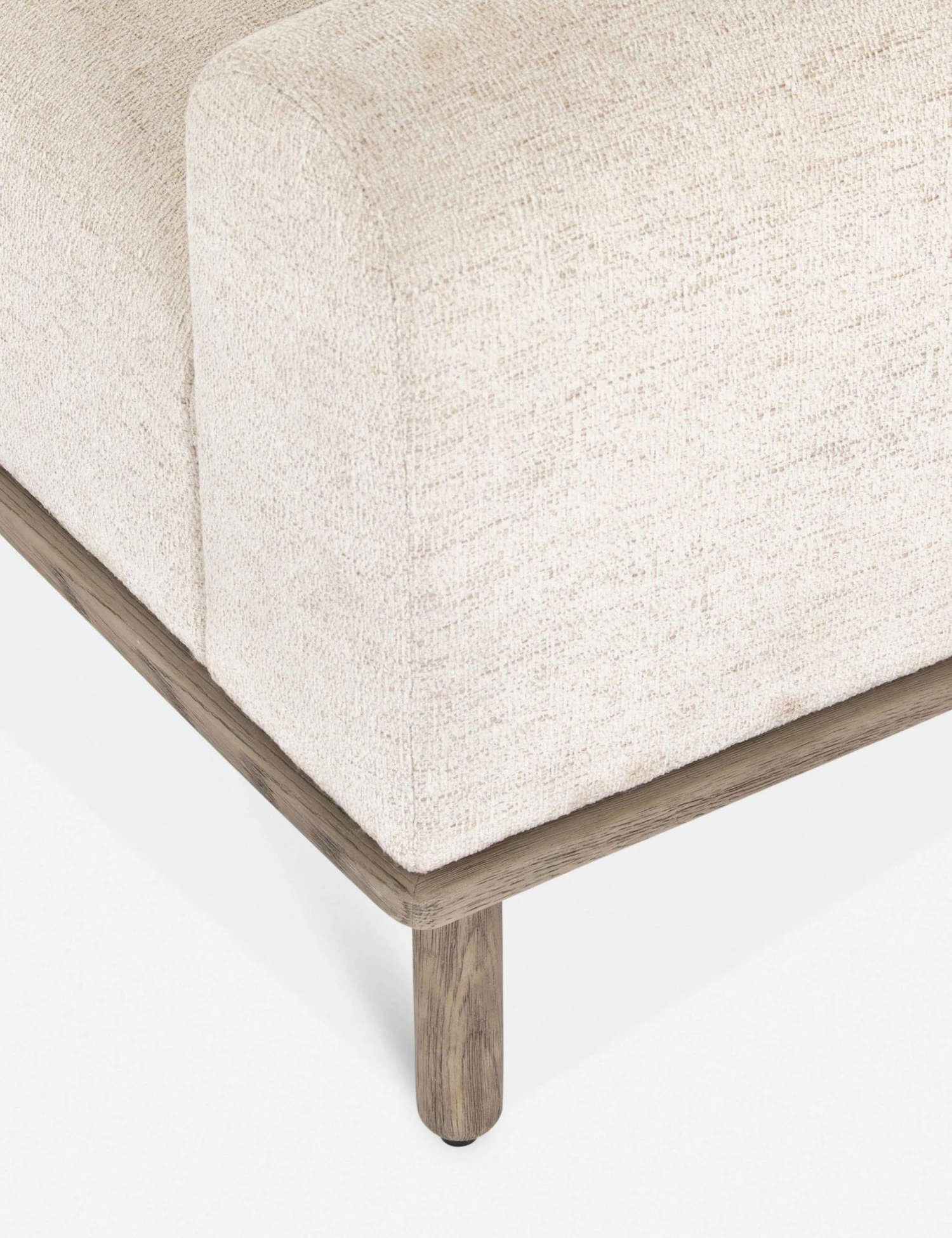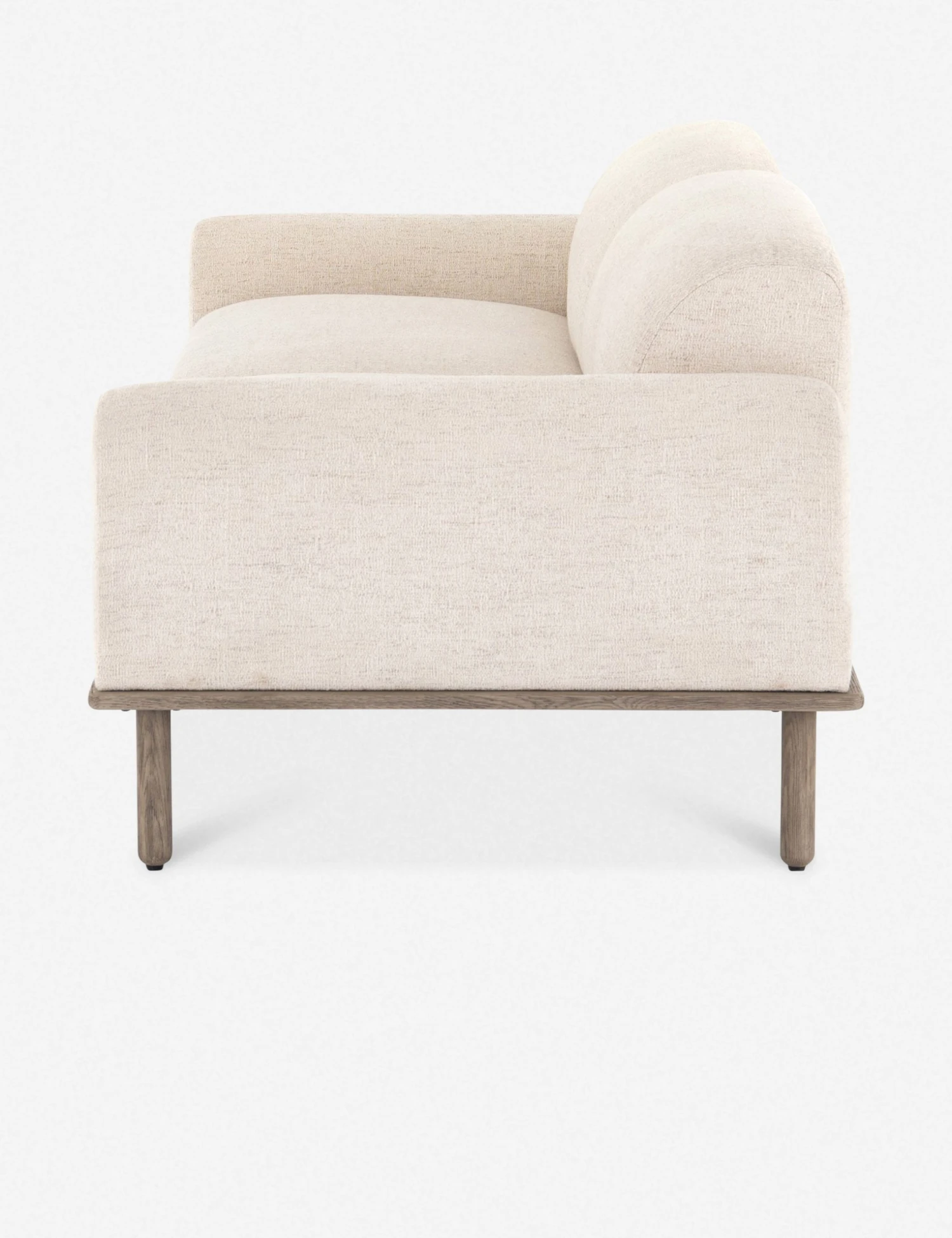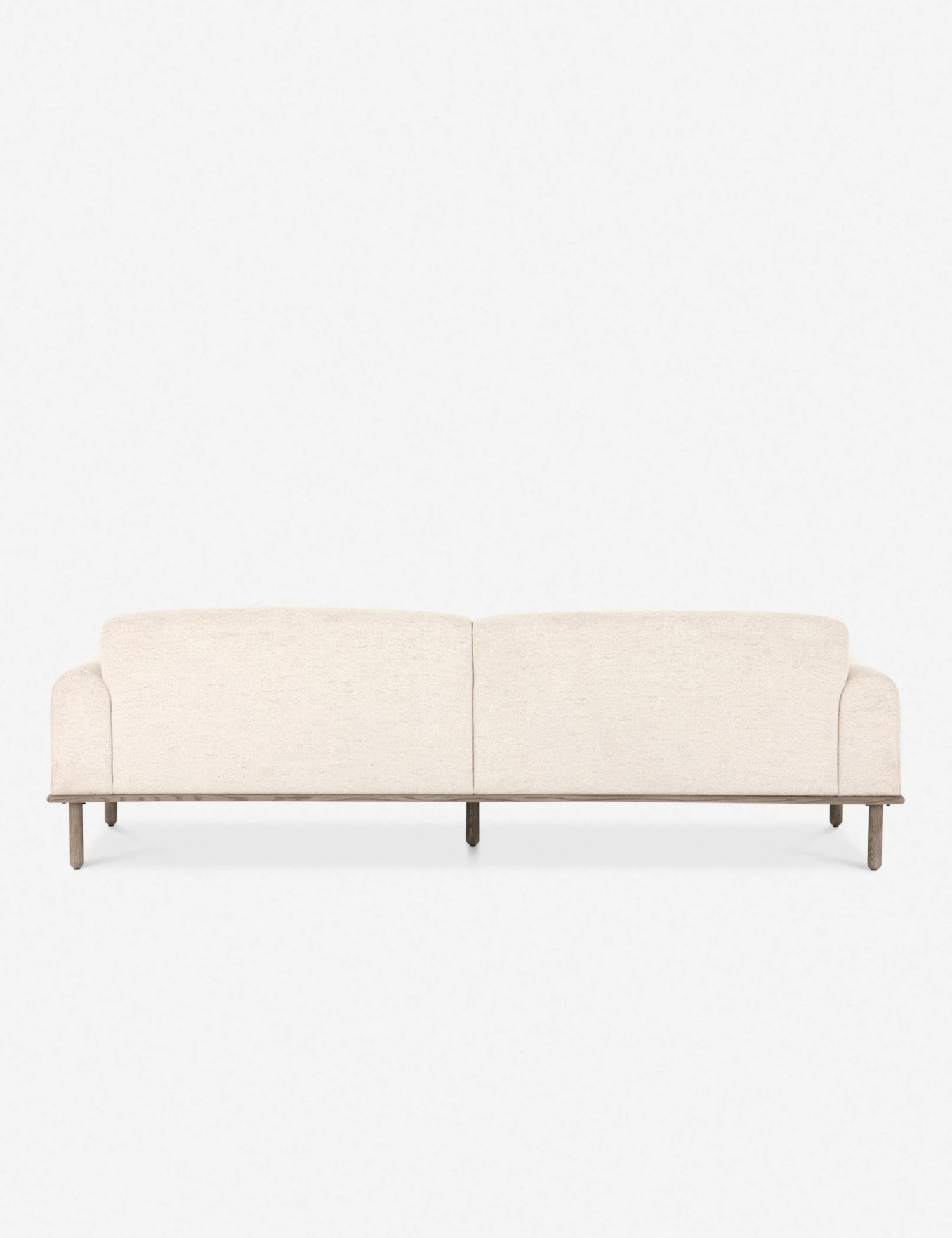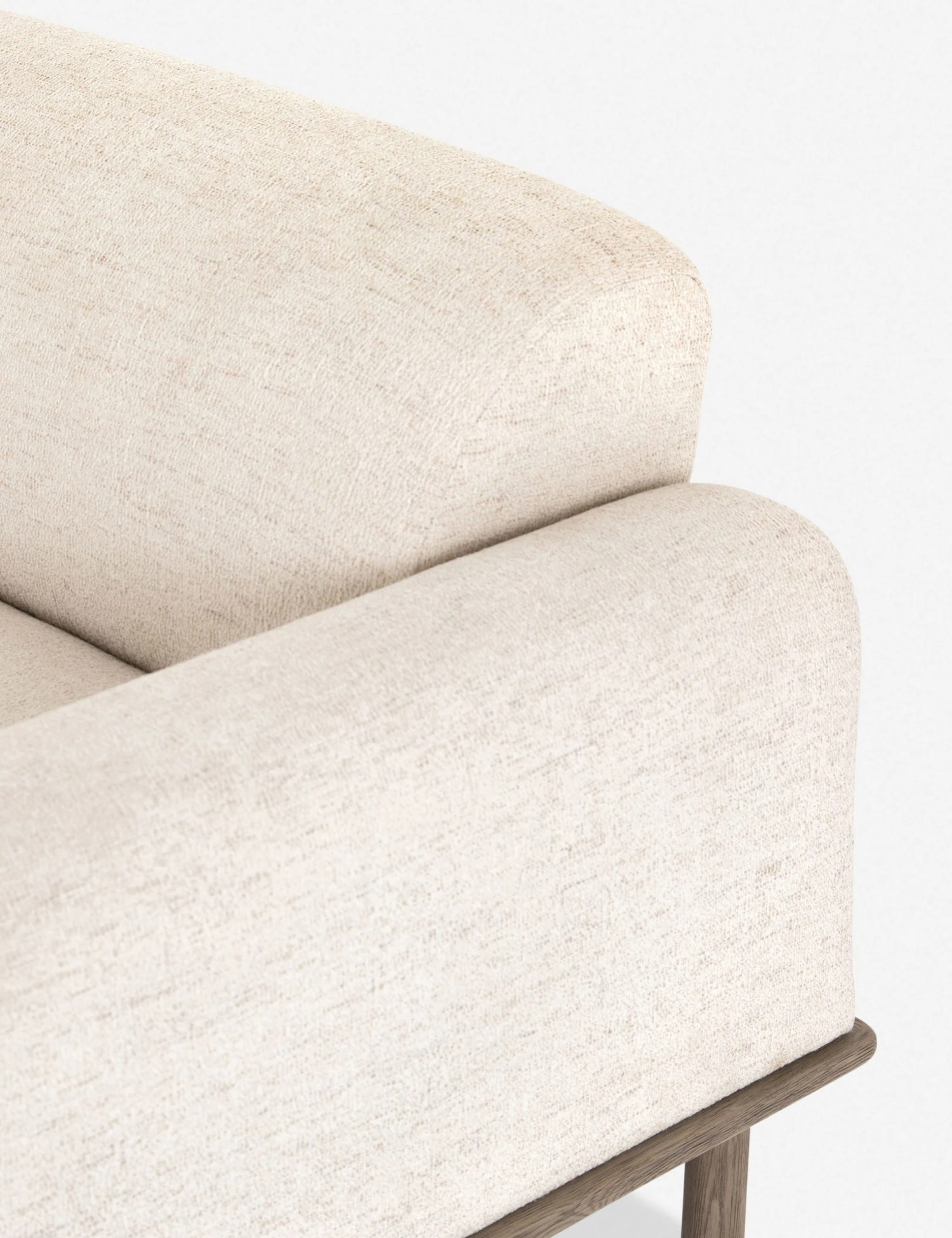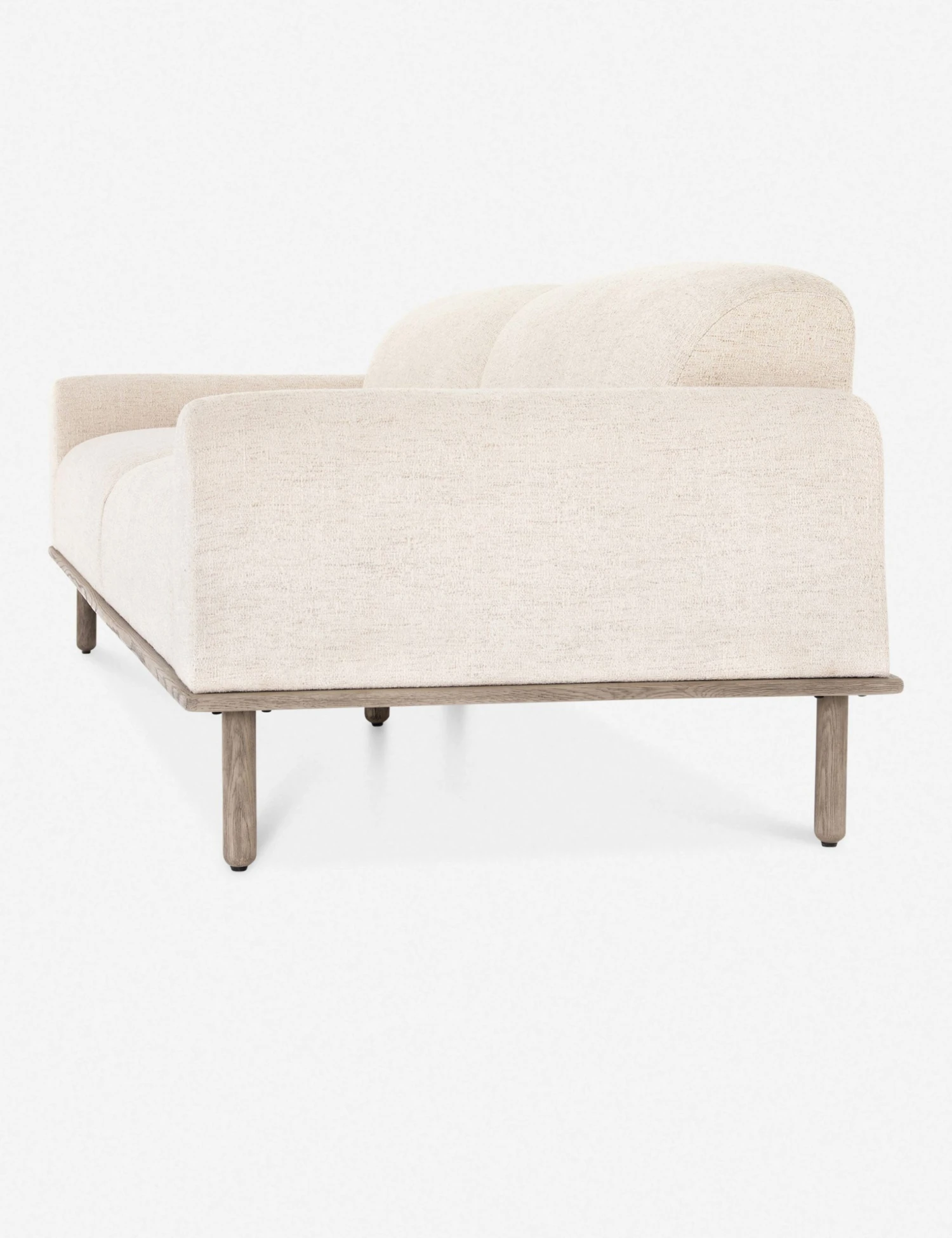 Set off by a rustic oak leg base and upholstered in a weave-like performance fabric, this sofa offers an airy profile that balances refined style with a durable design. We love this laid-back living room sofa for the delicate touch it brings to a space, whether your look is coastal and casual or Parisian chic.