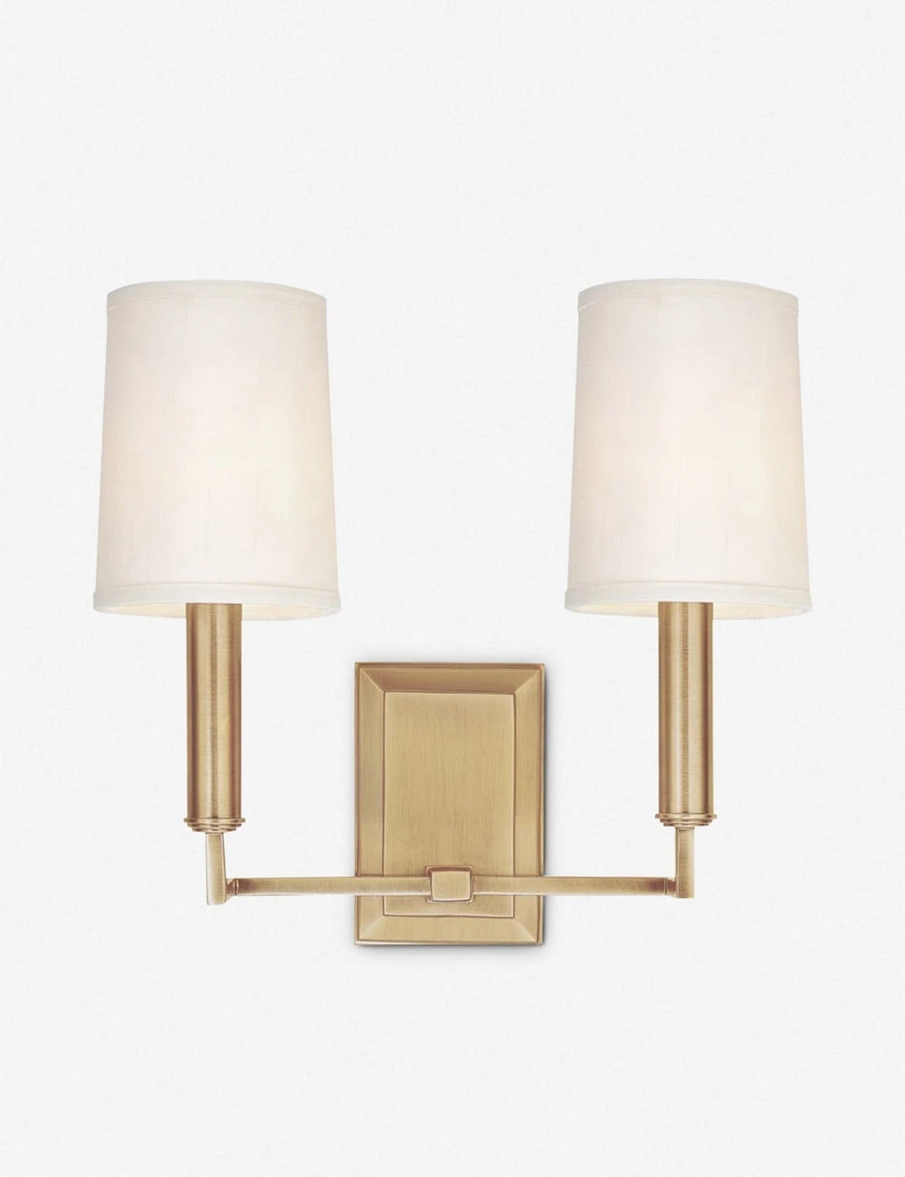 Let this traditional wall sconce be your guiding light. Two angular arms hold circular rods to meet parchment shades, offering diffused lighting.