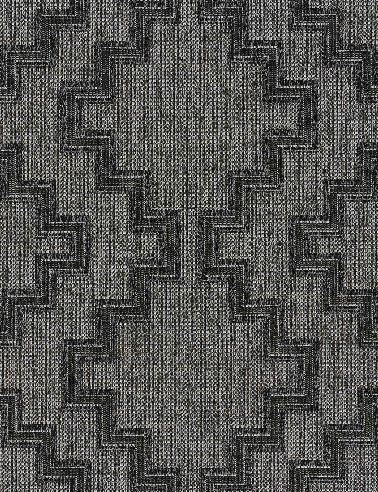 A moody black color palette is highlighted by a stepped, geometric pattern to make this flatweave area rug a refined accent for your home. Weather-resistant and durable, this floor rug is a great fit for outdoor living spaces, as well as high-traffic areas like entryways and living rooms.