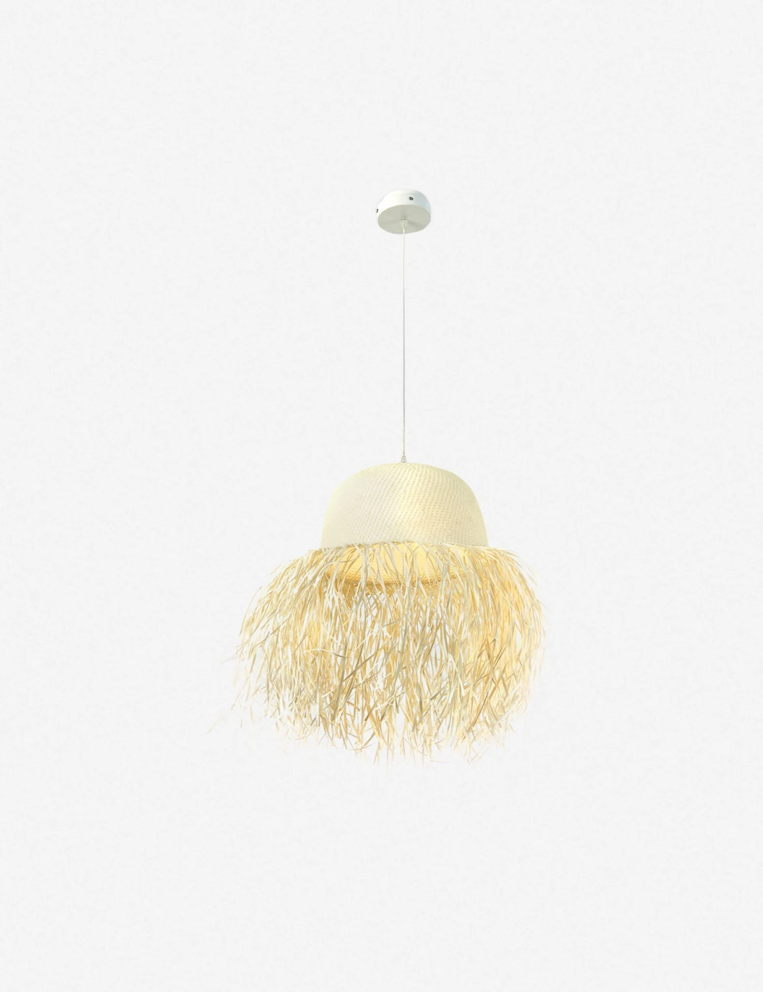 Natural palm leaves are woven around an iron dome then left to fan out in this raw pendant design. Whether accenting your look with coastal tones or elevating a collected aesthetic, this statement-making pendant light is the perfect woven touch for a casual, organic style.