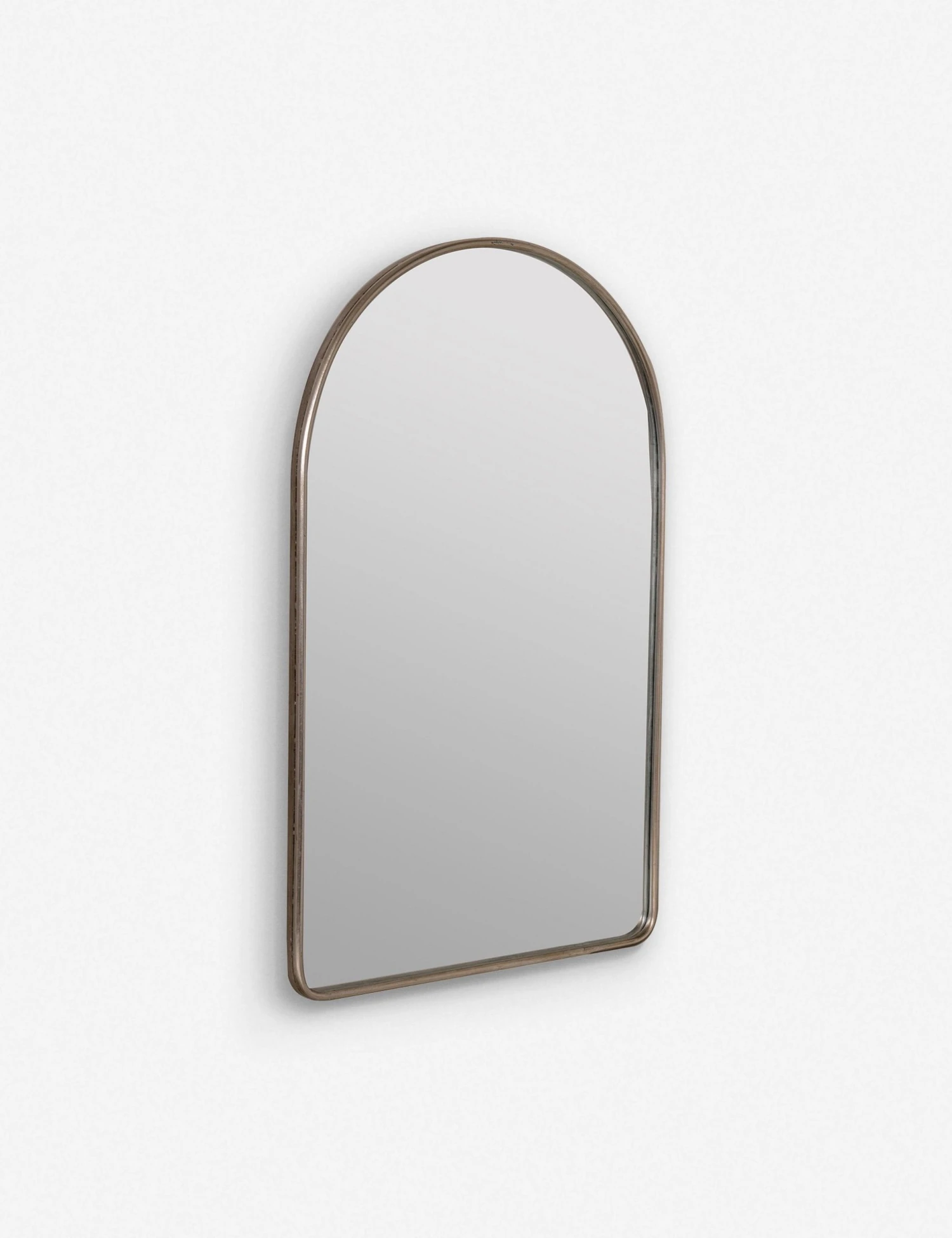 A simple, timeless wall mirror you can add to any room, featuring a metal frame with rounded corners and an arched design.
