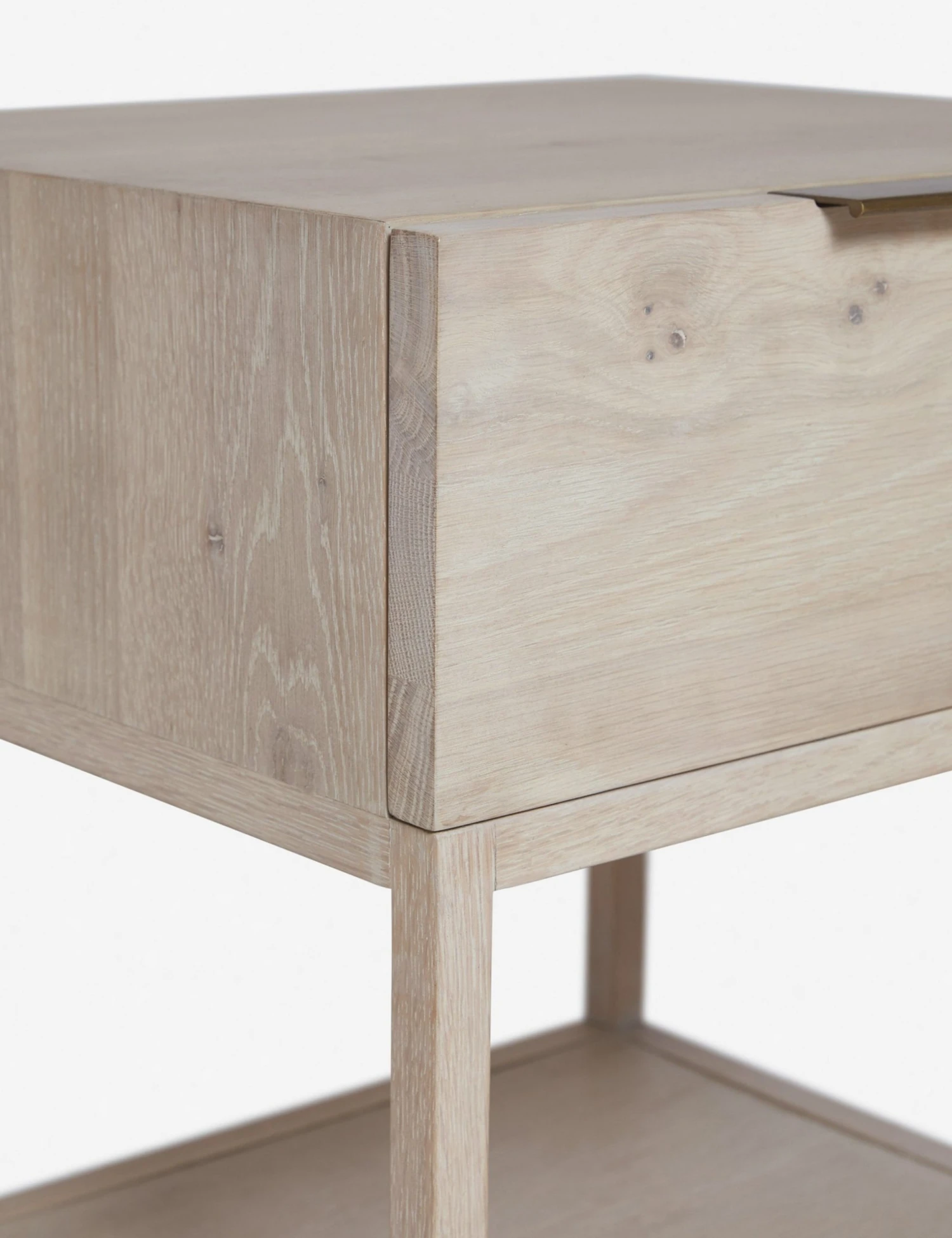 An airy, open frame supports a spacious drawer fitted with a sleek iron pull in this thoroughly refined bedside table. A solid oak grain complements its simple, clean profile with a visually appealing natural texture. Style this versatile nightstand in a pared-down aesthetic for a Scandinavian-inspired minimalism.