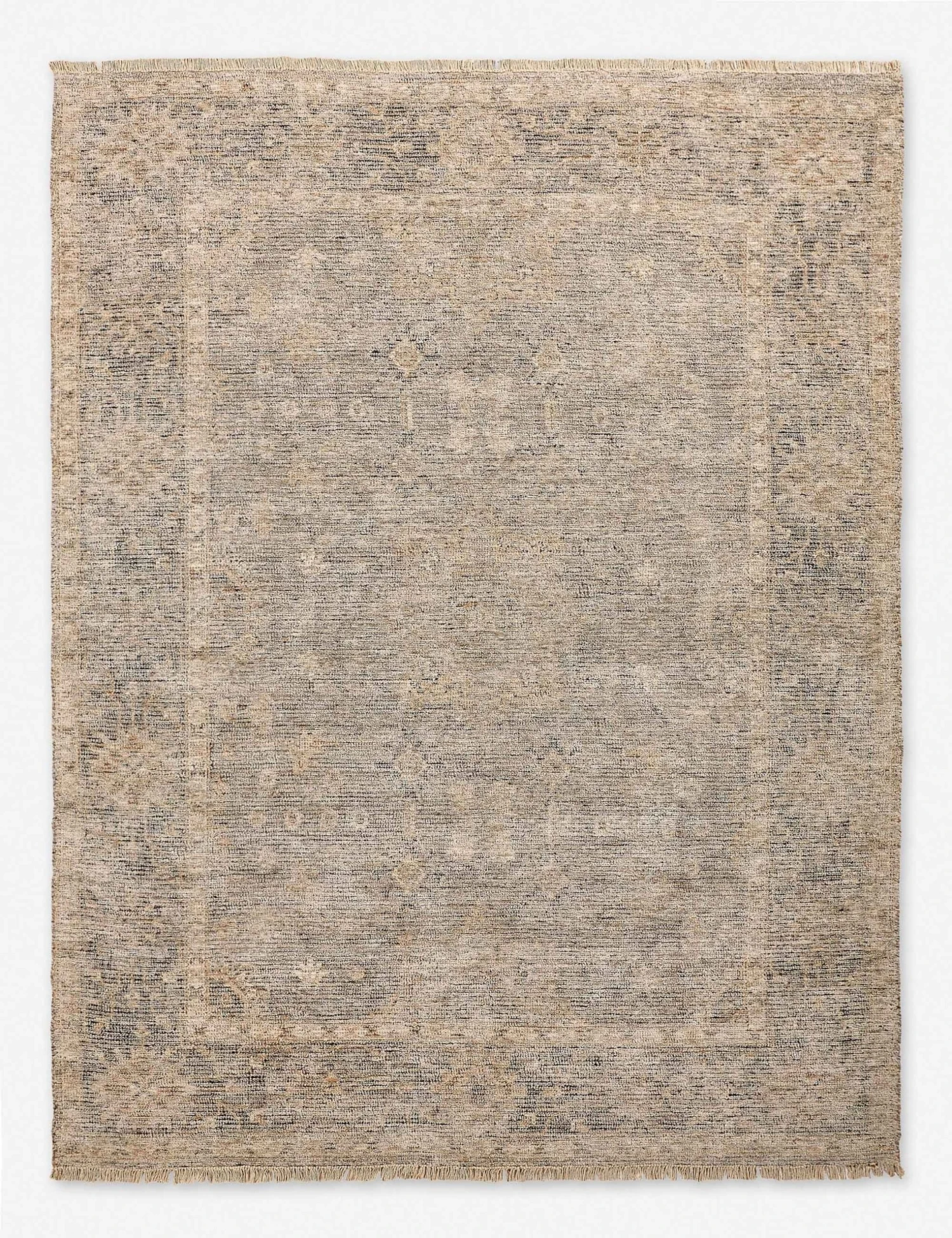 Distressed for added vintage-inspired charm, this rug offers a timeless and elegant appeal for any room in your home. Finished with fringe for added texture, this handwoven area rug’s traditional motifs create an inviting look.