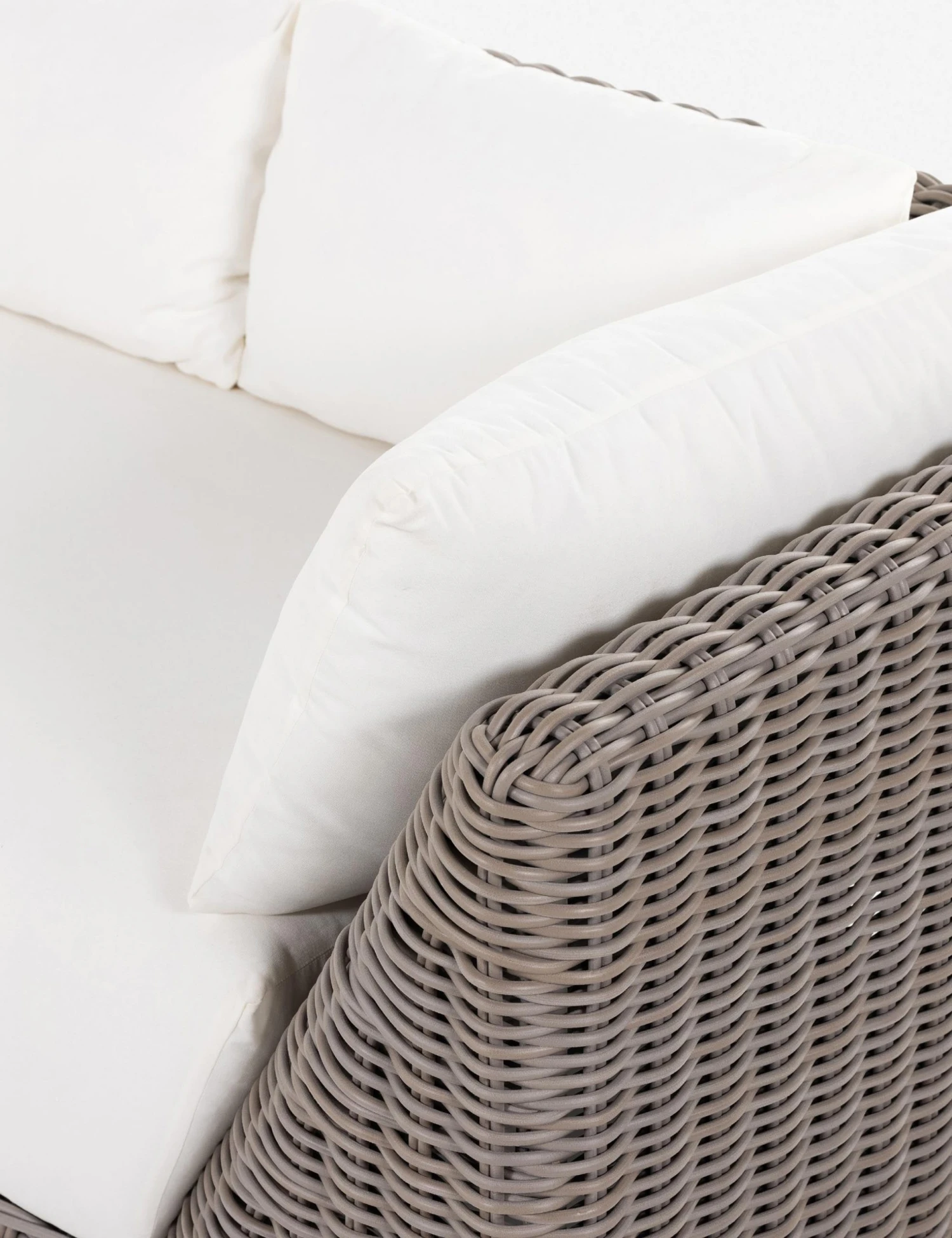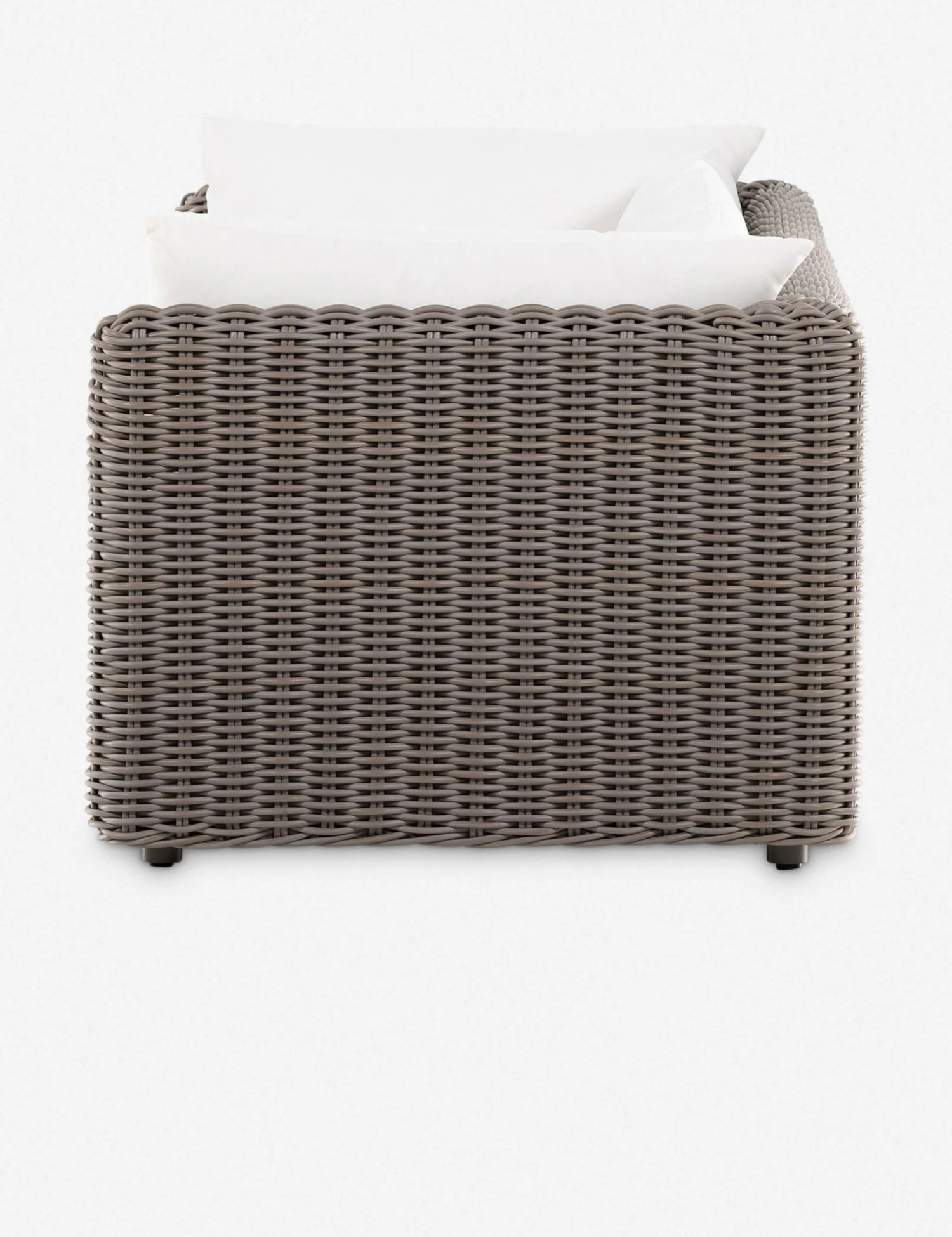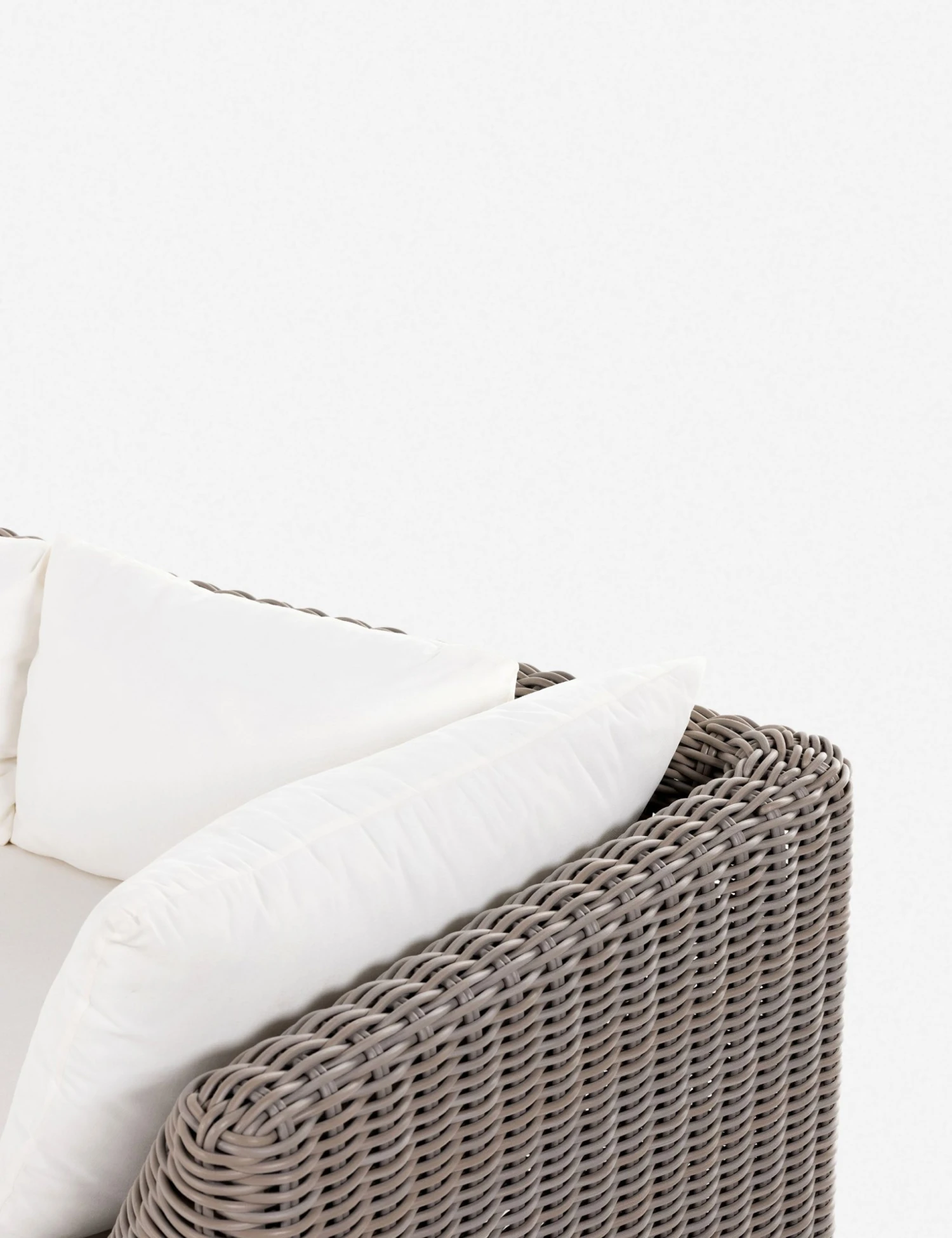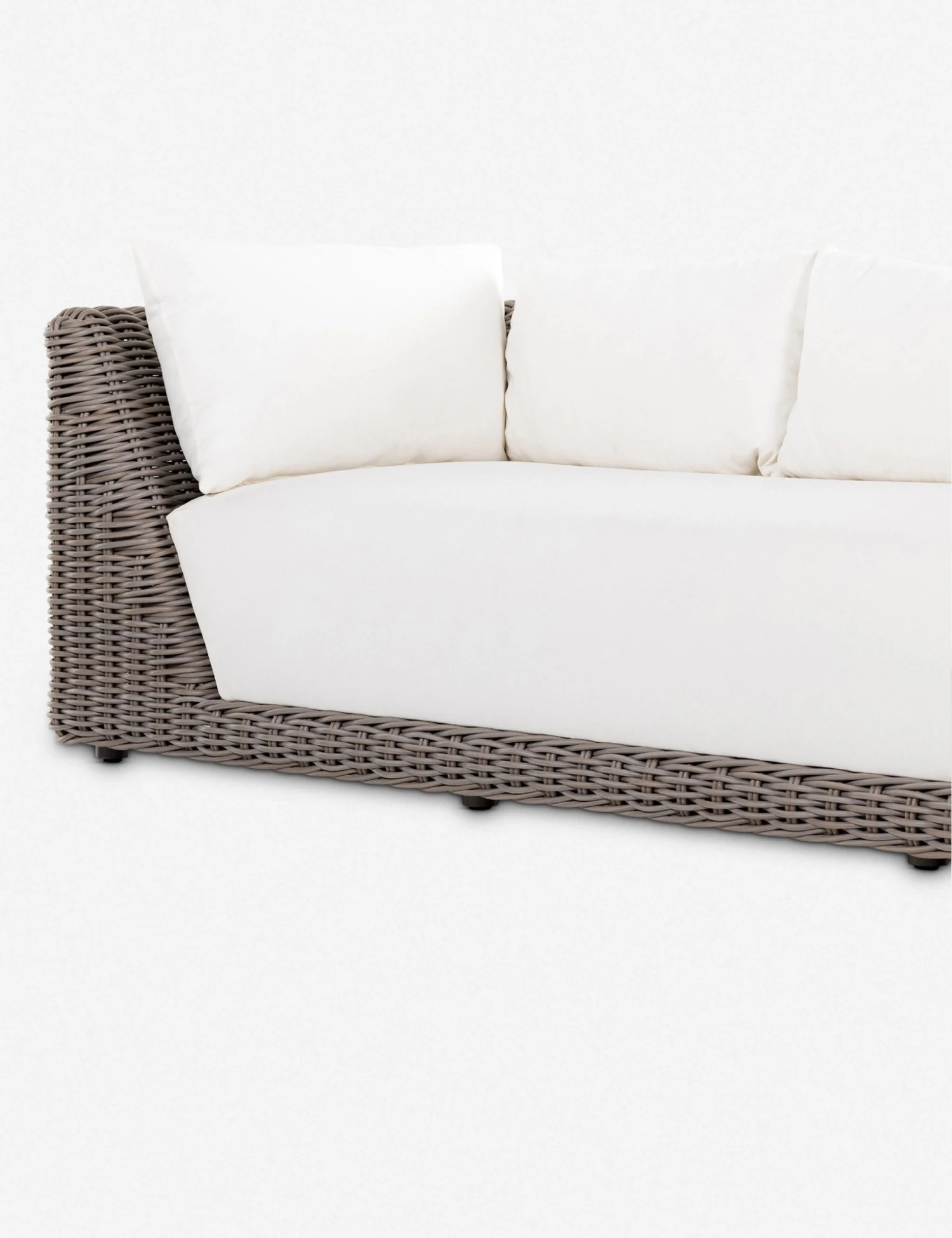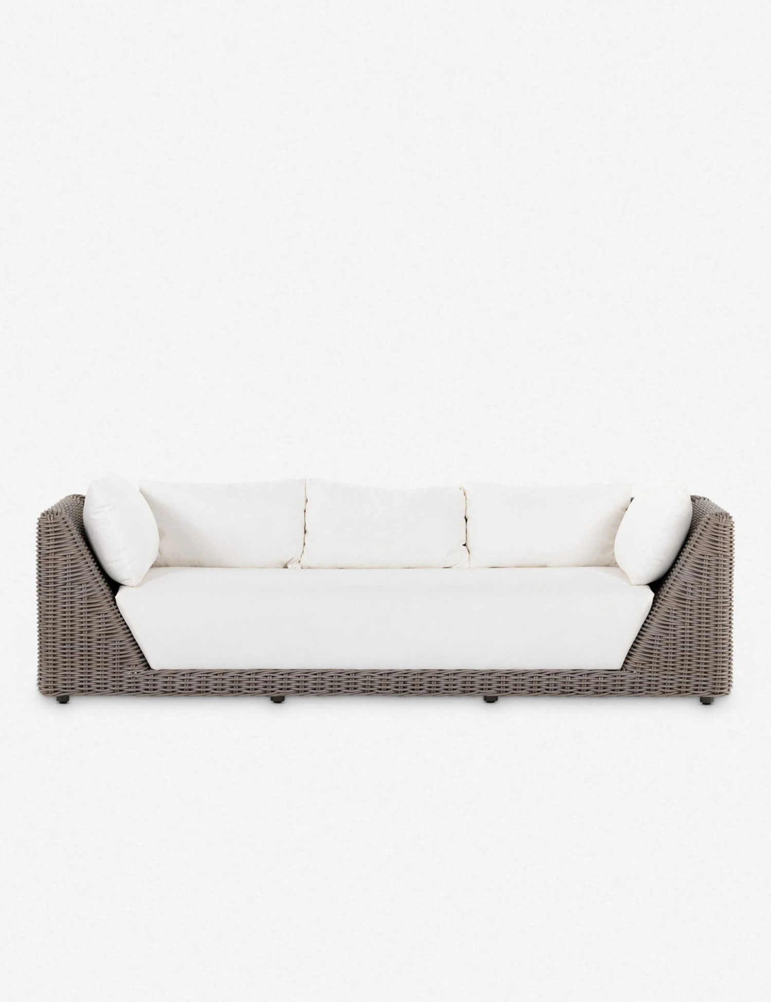 Pairing a plush, airy style with sculptural lines, this dynamic wicker sofa is perfect for a social, fresh-air lounge. The all-weather wicker frame forms an angular silhouette fit with performance upholstered cushions for a versatile couch you can style from the sunroom to the patio.