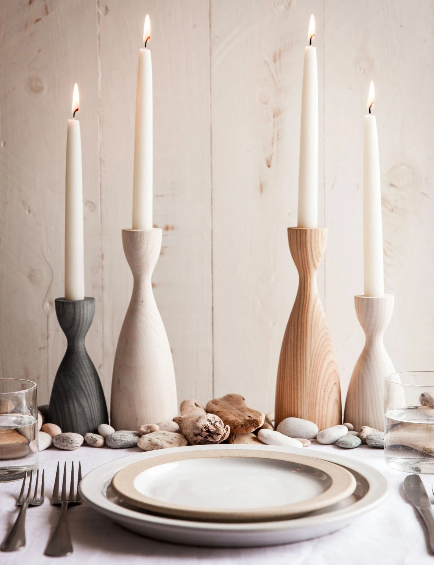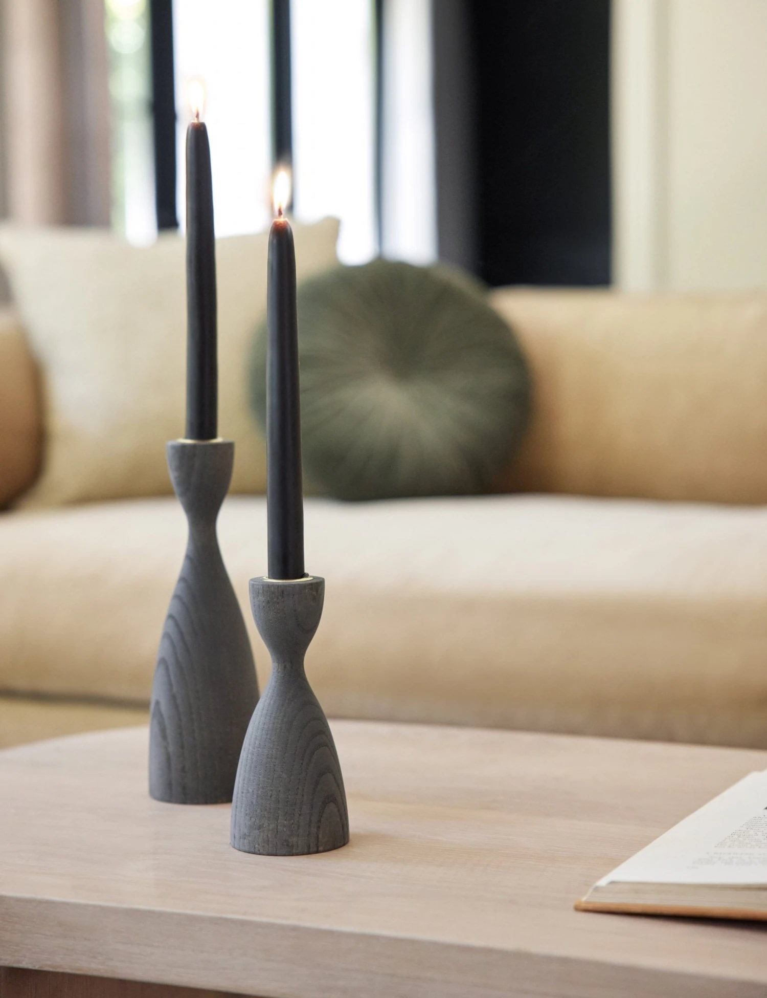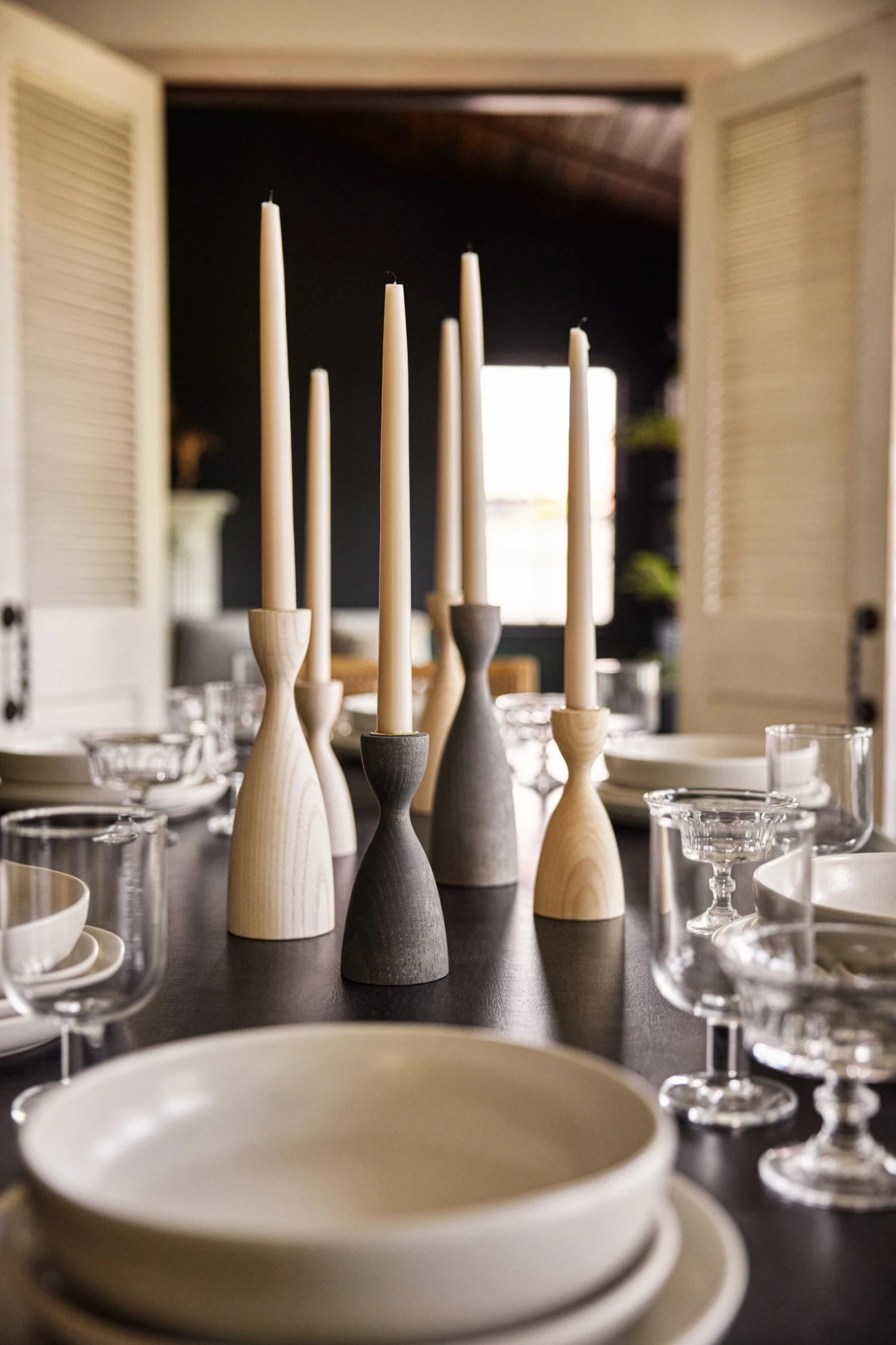 Modern with a farmhouse-chic twist, this candlestick features smooth curves and beautiful woodgrain detailing. Style alone or group with a variety of colors and heights to give your dining room a more eclectic feel.