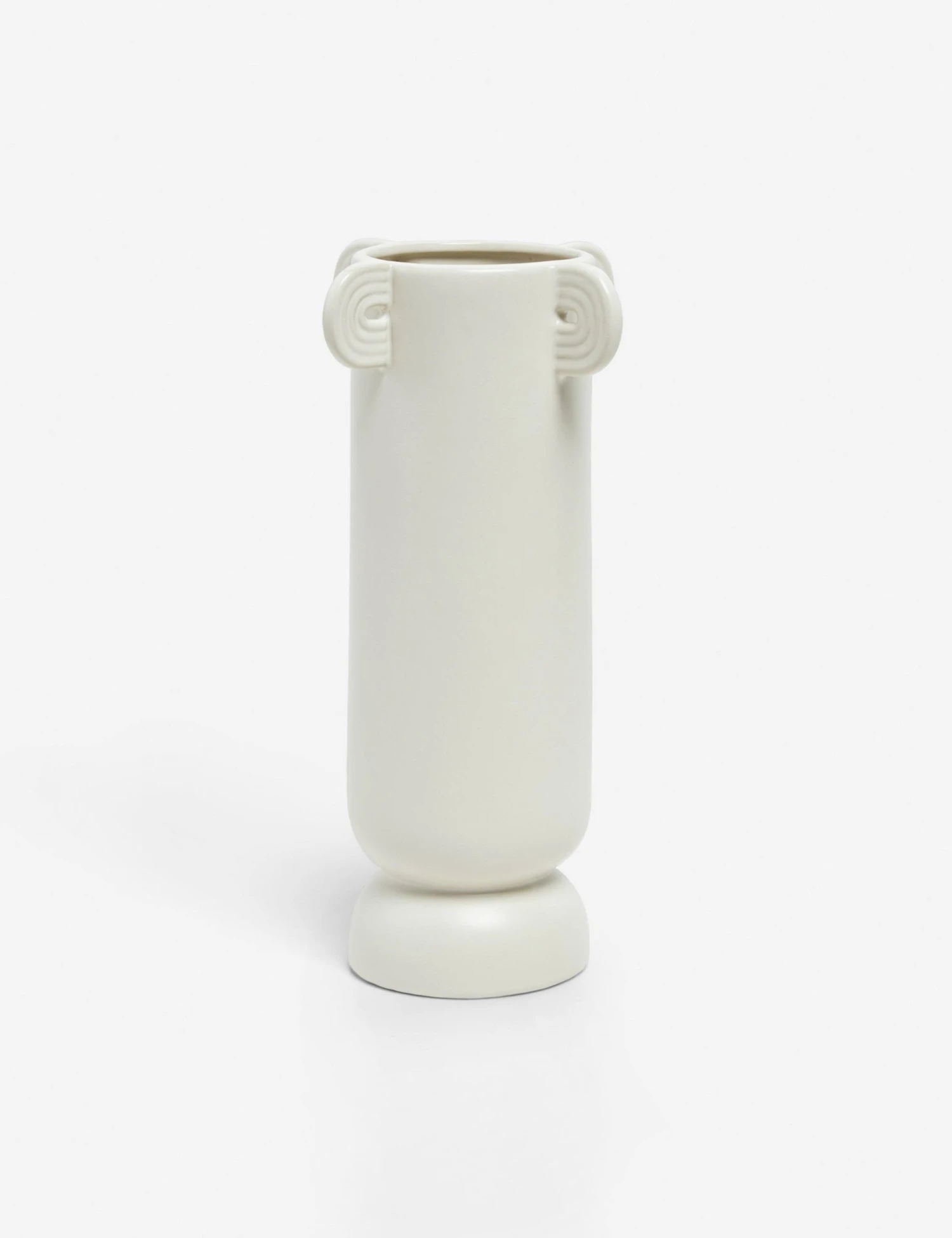 Bring a fine, earthy layer to your decor with this ceramic vase. A textural matte glaze complements the refined grooves of the shape, while the white finish offers a delicate touch. We love the tall silhouette to add dimension to a tablescape—add even more height with a dried botanical arrangement.
