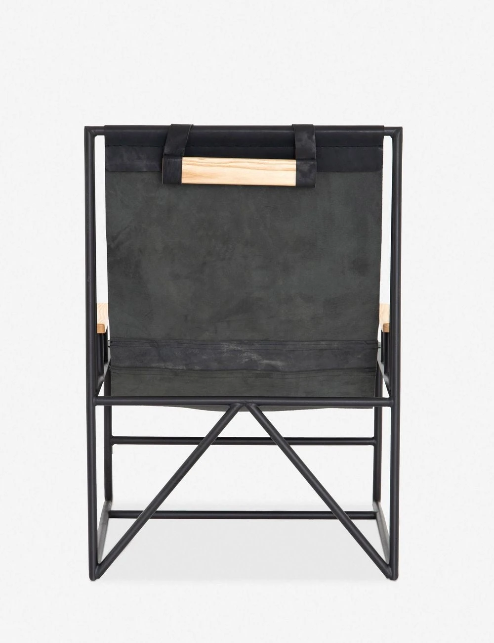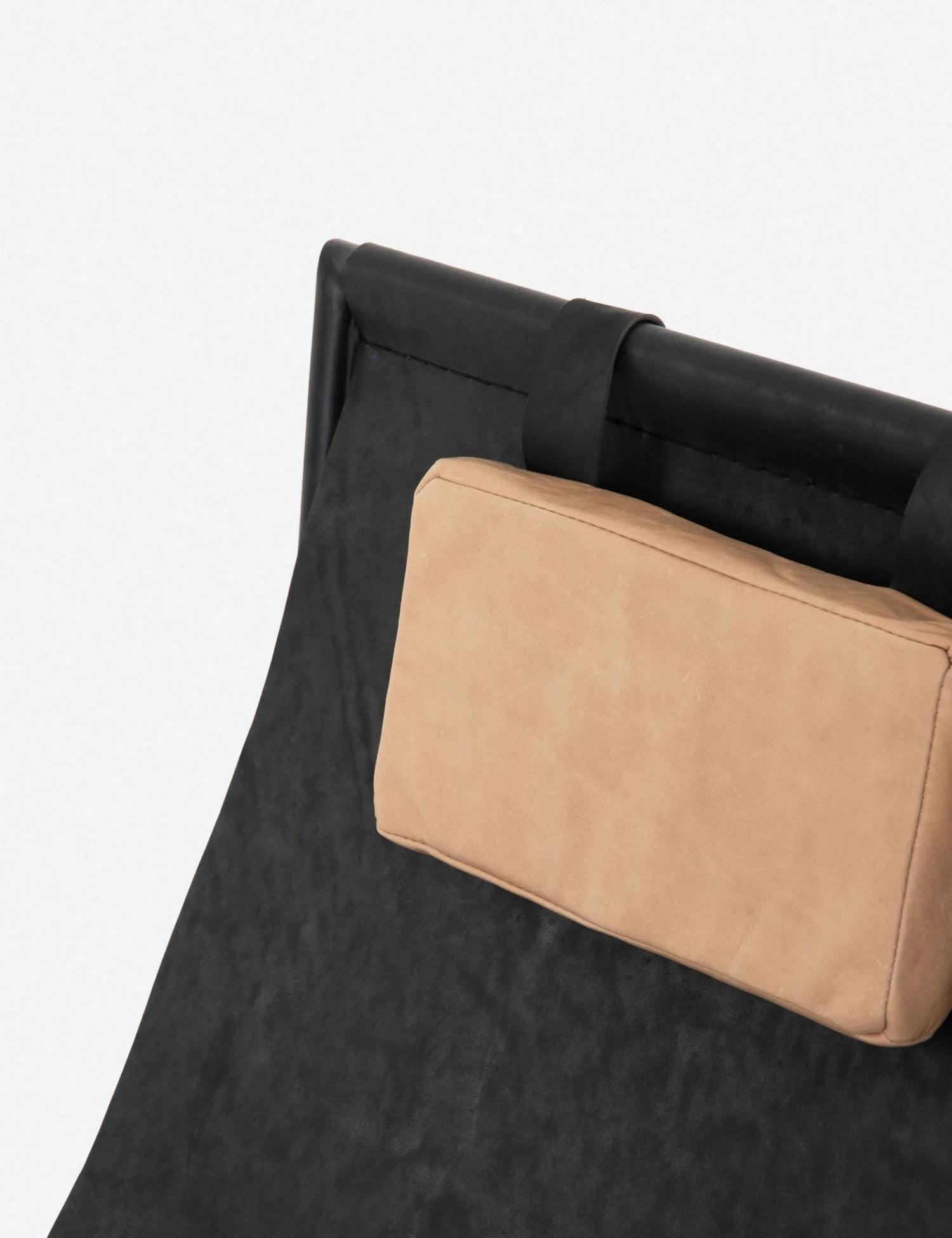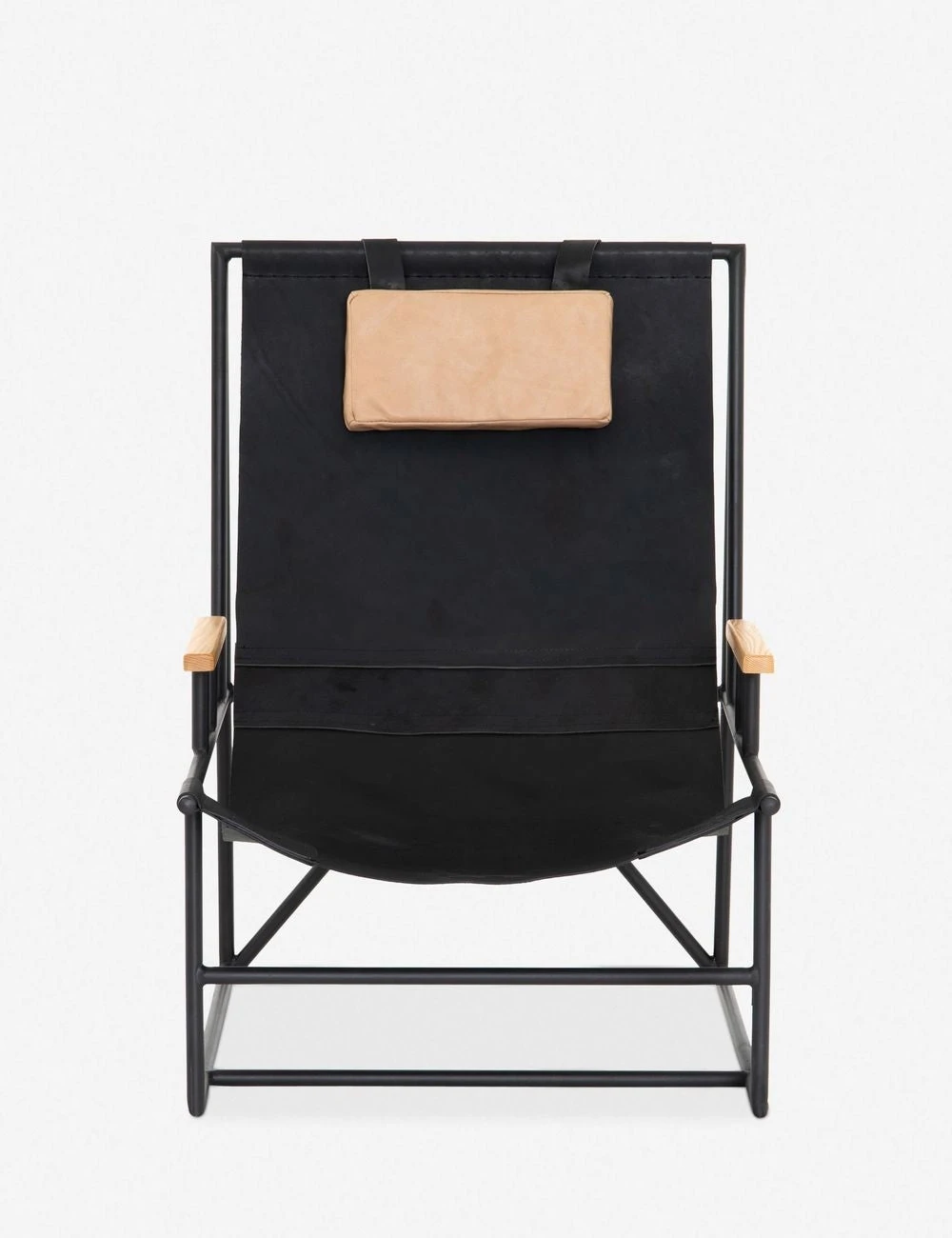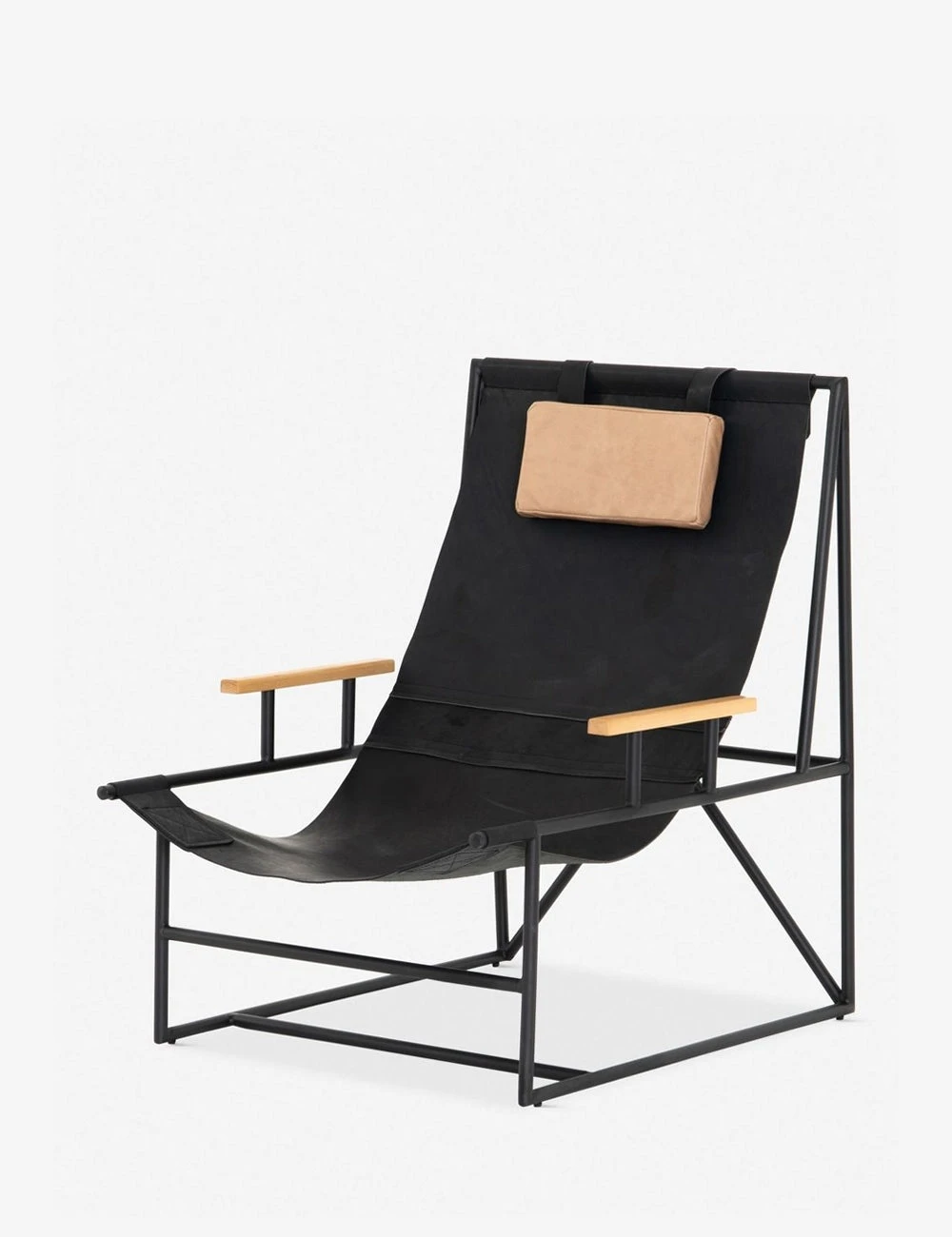 With a mid-century influence, this low-slung leather chair adds an architectural note to your living room or home office. Complete with an angular metal frame, ash wood armrests and a removable contrasting leather headrest.