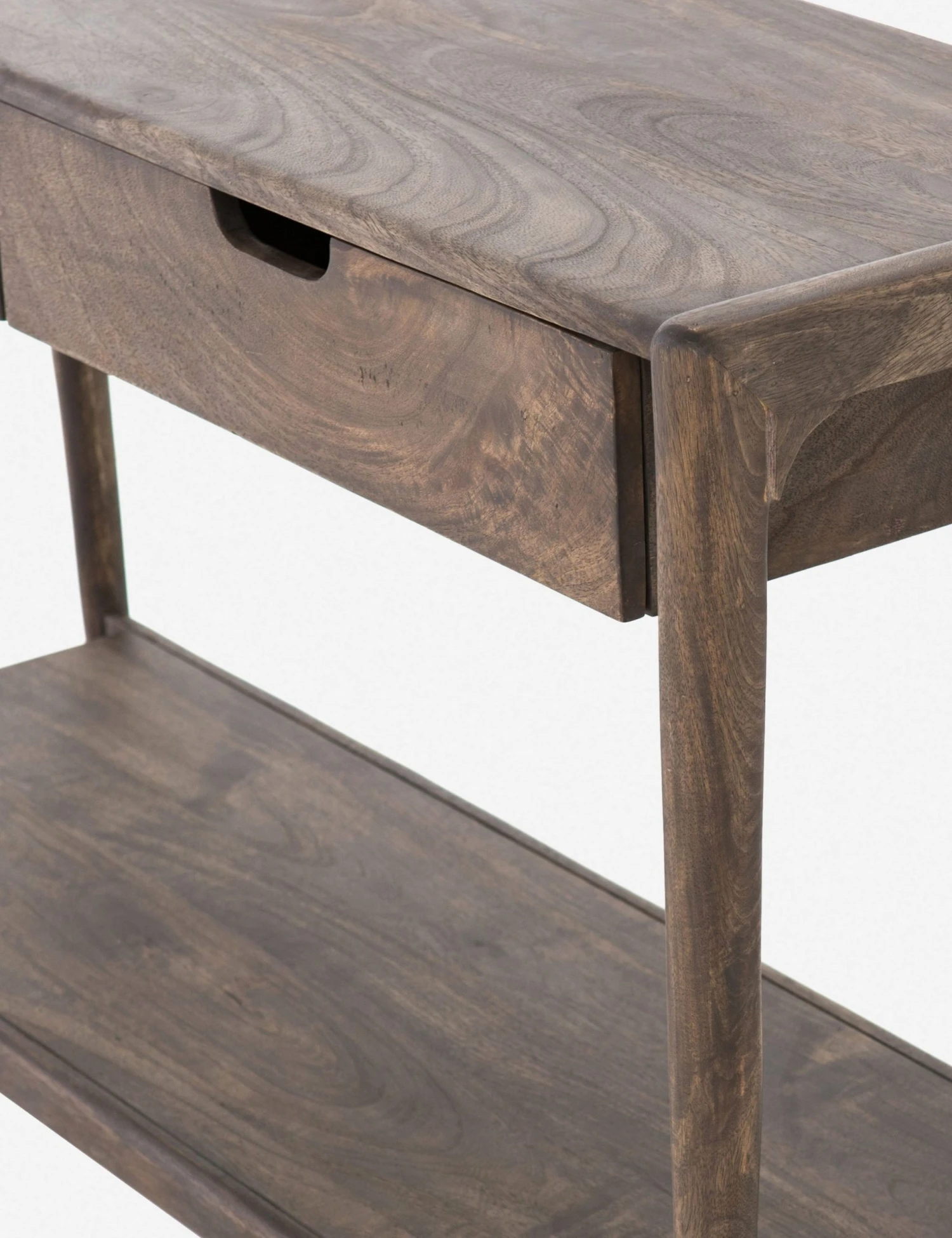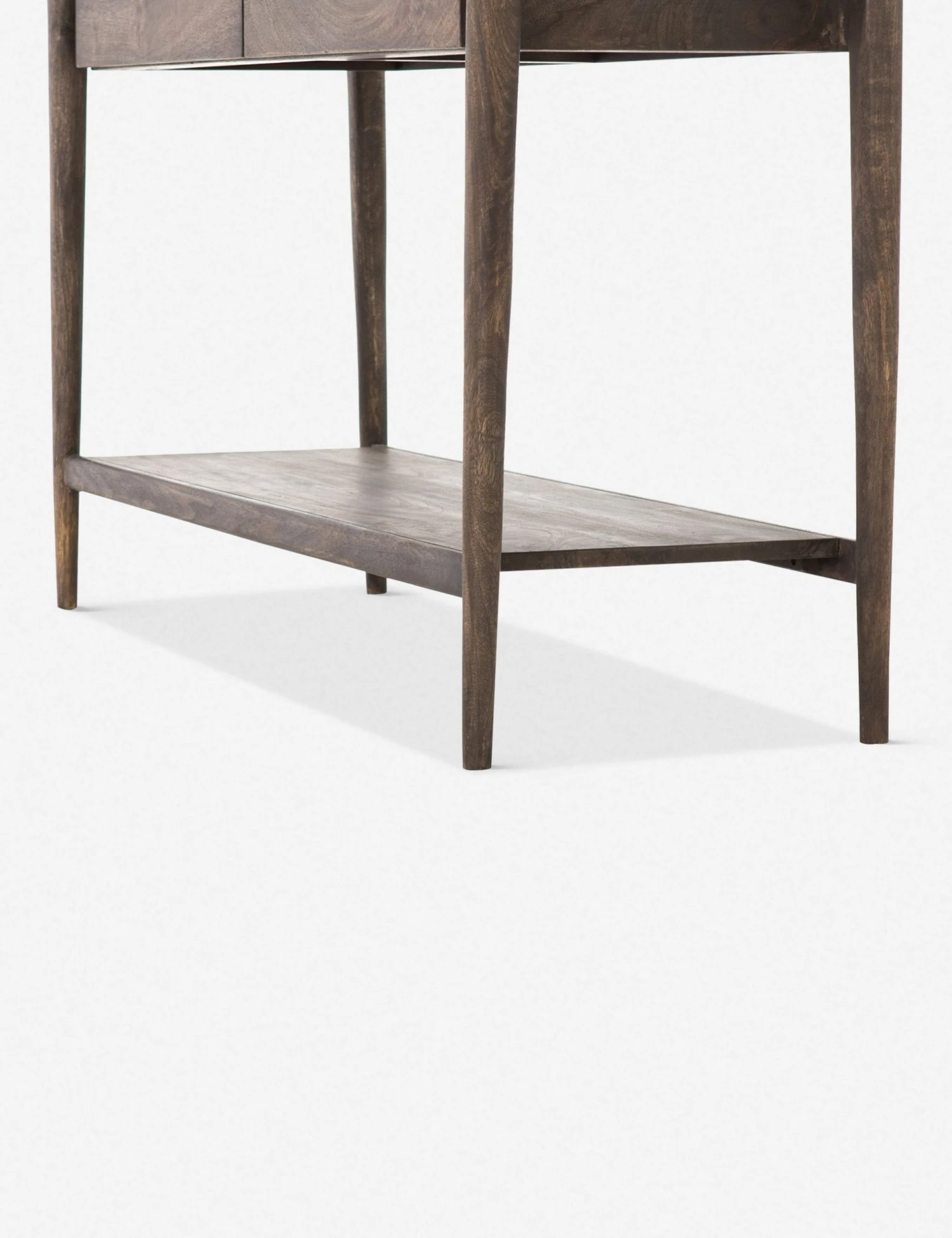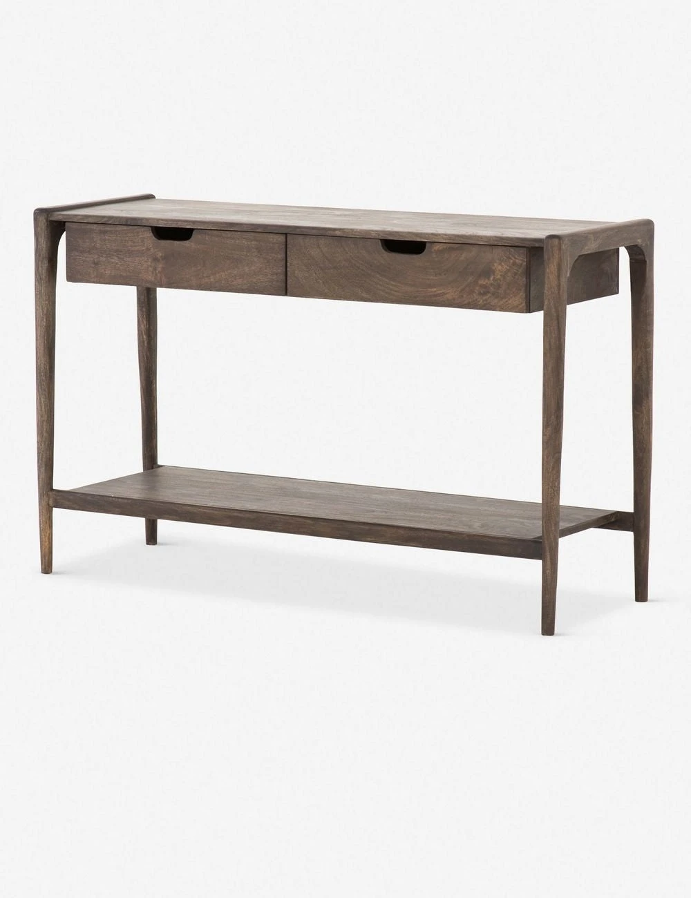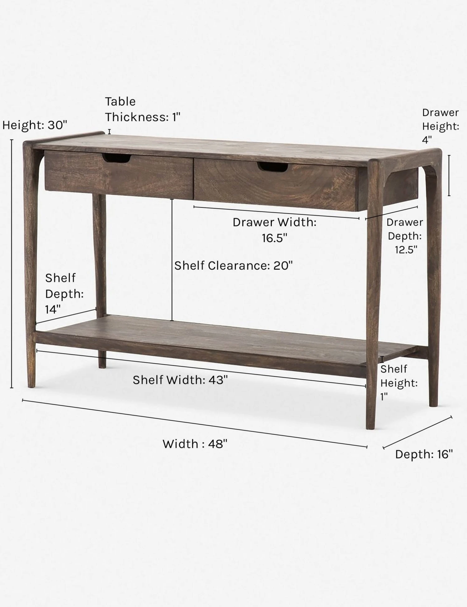 Mixing mid-century and farmhouse style, this wooden console table features rounded edges and float-like drawers for a softer take on vintage-inspired style.
