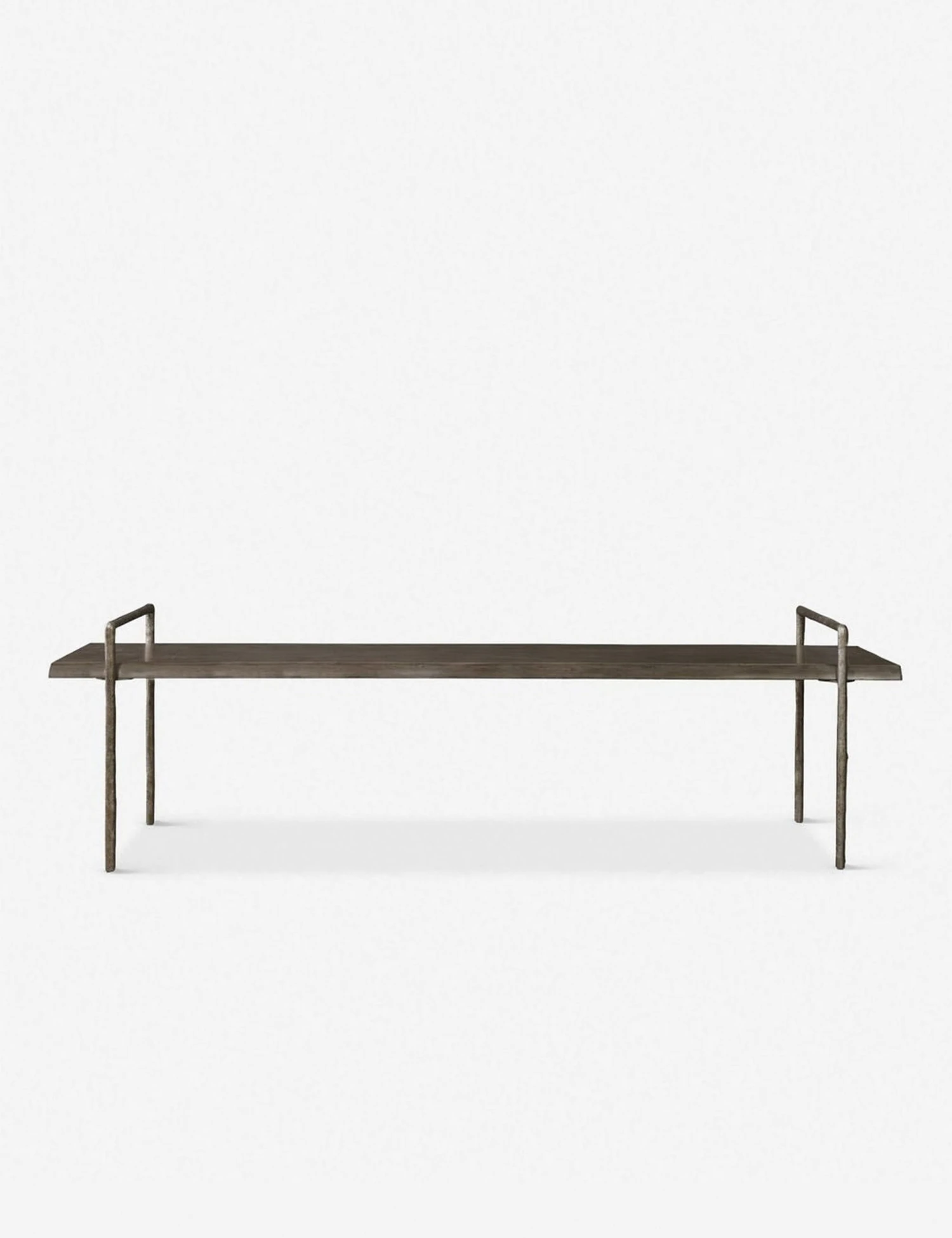Offering a modern twist on lodge styling, this wooden bench has a sleek dark gray stain and textured iron framing. It’s the perfect accent seating for your entryway or even at the foot of your bed.