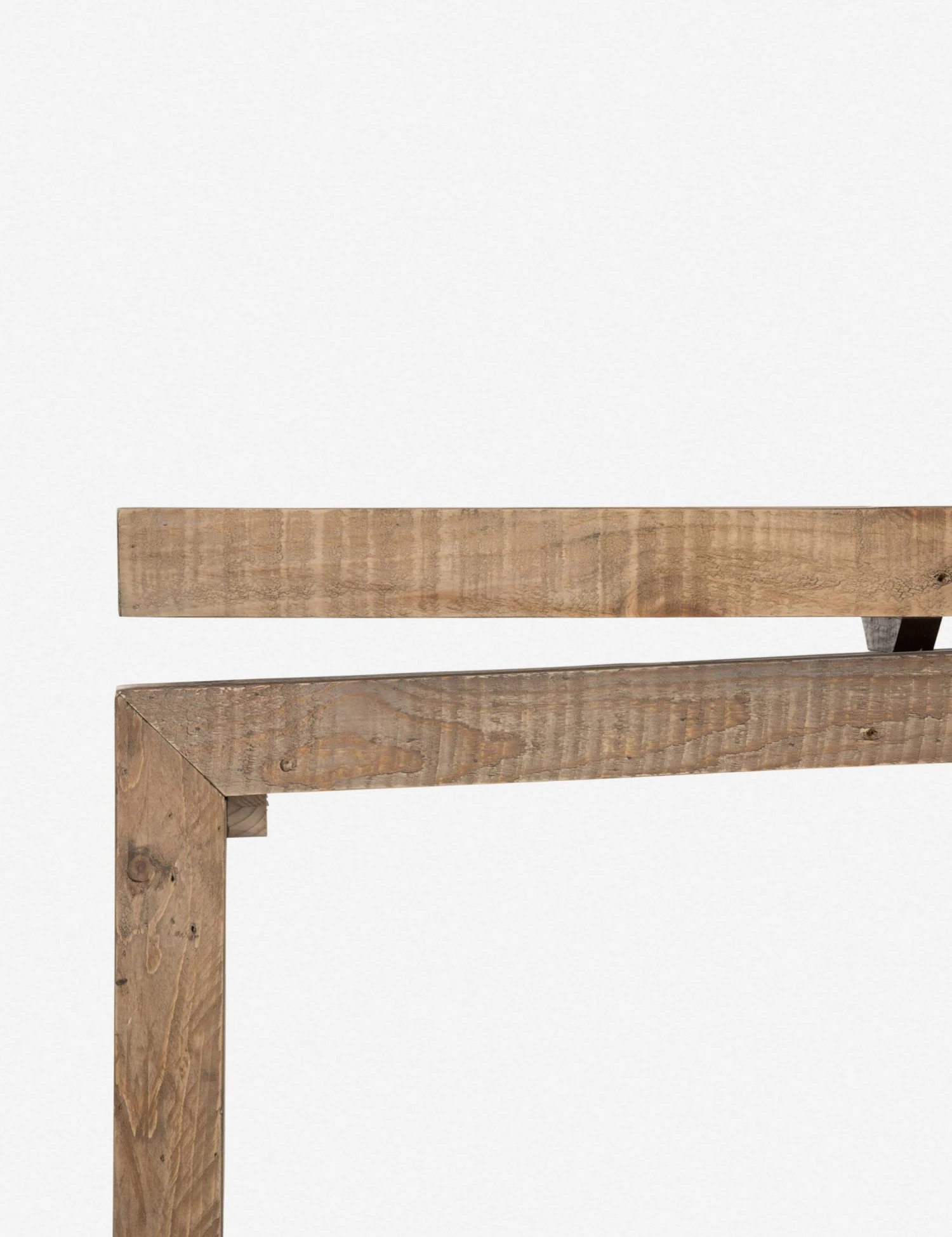 This streamlined and rustic console table is fashioned from reclaimed wood for a profile with a striking artisanal balance. The elemental design makes this piece a versatile fit as an organic entryway table or as an understated media console in a casual, coastal aesthetic.