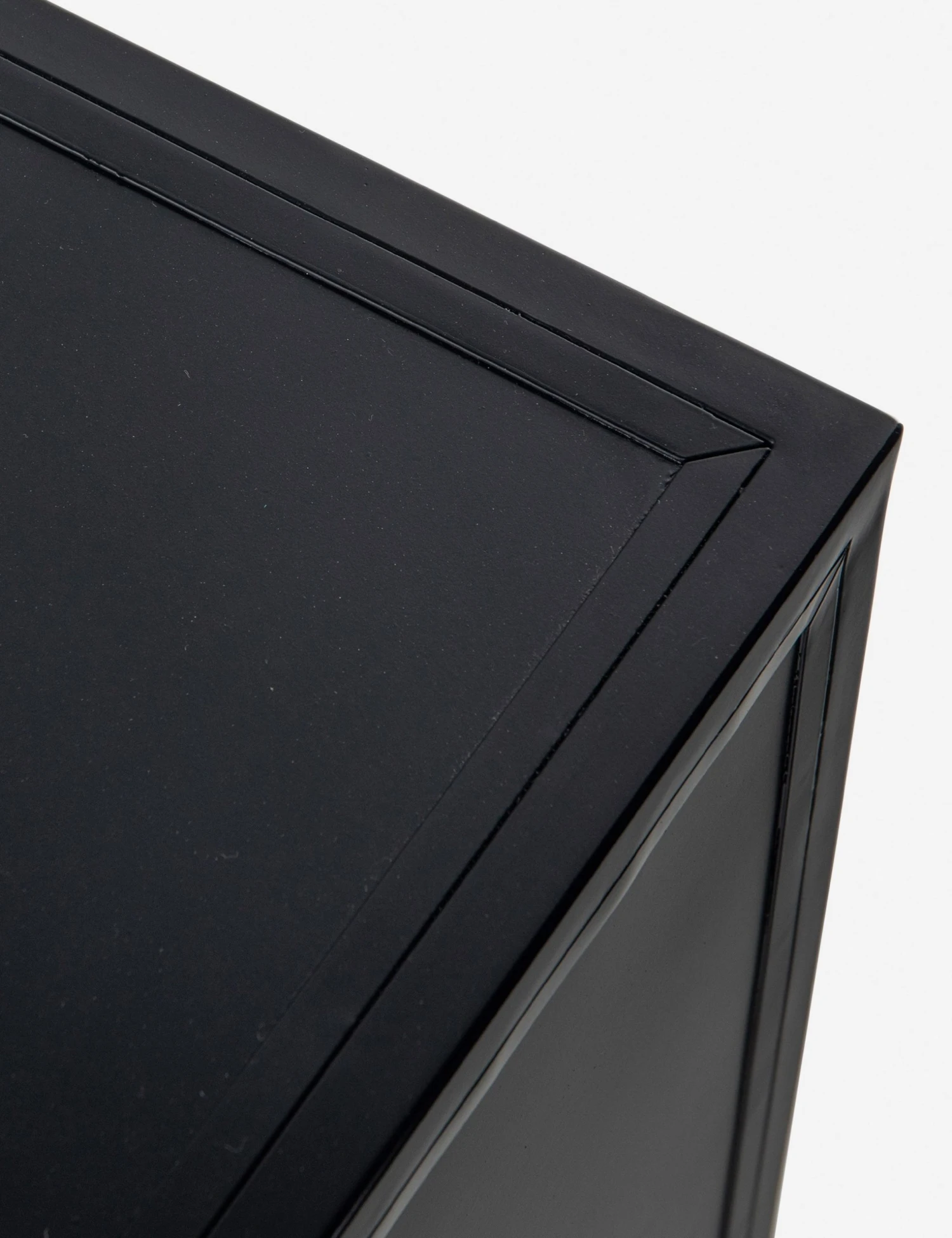 Perfect for industrial-inspired bedrooms, this tall eight-drawer dresser brings a sophisticated touch thanks to round brass drawer pulls that add a little shine to the black iron framing.