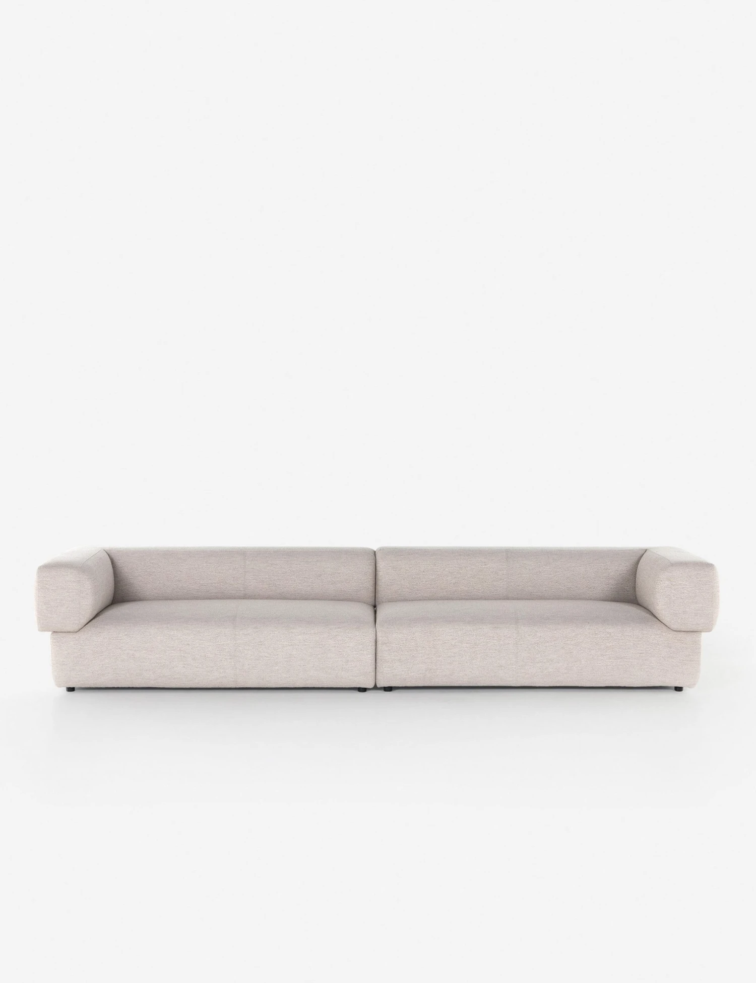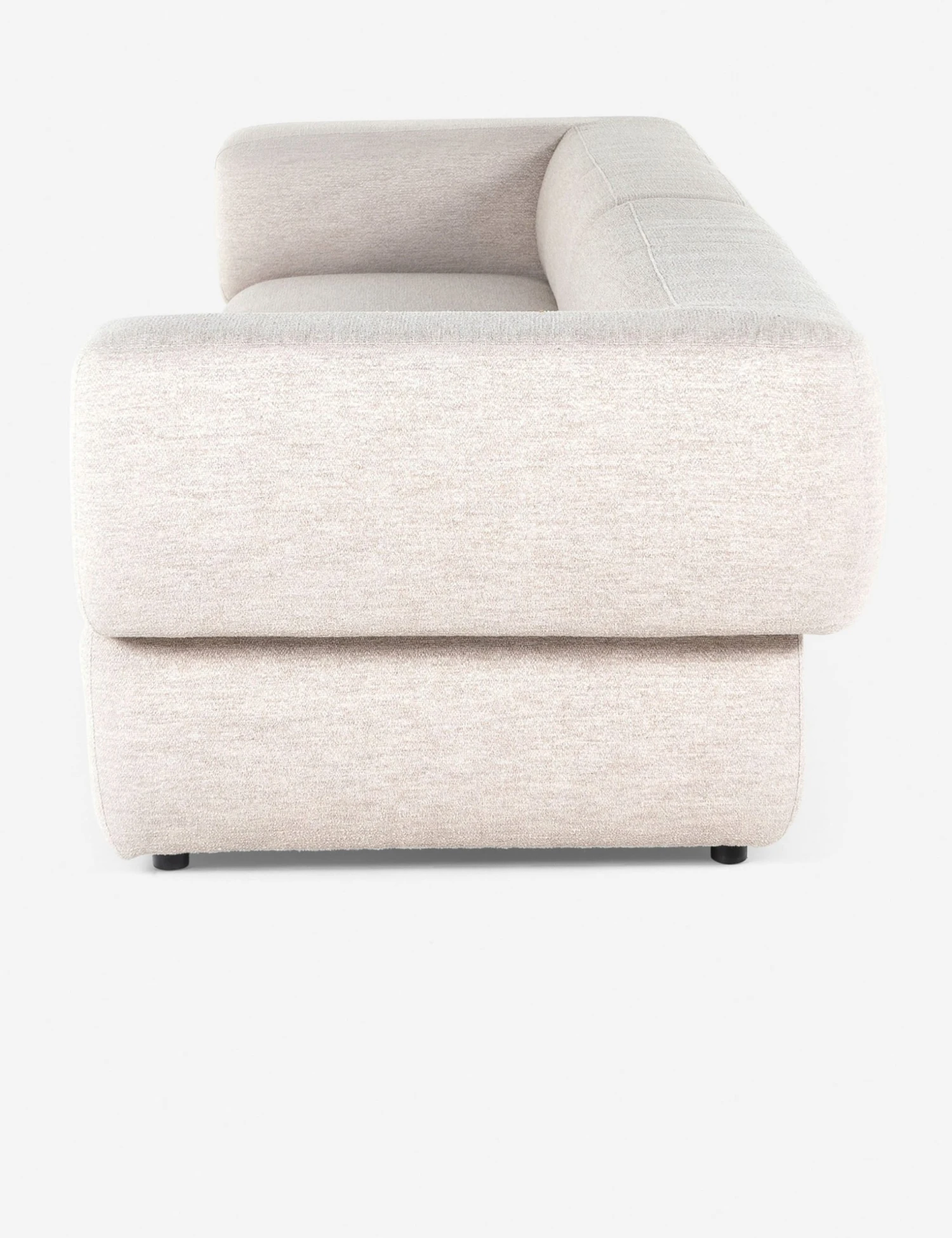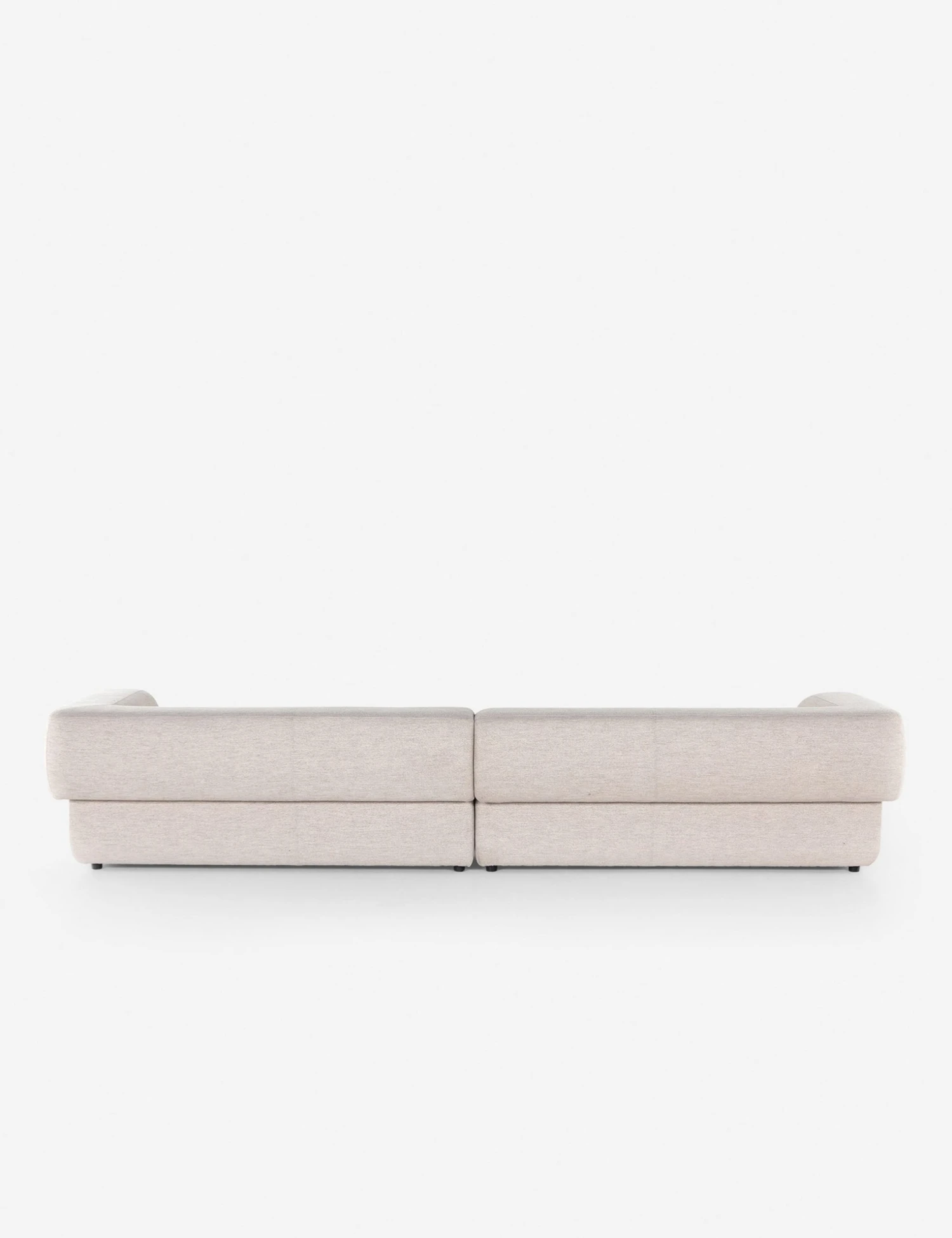 A plush tailored design wrapped in a high-performance fabric with a softness resembling a blend of boucle and linen makes this sectional sofa a refined touch of modern comfort. A long profile make this a great sectional couch to provide ample space for sprawling comfort. Style with natural textures and organic accents for a cozy California feel.