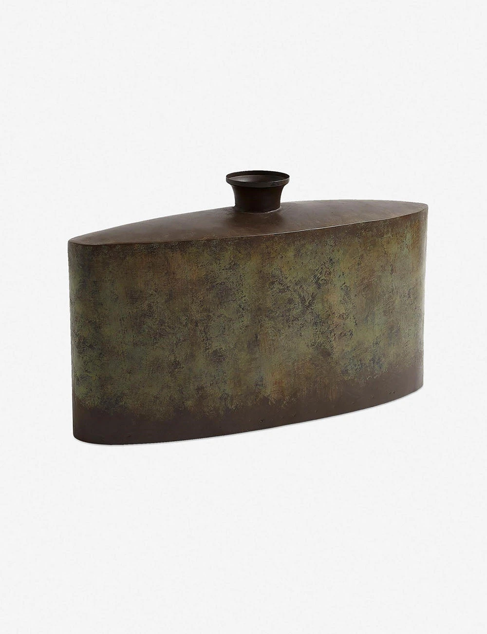 The antiqued bronze finish on this decorative canteen object lends it a beautiful patina to add to your living space. Made from weathered iron, its slender profile makes it a great accent to sit alone atop a side table, or clustered together with other decor pieces on an entryway console or shelving.