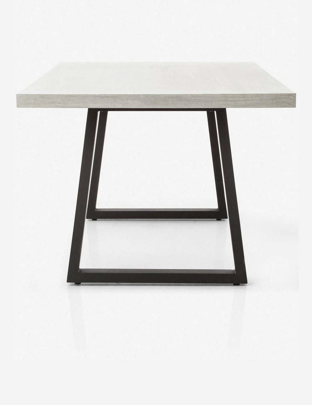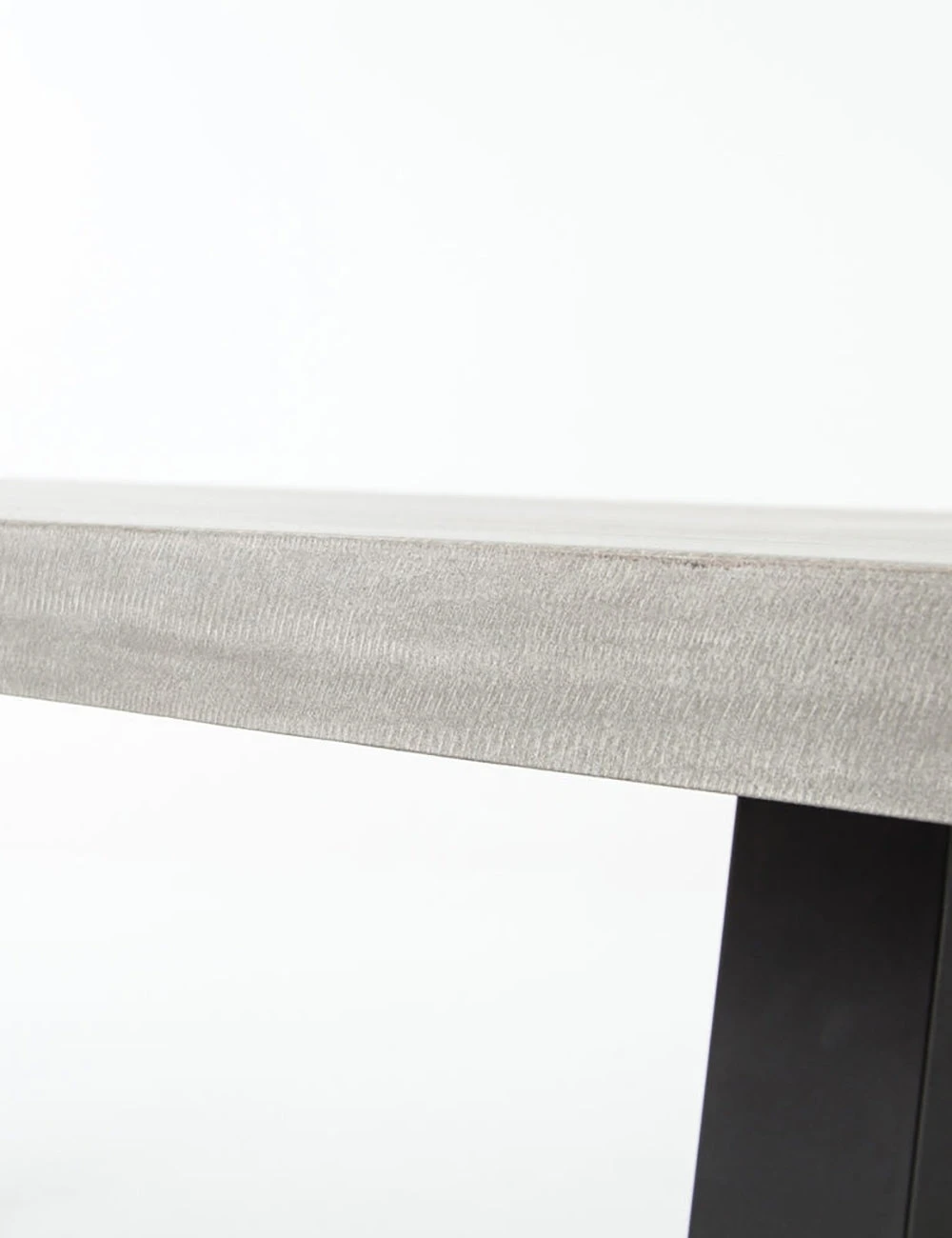 For modern style indoors or out, add this rectangular dining table to the mix. Featuring a lava stone top and sturdy black iron base, it’s a minimalistic look with industrial edge.
