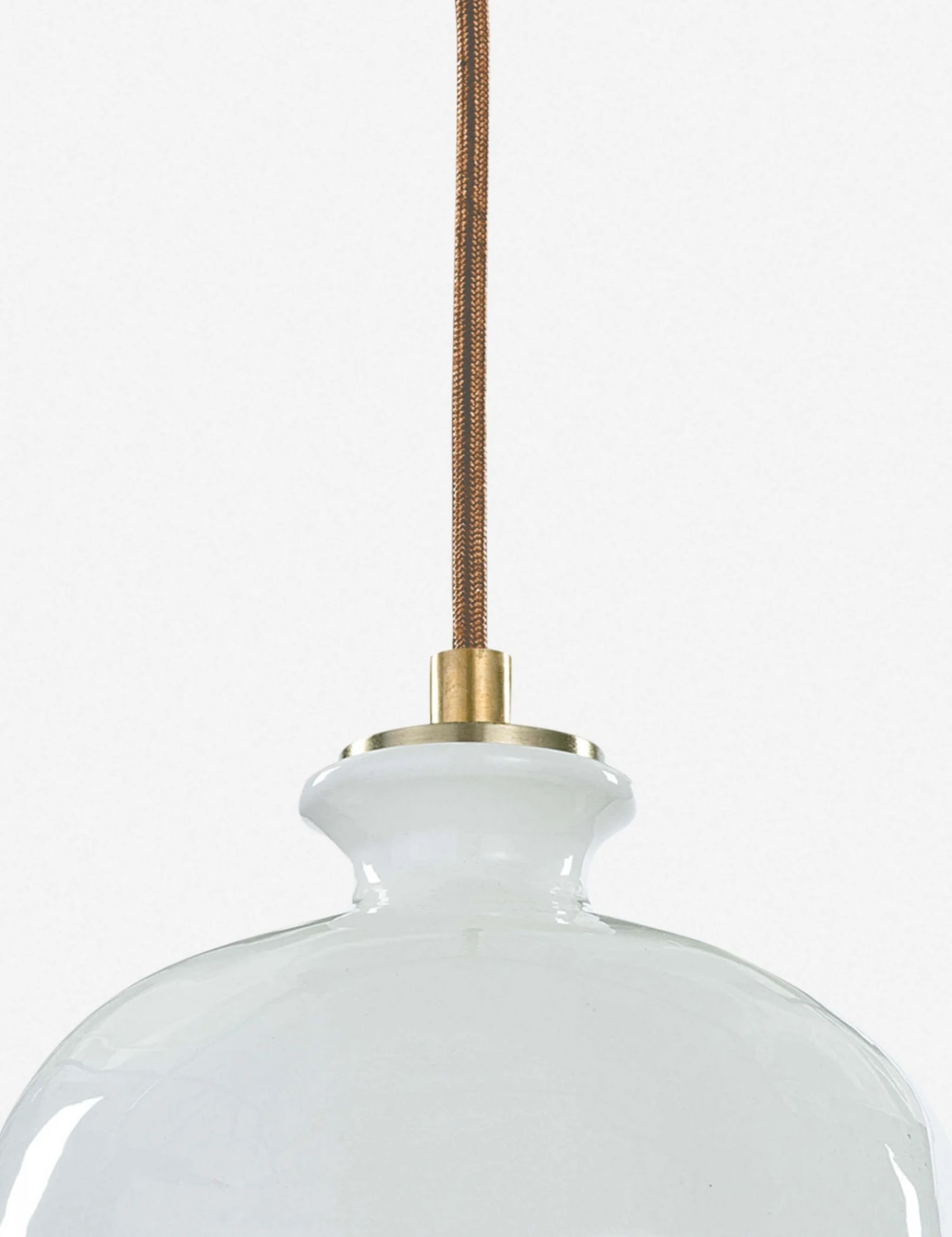 Our mid-century inspired design has a touch of gold and a glossy finish to add some minimalistic glam to your home. Consider grouping for a streamlined cohesive look over a kitchen island or dining table.