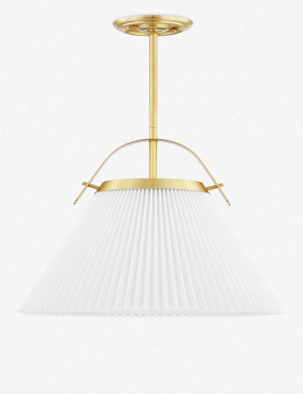 This chic pendant light updates classic notes with a modern, streamlined silhouette. The sleek metal down rod and collar holds a ruffled Belgian linen shade to cast a beautifully diffused light in a pendant design that’s set for transitional appeal.