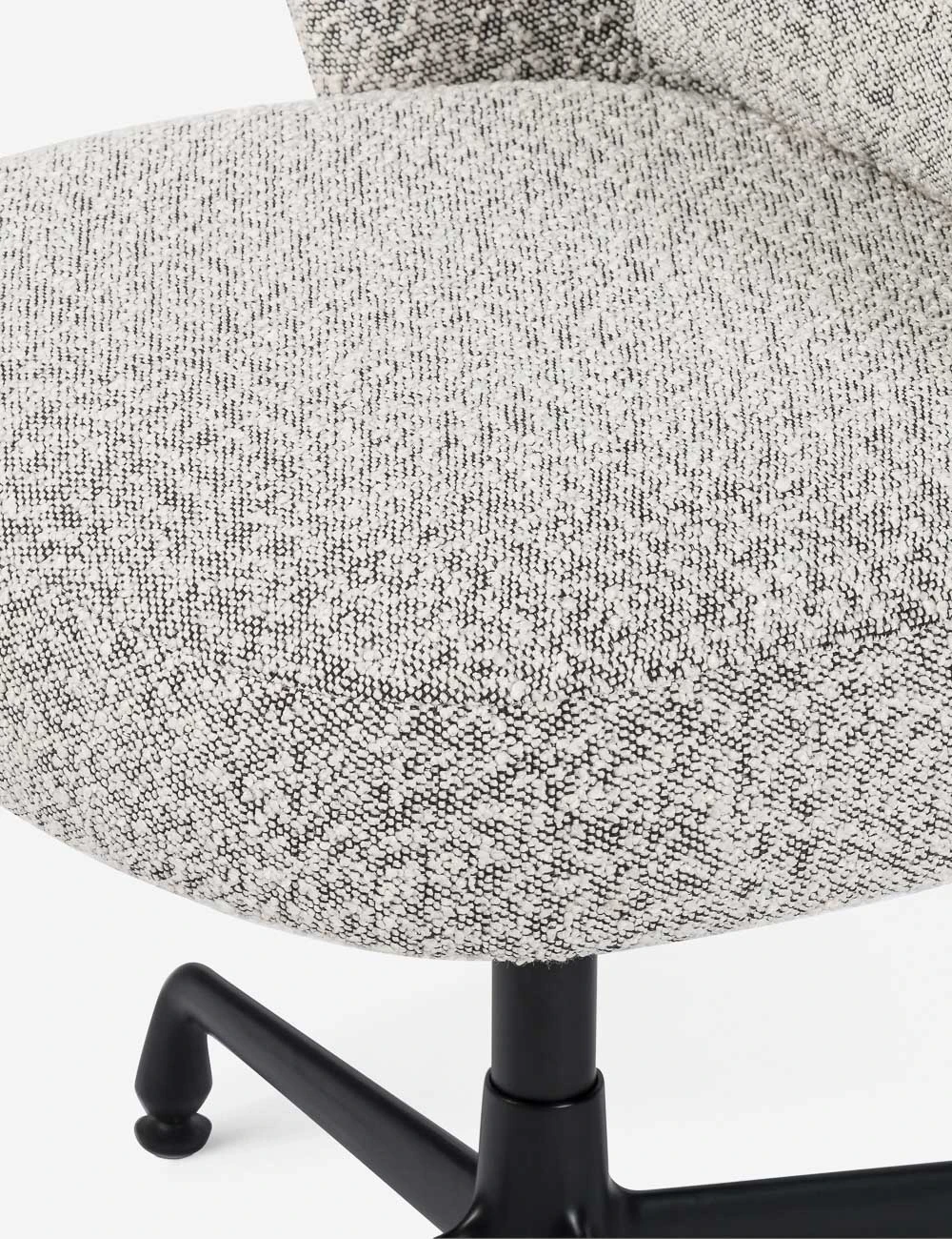 Boucle-like performance fabric wraps the contoured lines of an ultrasoft seat, giving this modern desk chair a decidedly stylish silhouette. The metal swivel base offers a polishing touch for practical appeal in your home office or study.