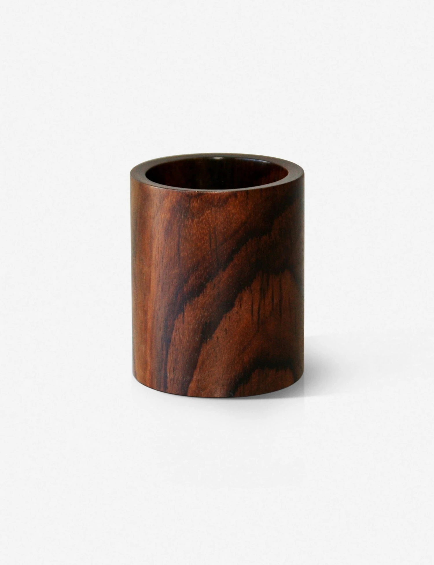 A sophisticated storage piece for your bathroom counter or home desk setup, this decorative wooden tumbler keeps you organized in style. The round canister features an open-top design that’s perfect for makeup brushes, Q-tips, toothbrushes, or even pens and pencils.