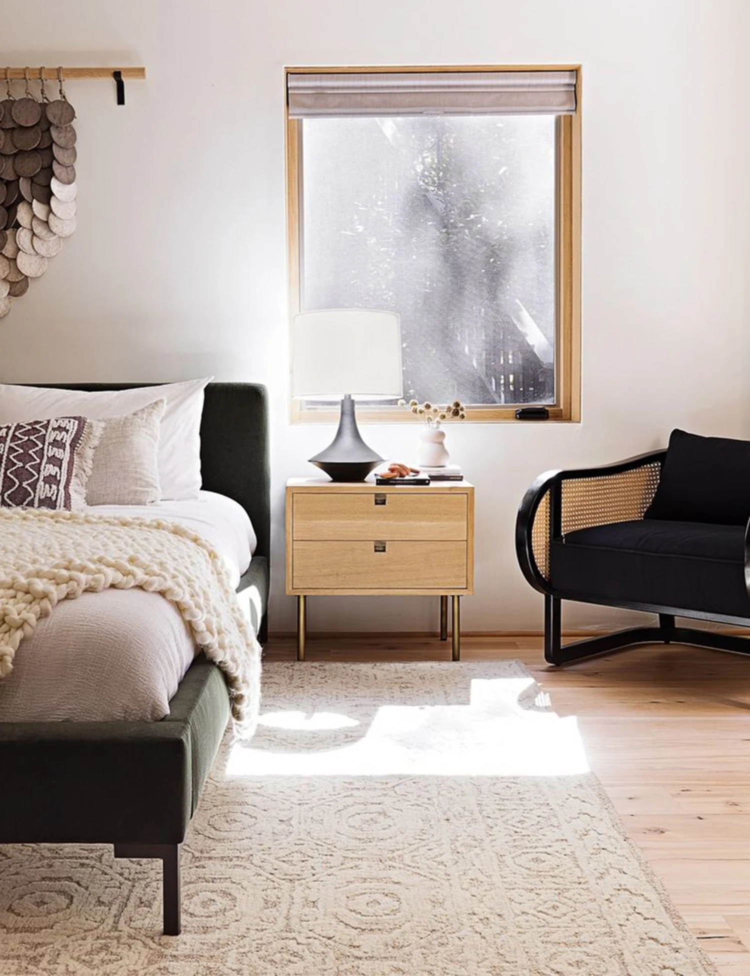 Combining streamlined design and retro details, the Karma collection is ideal for modern spaces. This nightstand features cutout details, natural oak variations and thin brass legs.