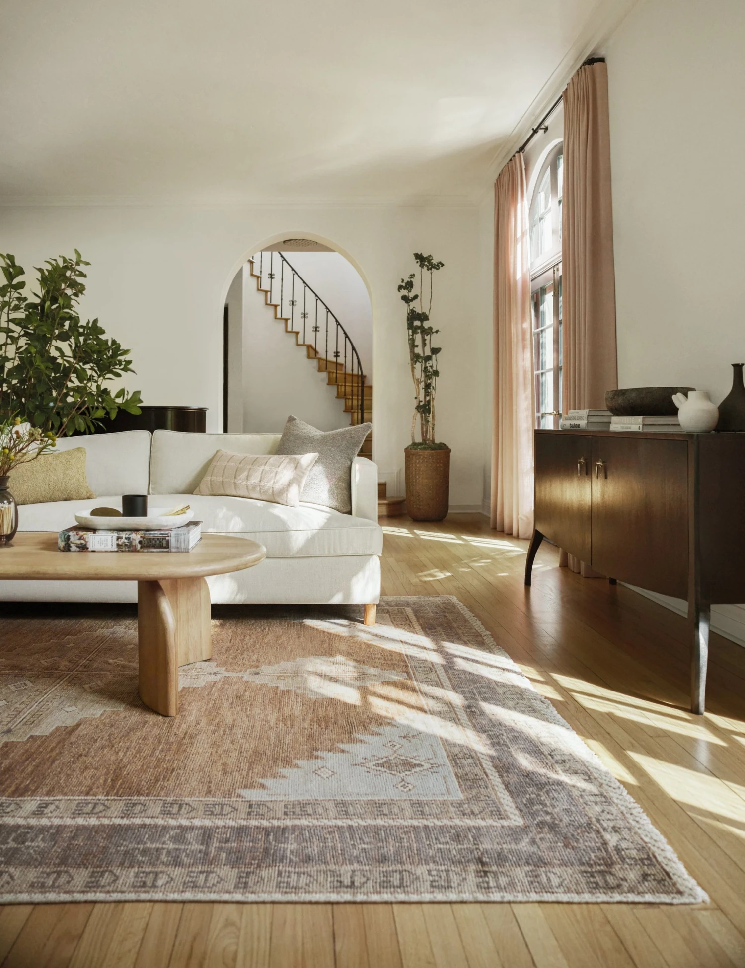 In a deeper desert palette, this geometric floor rug design is an eye-catching centerpiece for your space. Woven with a wool and cotton blend, this rug provides a soft layer for your feet with durable, low pile construction to offer timeless, lasting appeal.