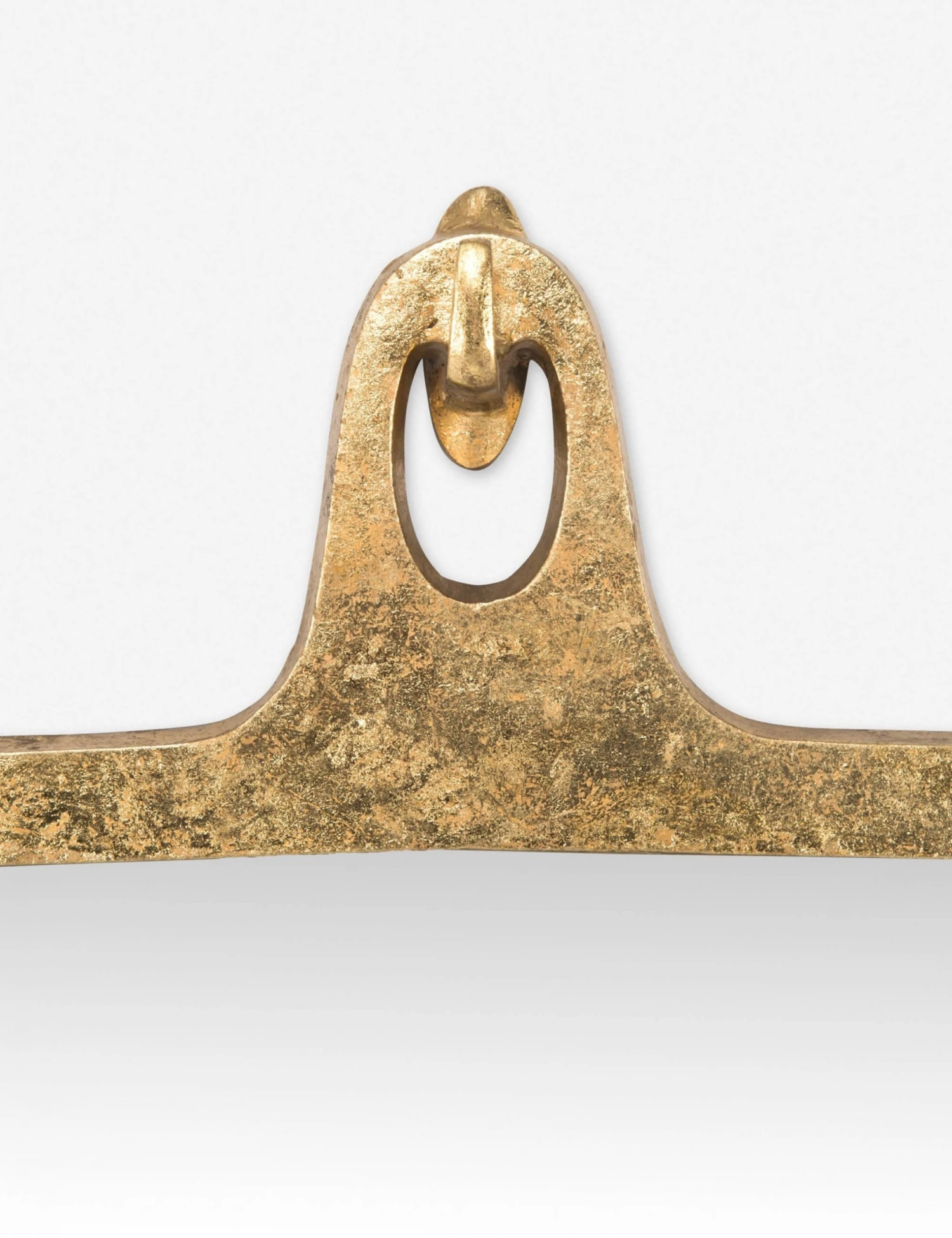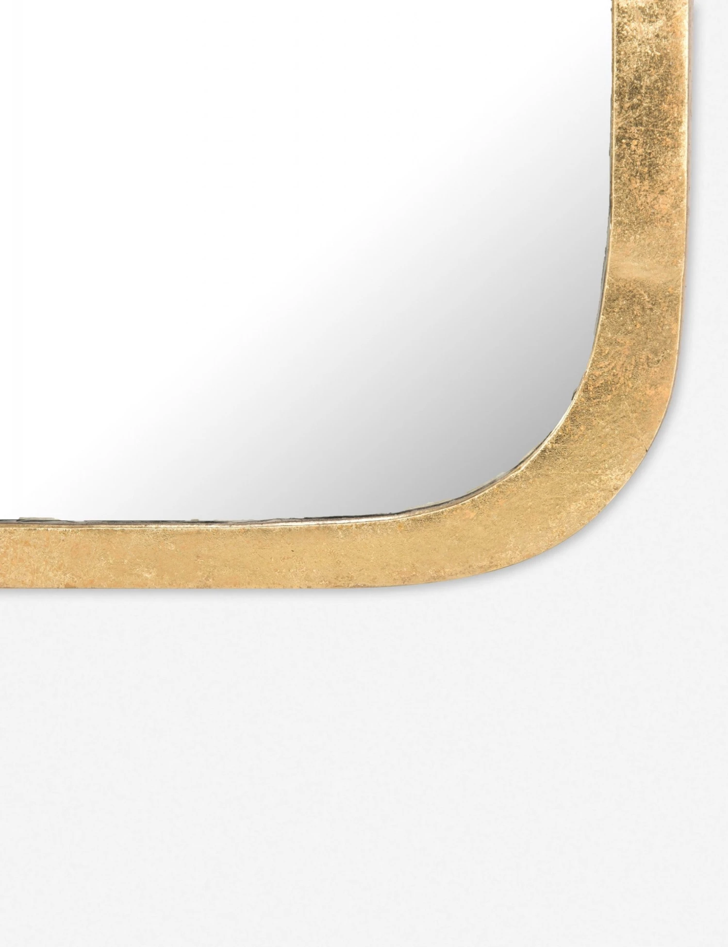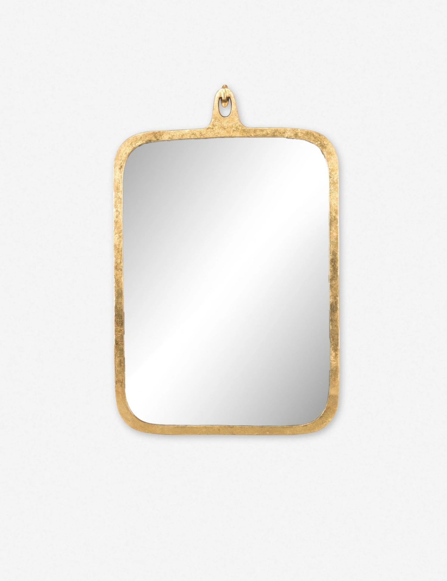 The pop of shine that you’ve been searching for, this large mirror features rounded corners and a top hook with a textured gold-leaf frame. It’s a mix of cool contemporary and vintage-inspired flair that makes a stylish statement!