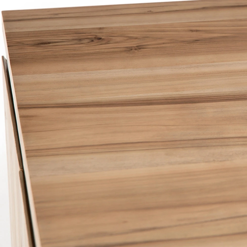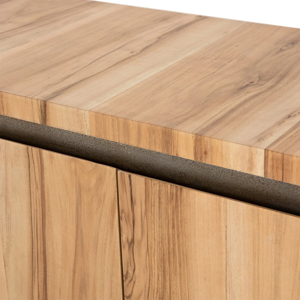 Bleached Italian walnut with a dramatic grain lends a fresh organic air to this modern sideboard. A thick iron band bisects the top of the piece, creating visual interest and dimensions.