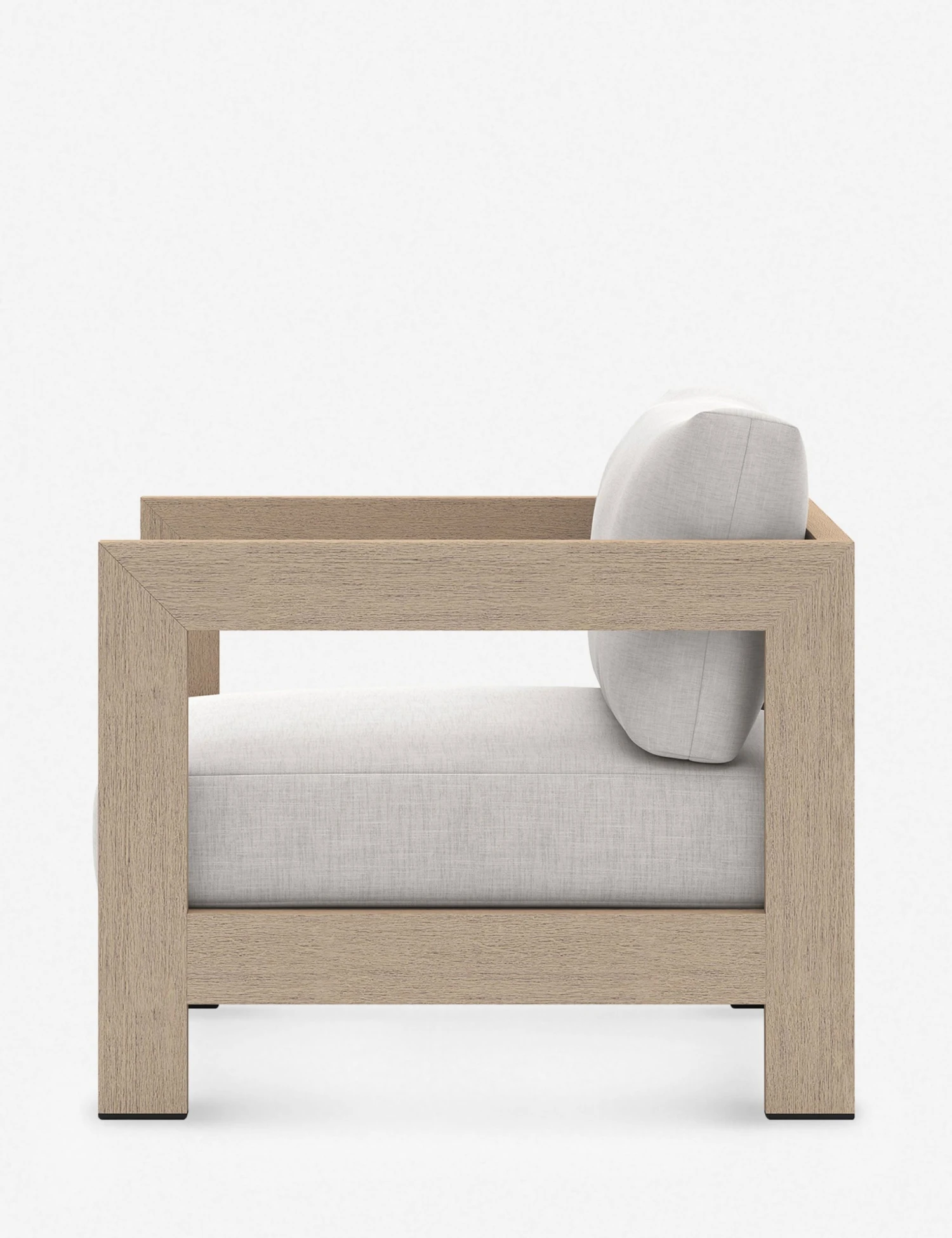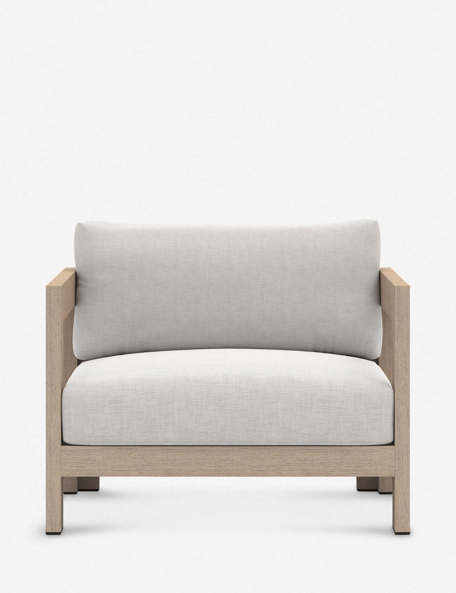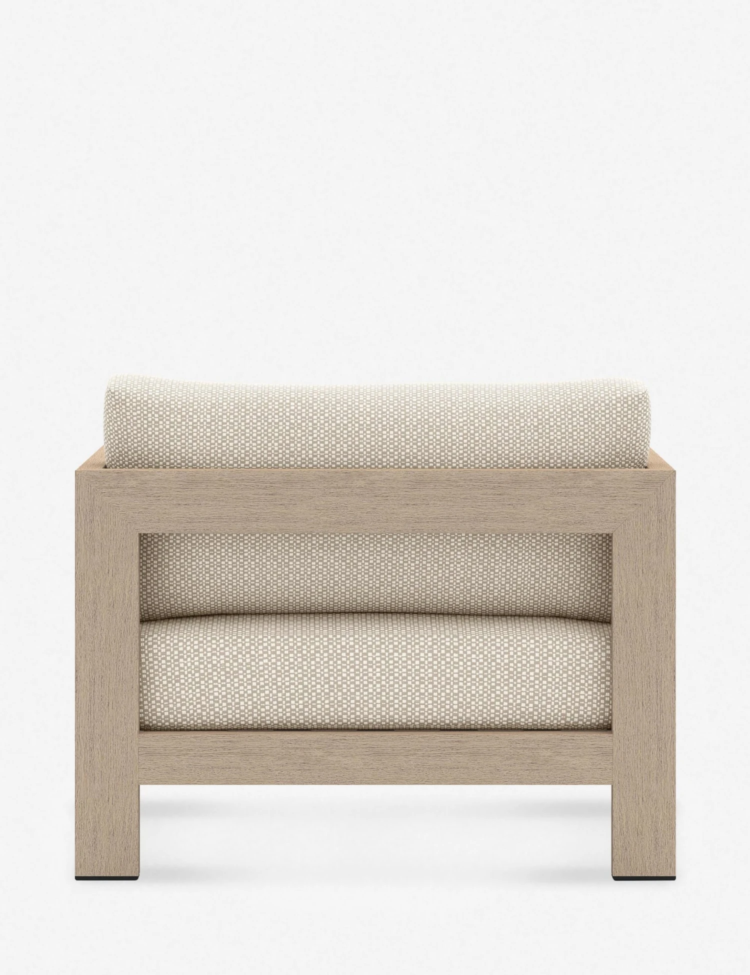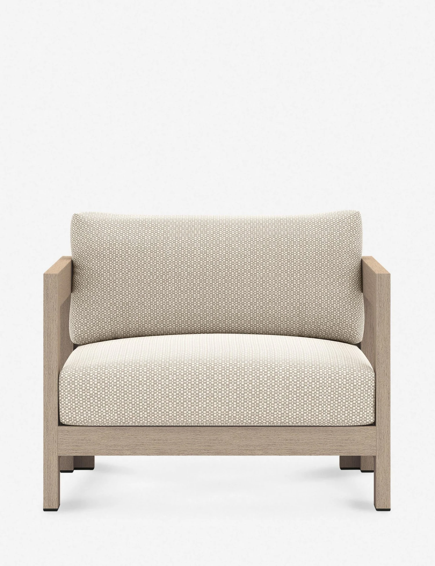 Clean, linear design evokes understated appeal in this low-slung accent chair. With plush cushions and soft, desert tones, this elemental chair offers the perfect grounding touch for a patio, sunroom, or poolside lounge.