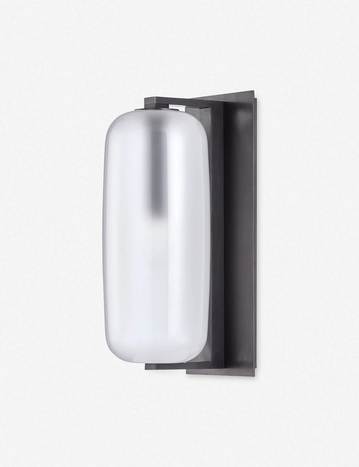 A perfectly transitional style for mid-century spaces. A pill-shaped frosted glass shade recalls ’60s influence, while crisp lines give the entire look a more modern appeal.
