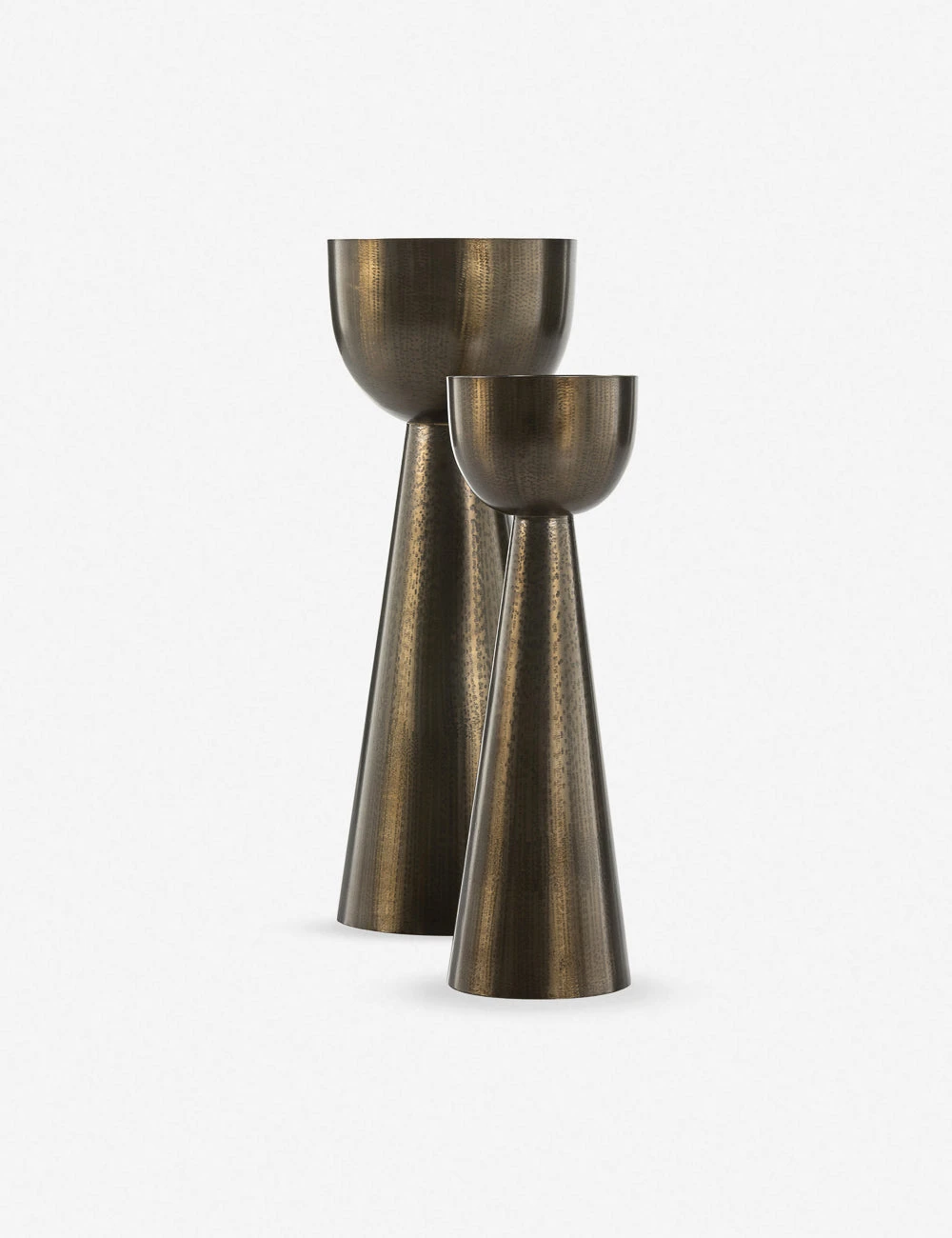 Strike a polished tone with the sleek geometry of this set of iron planters. The mottled brass finish adds a lustrous patina to their sculptural silhouette, bringing sophisticated poise to your green decor. This set of two is the perfect height for a patio lounge or chic entryway.