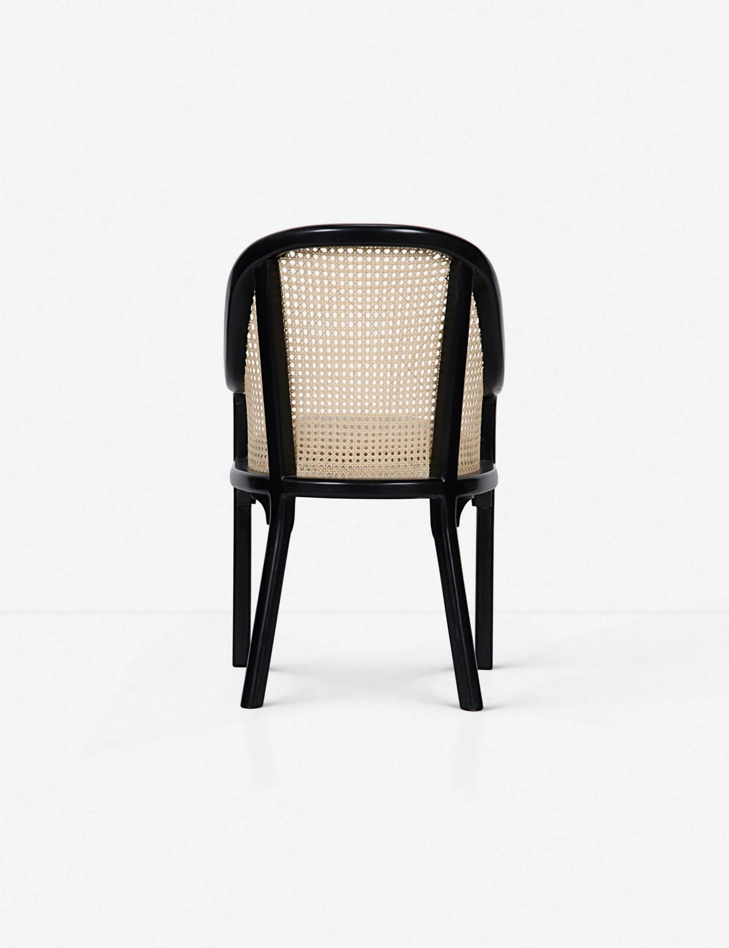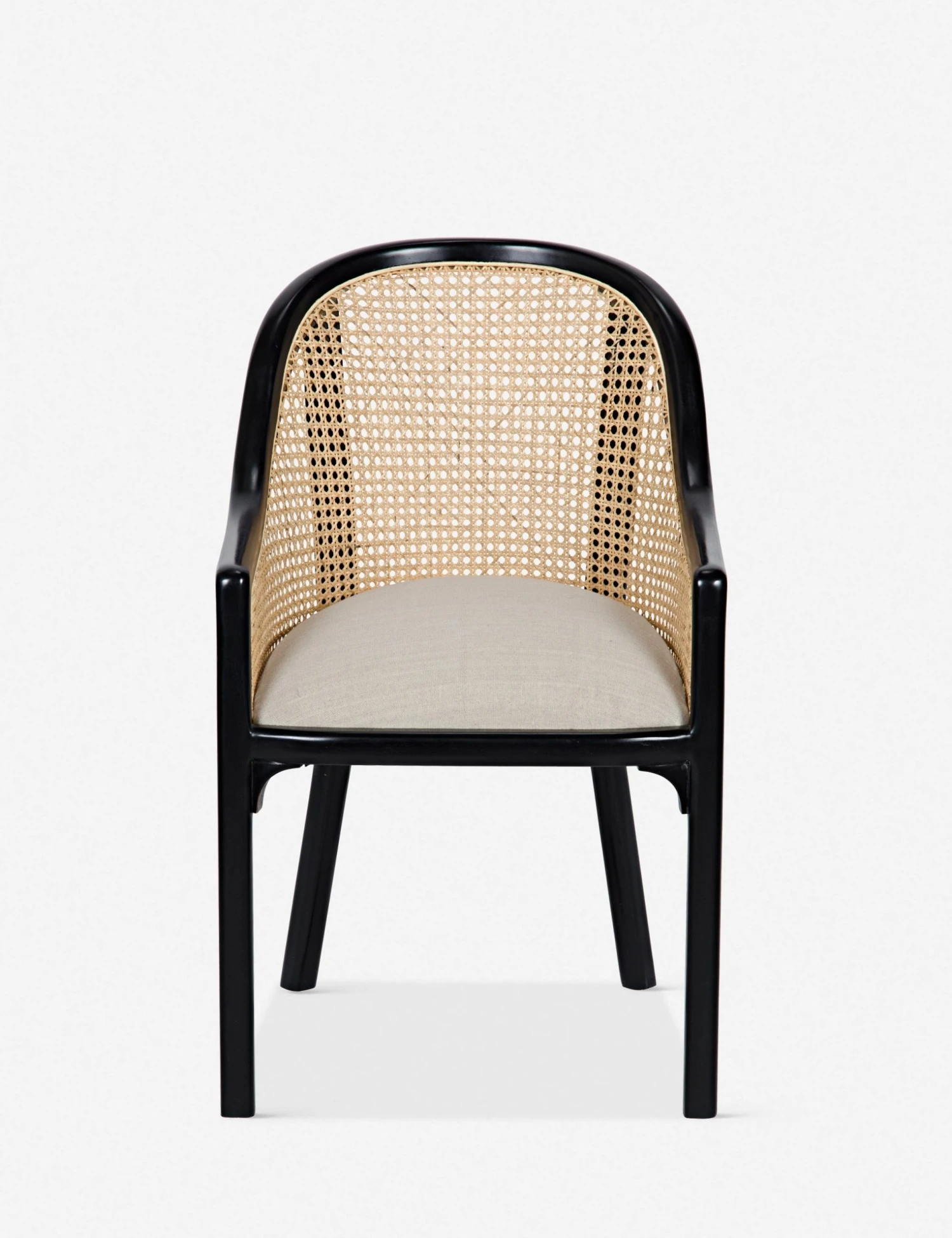 Classic design meets contemporary style with the Loreana chair’s hand-rubbed black frame and natural rattan-woven detailing. Angled back legs give it a more modern feel.