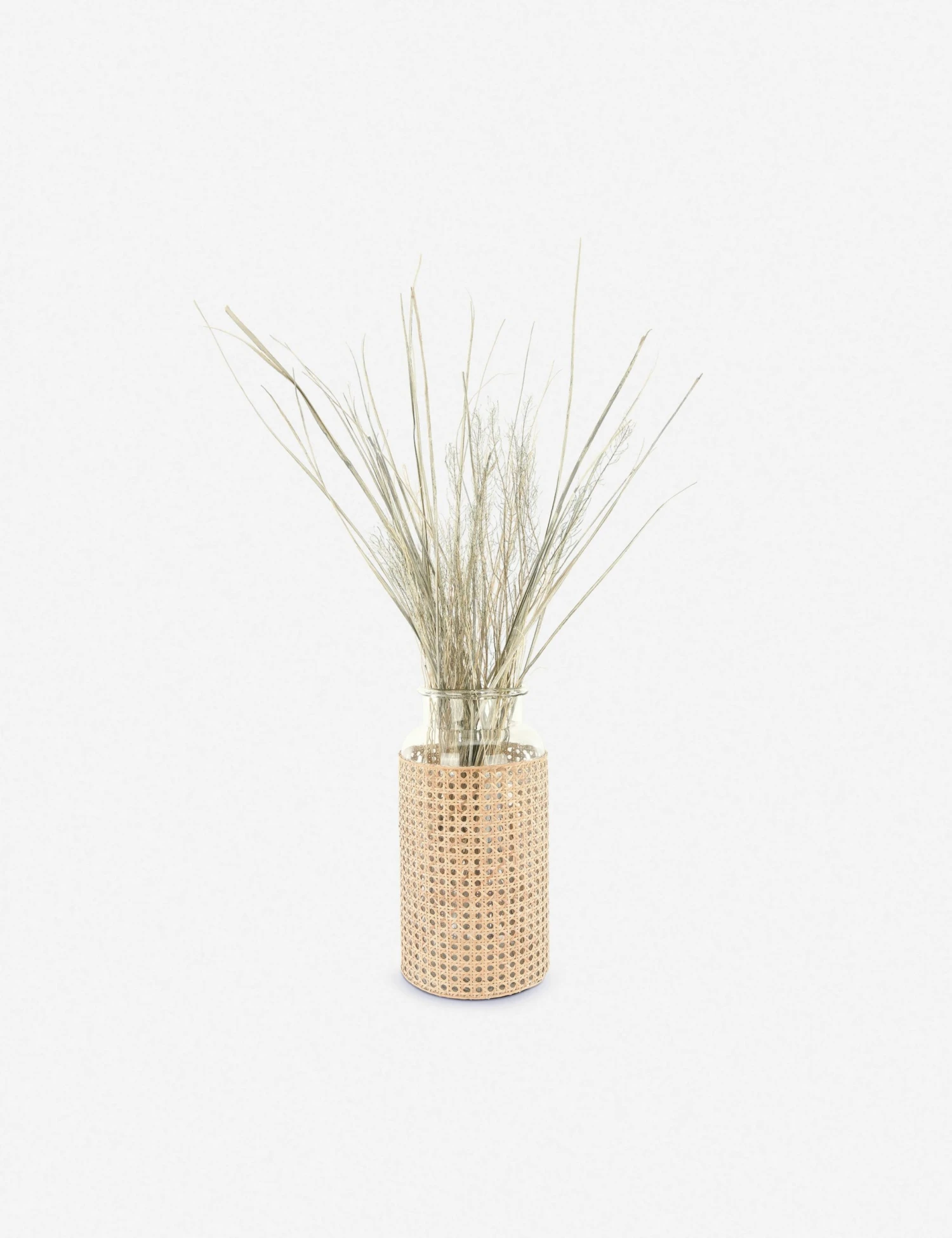 Whether you use it as countertop storage (perfect for kitchens!), or add your favorite fresh-cut flowers, this traditional glass vase looks great wrapped in a woven rattan sleeve.