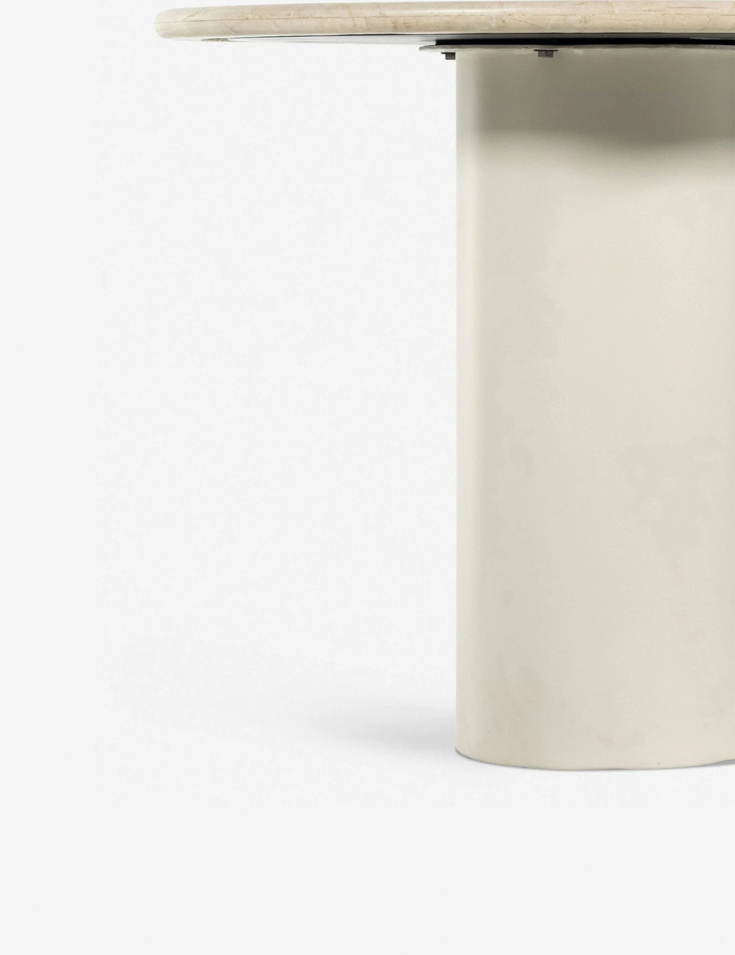 Polish your look with this bistro-style table. A marble top and ivory-finished base-pair curved edges with a monochromatic cream-colored finish to offer a soft visual appeal that wraps retro design notes in a fresh, sophisticated dining table design.
