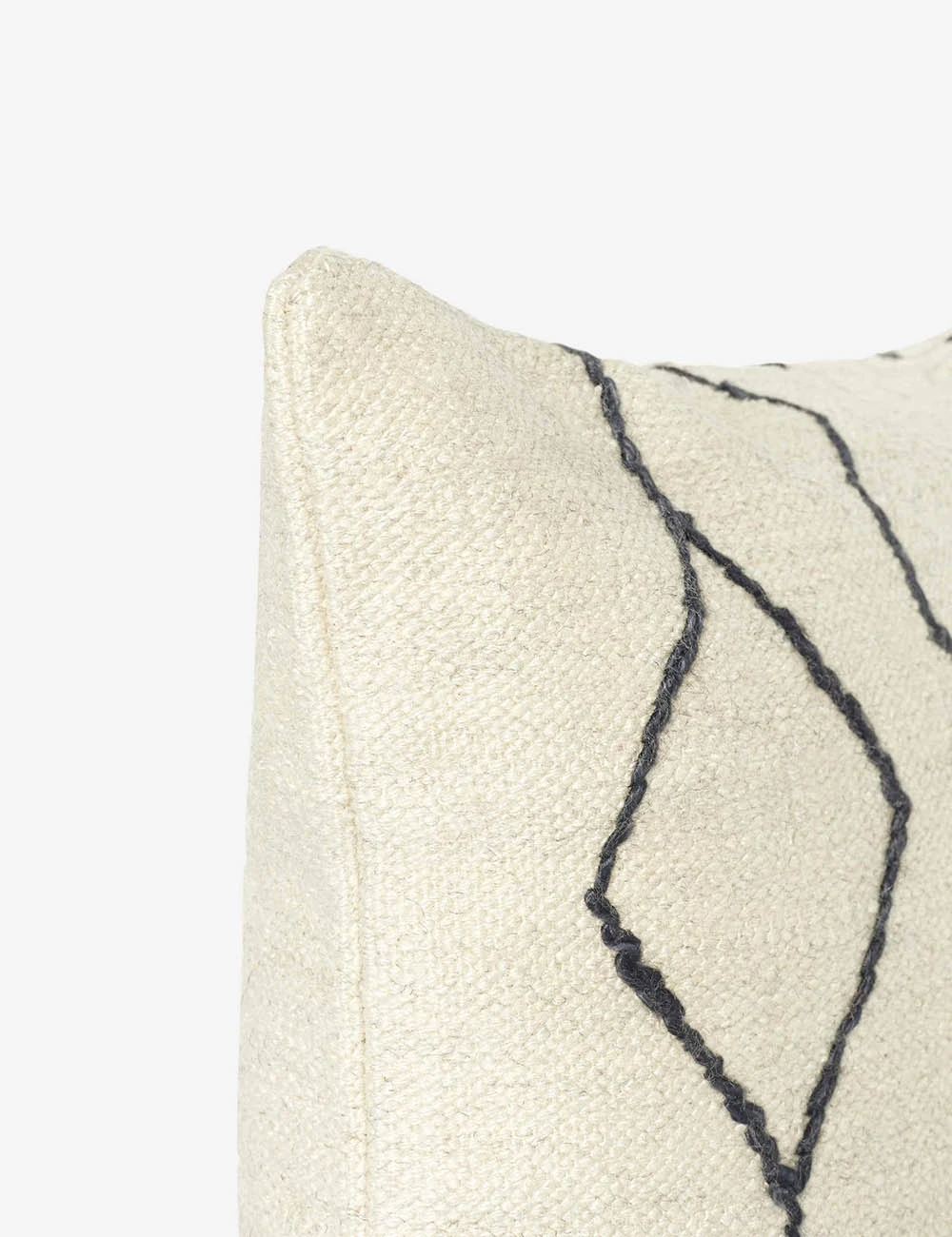 Inspired by traditional Beni Ourain designs, the neutral, black and white-hued Moroccan Flatweave Pillow features a simple, sketched pattern. Add it to a sofa with other earthy or subdued tones for light and airy style. The Sarah Sherman Samuel Collection features tonal textures and a modern take on traditional patterns.