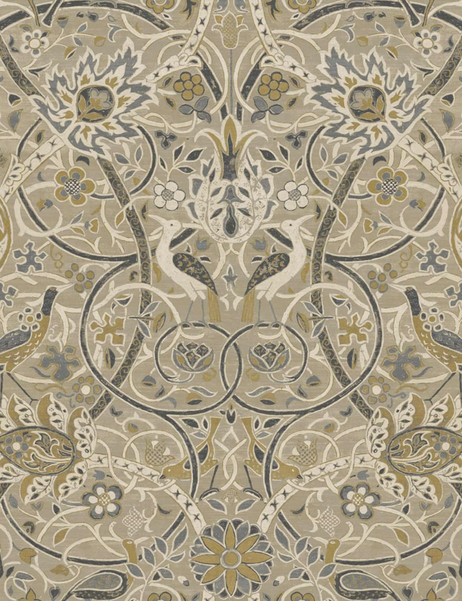 Morris & Co. Bullerswood Wallpaper, Stone/Mustard Swatch