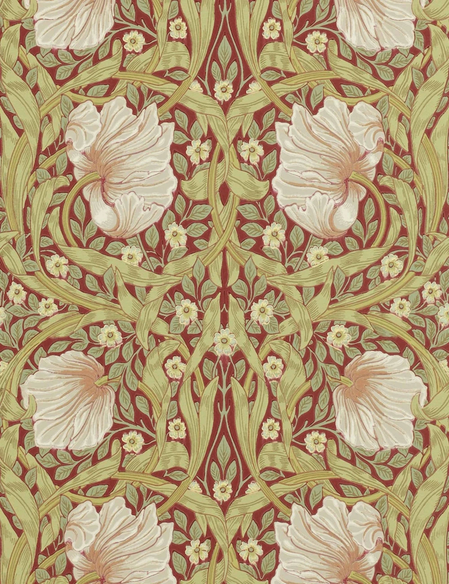 Morris & Co. Pimpernel Wallpaper, Brick/Olive Swatch