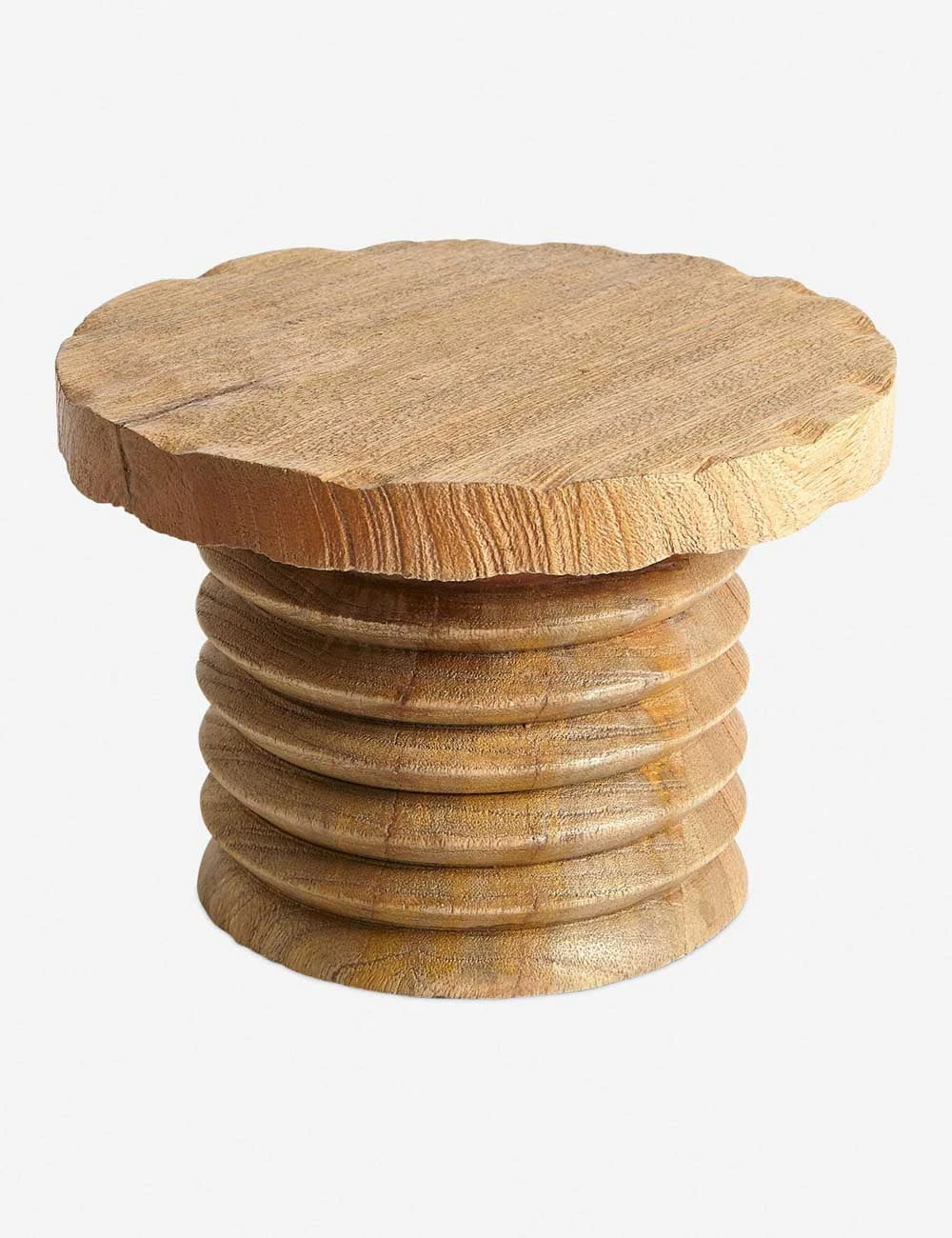 Poised for elevated style, this small wood pedestal is the perfect tabletop foundation for favorite items or decor. Its carved ridges and natural grain offer endless textural appeal with a sculptural twist.