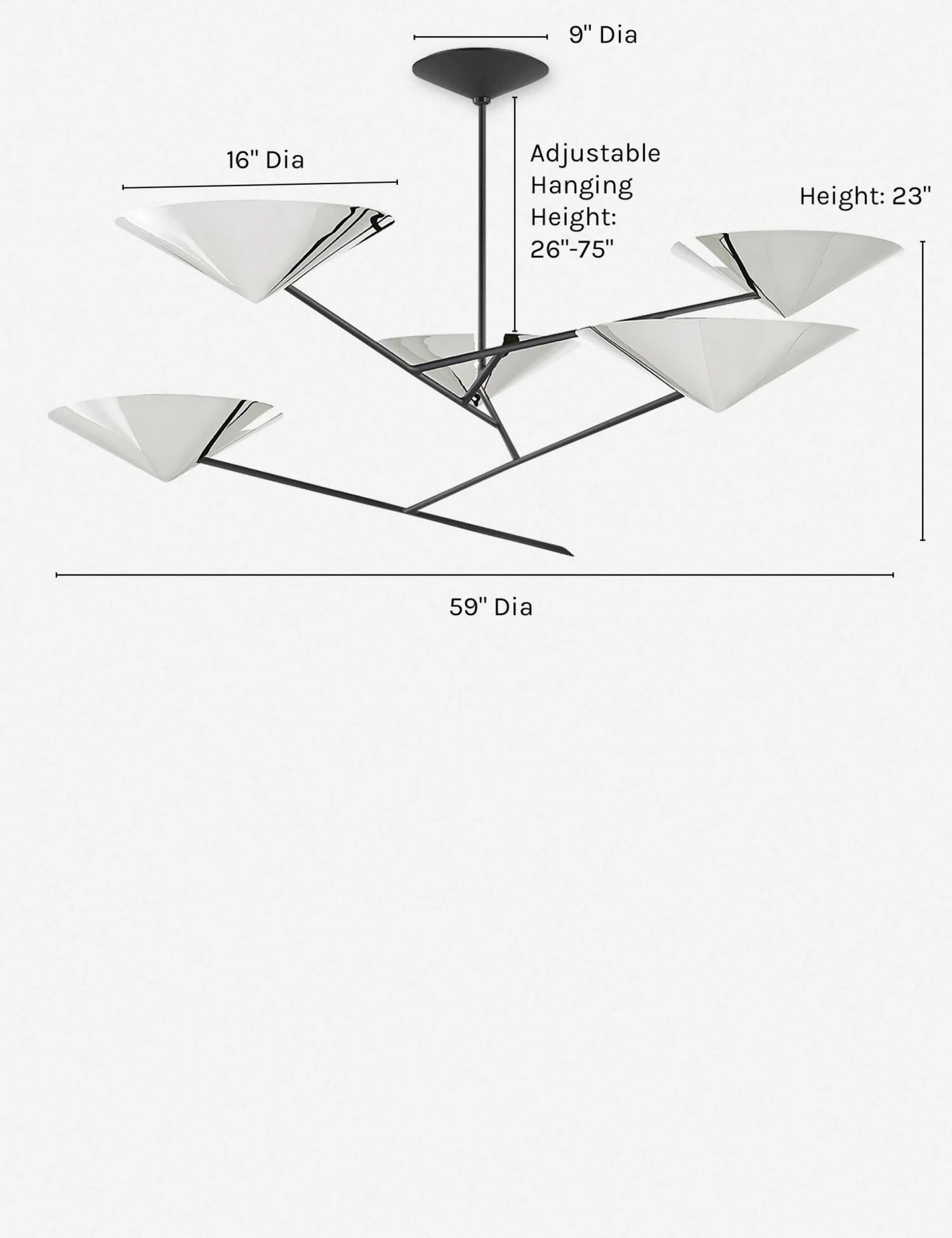 Give your space a harmonious glow with the addition of this stunning chandelier. Drawing from Eastern influence, three round, metal shades diffuse light upwards, with a cutout design to show off the chic, intersecting hardware.