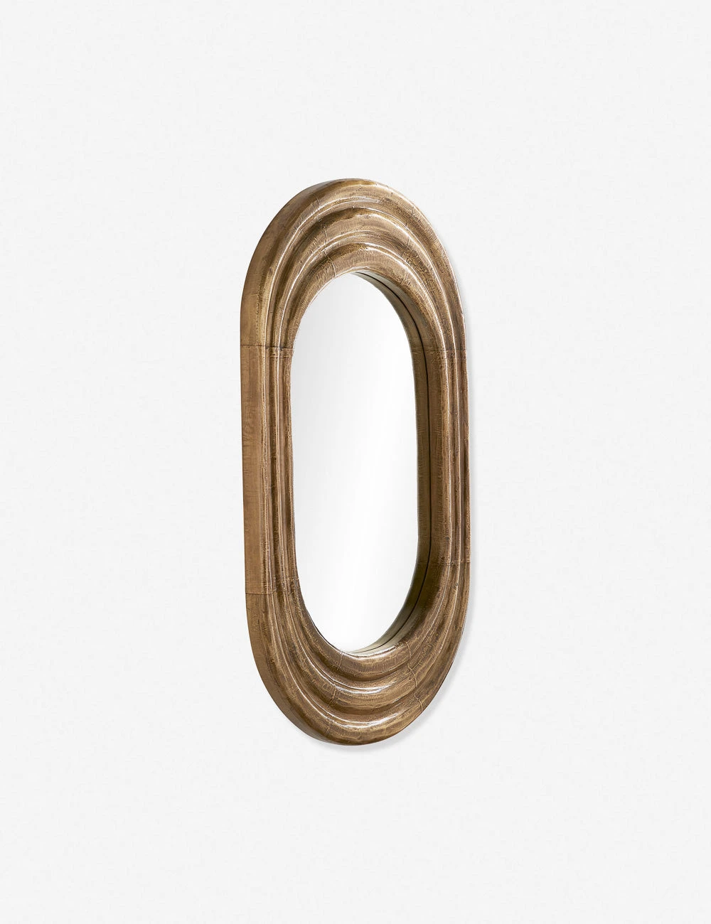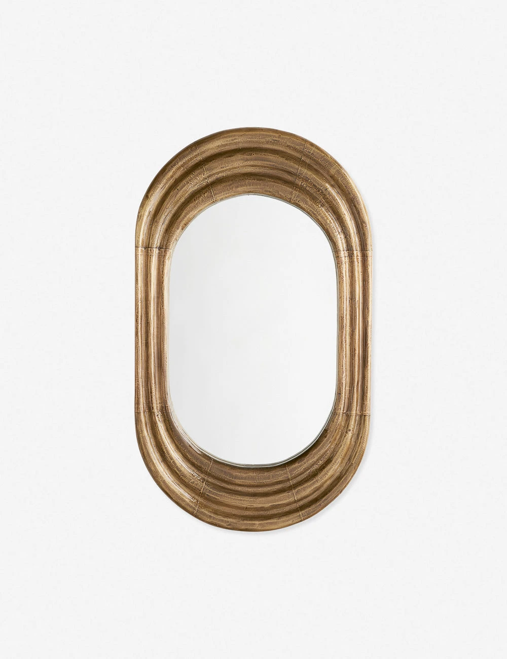 Shapely concentric bands give an organic feel to the frame of this brass-clad mirror. The antiqued patina and nail-studded joints offer endless textural character with industrial undertones. Hang this wall mirror in your entryway or living space for a seasoned look.