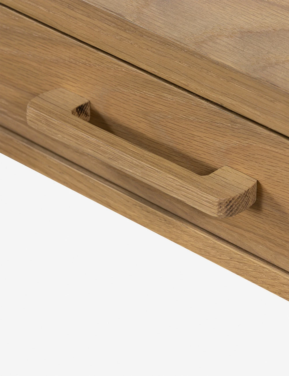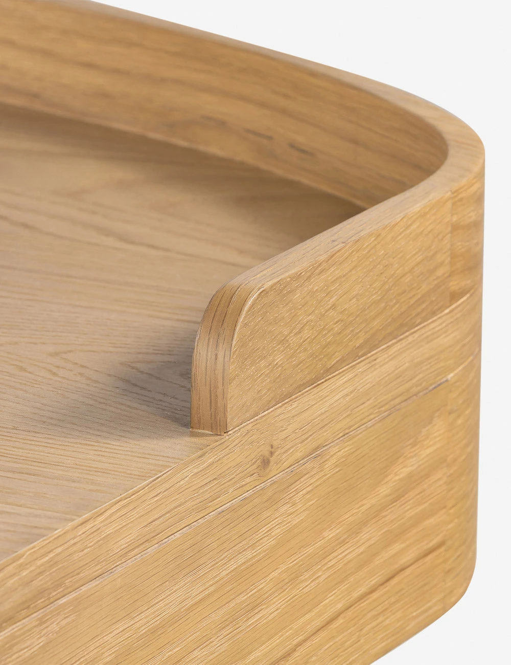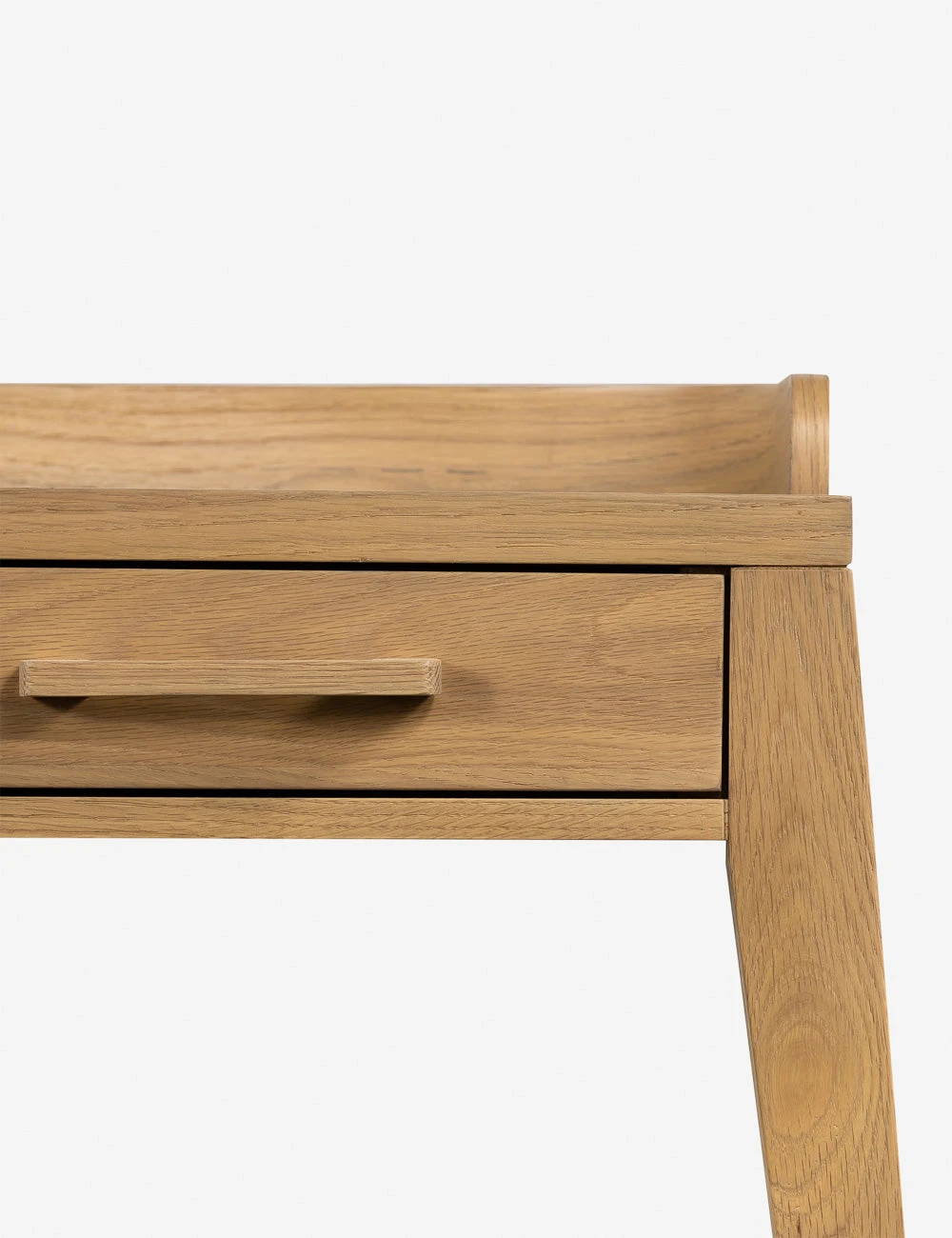 With its slender, curving silhouette and offset splayed legs, this light wood desk strikes a fresh take on mid-century design. We love the slim drawers and open cubby for effortless storage, plus the raised backstop adds a stylish edge.